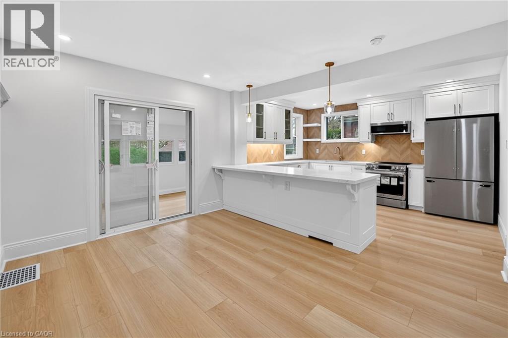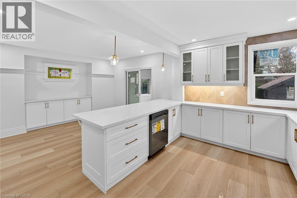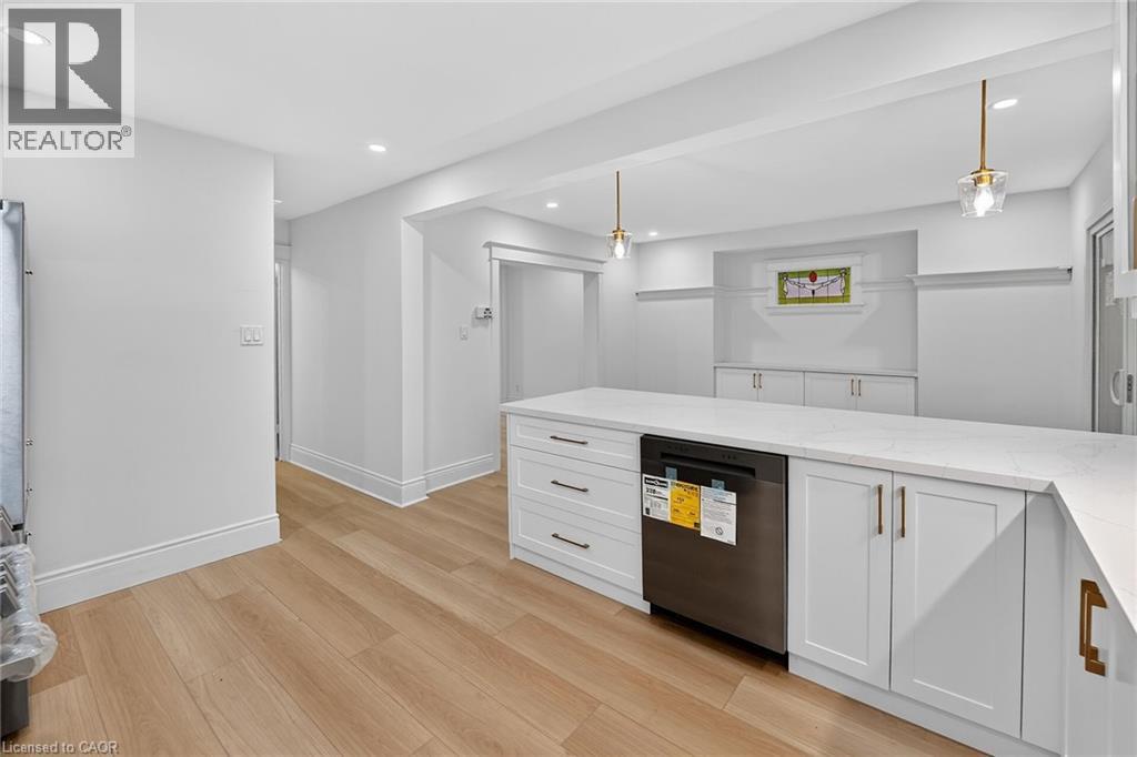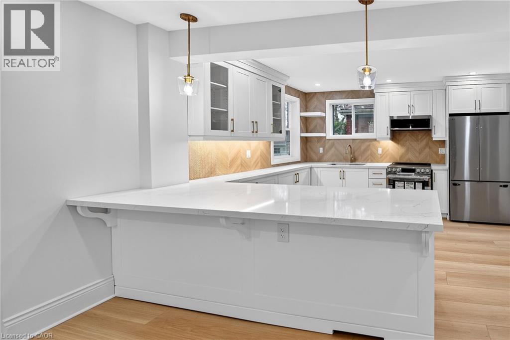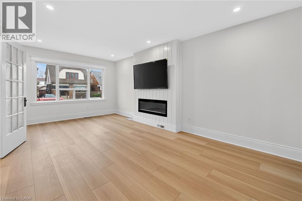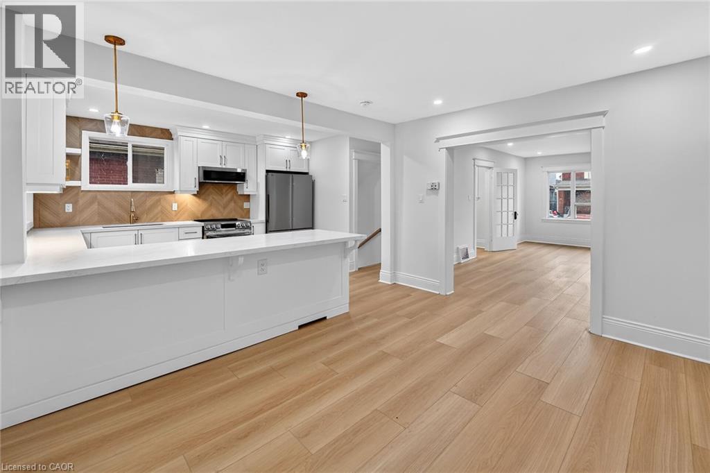 Welcome to 101 Houghton Avenue South! Located in a sought-after, family-friendly neighbourhood, this beautifully maintained home is just steps from A.M. Cunningham Elementary School and a short stroll to Gage Park and the shops, restaurants, and boutiques along Ottawa Street North. Convenient access to transit, the mountain, and the QEW. Extensively renovated with quality craftsmanship, this move-in ready home offers nearly 2,000 sq ft of finished living space. The main level features a new front porch, enclosed entry with leaded glass windows, spacious foyer, and a bright open living room with wide-plank flooring, pot lighting, large picture window, and shiplap feature wall with linear fireplace. The dining room includes built-in cabinetry, stained glass window, and patio doors to a fully finished four-season sunroom. The stunning open-concept kitchen features modern cabinetry, quartz counters, ceramic backsplash, peninsula with seating, and stainless steel appliances. Upstairs offers two spacious bedrooms and a 4-piece bath with convenient laundry. The finished lower level includes a rec room, bedroom, and 3-piece bath—ideal for guests or extended family. Private side drive leads to a detached garage with hydro and auto opener. The rear yard is private and surrounded by mature greenery. Updates include: flooring, trim, pot lights, fresh paint, electrical, plumbing, vinyl siding (house & garage), appliances, furnace, central air, 100-amp breakers, and professionally waterproofed basement with sump. Stylish, updated, and perfectly located—move in and enjoy. (id:4555)