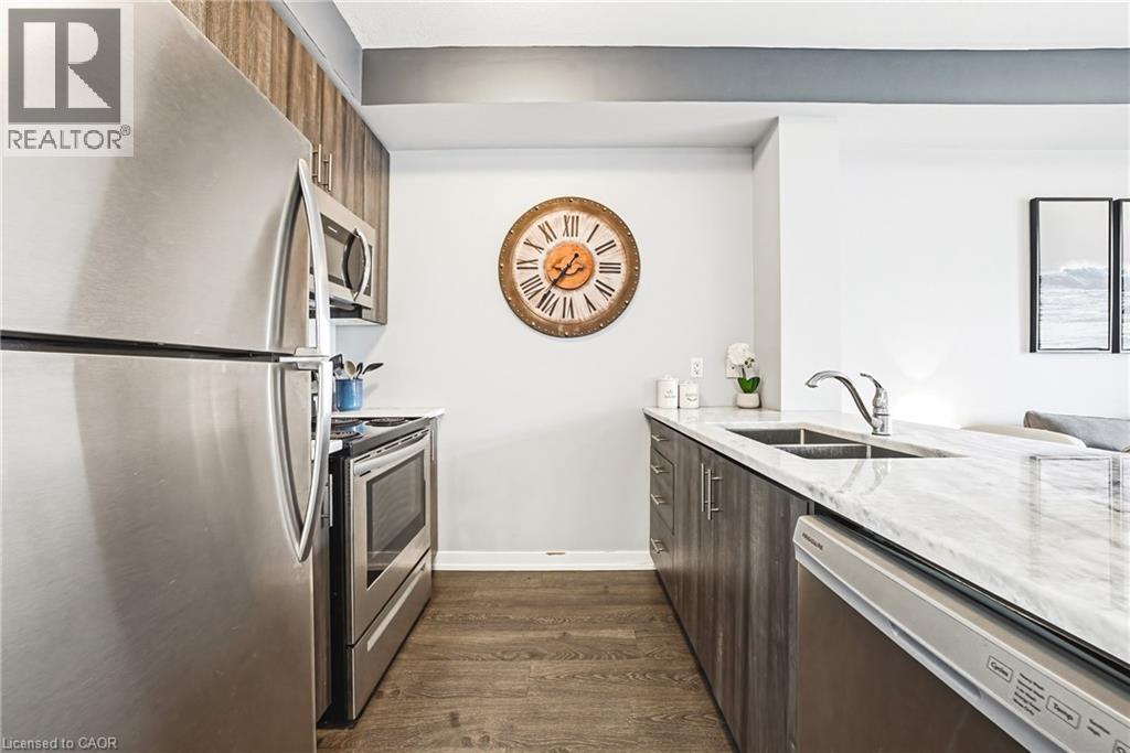 Affordable Lakefront Living in Stoney Creek. Discover the perfect blend of comfort and convenience with this charming 1-bedroom, 1-bath condo, ideally located steps from the shores of Lake Ontario. Enjoy the unmatched luxury of first-floor living, where serene lakeside walks are always just a few steps away. This condo features a beautifully upgraded kitchen with countertops that add style and functionality, plus the convenience of in-suite laundry. The open and inviting layout provides the perfect space to relax and unwind. Additional features include 1 underground parking space and a secure locker for extra storage. The condo fees include the cost of air conditioning and heat, making for worry-free living in your new home. Whether you're a first-time homebuyer, a downsizer, or simply looking for affordable lakeside living, this property truly has it all. Don't miss the opportunity to call this idyllic Stoney Creek condo your home and Let's Get Moving!™ (id:4555)