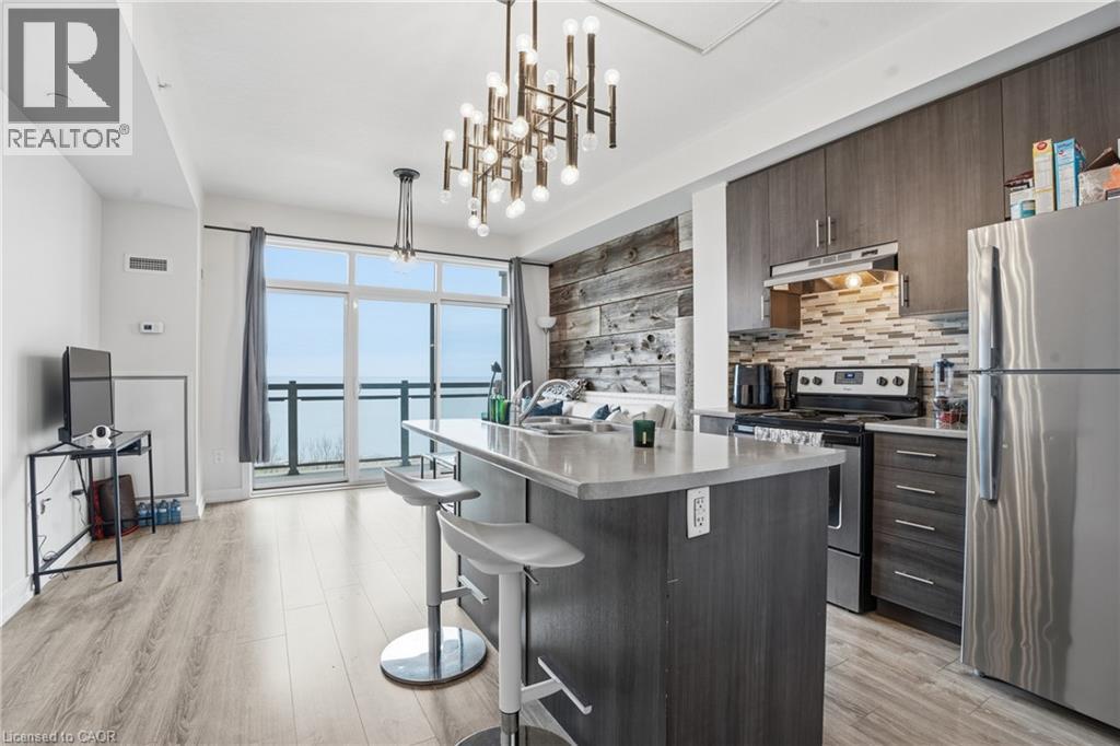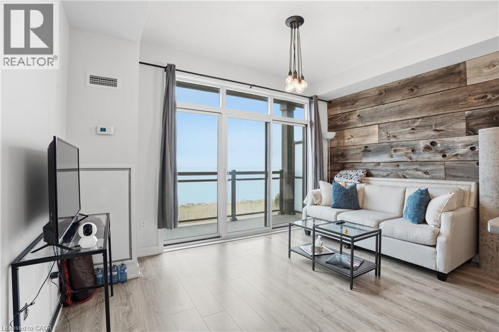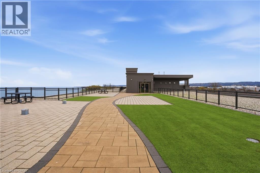 LAKE VIEW CONDO. Experience refined lakeside living in this beautifully appointed 1-bedroom condo, ideally situated in one of Stoney Creekâs most sought-after waterfront communities. Showcasing picturesque views of Lake Ontario, this thoughtfully designed unit offers a bright, open layout with a comfortable living space and an abundance of natural light. Set within the well-maintained Waterfront Trails community, residents enjoy access to scenic walking paths, parkland, and a nearby beach, all contributing to a peaceful, resort-like atmosphere year-round. The building is known for its exceptional upkeep and amenities, including a stunning rooftop terrace with panoramic views of the lake and escarpment, a fully equipped fitness centre, and a stylish party room. Pet-friendly and secure, the building also offers underground parking for added convenience. This unit includes one parking space. Conveniently located just minutes to the QEW, shopping, and everyday essentials, this condo is an excellent opportunity for first-time buyers, downsizers, or anyone seeking a low-maintenance lifestyle by the water. (id:4555)