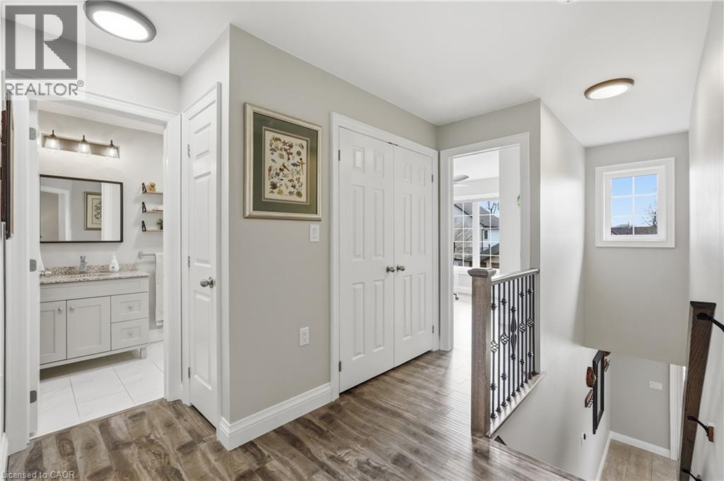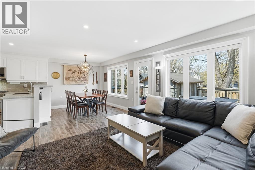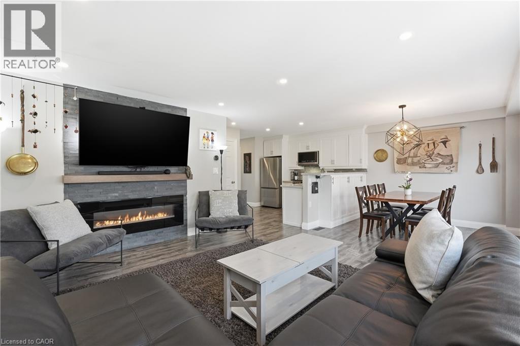 Welcome to this beautifully maintained, turn-key home offering excellent curb appeal with exterior pot lights, a private driveway, attached garage, and welcoming covered front entry. Built in 2017 and thoughtfully updated throughout, this home features a bright open concept layout filled with natural light from large windows and enhanced by all new lighting across the main living areas. The main level showcases a stylish electric fireplace and a spacious living and dining area that flows seamlessly into the stunning kitchen complete with large quartz countertops, refaced white cabinetry with soft-close doors and drawers, and built-in top-of-the-line appliances all replaced within the last two years, creating a modern and highly functional space perfect for everyday living and entertaining. Upstairs offers three generously sized bedrooms including a beautiful primary retreat featuring its own electric fireplace and ensuite bath. With three bathrooms in total, the home provides a practical and comfortable layout for families or guests. Step outside to a fully fenced backyard designed for both relaxing and entertaining featuring new aggregate concrete, a composite deck, and a versatile insulated Bunkie with electricity, ideal for a workspace, studio, or additional flex space, plus an additional storage shed with electricity. Furnace (2024), Hot Water Heater (2024), Aggregate Concrete (2024), Composite Deck (2024), Black Stones Side of House (2024), Washer & Dryer (2021), Bunkie in Backyard Insulated with Electricity (2023). Ideally located just steps from the waterfront and beach, and close to Confederation Park, lakefront trails, Fifty Point Conservation Area, schools, shopping, restaurants, and quick QEW access with the Confederation GO Station now operational nearby, this home offers an exceptional lifestyle opportunity in one of Hamilton’s most desirable lakeside communities. (id:4555)
