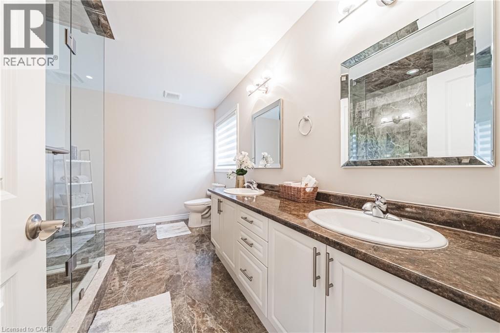 Welcome to 96 Hidden Ridge Crescent — a beautifully upgraded 4-bed, 3-bath detached home offering over 2,500 sq ft of above-grade living in one of Glanbrook’s most desirable family neighbourhoods. Featuring soaring 9-ft ceilings on the main level, a bright open-concept layout, and a spacious kitchen with large island, this home is designed for comfortable everyday living and effortless entertaining. The living and dining areas flow seamlessly to the backyard, where extensive exterior upgrades including exposed concrete aggregate (2021), a newer shed (2020), and a fully fenced yard (2020) create a private outdoor retreat. Three 2-ft x 4-ft sonotube footings with rebar and concrete are already in place—perfect for a future awning or pergola. Upgrades continue inside with a water softener and reverse osmosis system (2022), security alarm system and cameras, and convenient main-floor laundry. Upstairs, the spacious primary suite includes a 4-piece ensuite, joined by three additional generously sized bedrooms. With parking for six, an attached double garage, and easy access to parks, schools, shopping, and major routes, this move-in-ready home offers incredible value and modern comfort in a sought-after community. (id:4555)