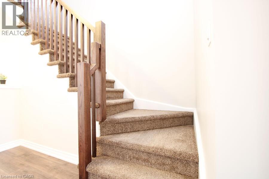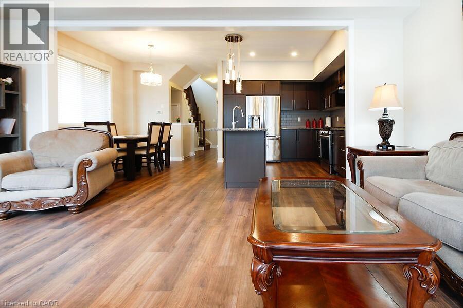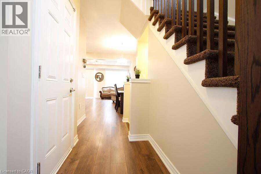 Absolutely Stunning End Unit Freehold Townhome in Sought-After Stoney Creek Mountain! This beautifully upgraded Branthaven 2-storey townhome offers 1830 sq ft - the largest floor plan in the complex and is ideally located in a quiet, private block at the back of the development. Just steps from top-rated schools, parks, the 193-acre Eramosa Karst Conservation Area, SmartCentres, restaurants, and with quick access to The Link, Red Hill Parkway, and the QEW. The home features 3 spacious bedrooms, 2.5 bathrooms, and a bright open-concept main floor with 9-ft ceilings, upgraded cabinetry, a large island, granite countertops and tiled backsplash. A generous family room with a gas fireplace overlooking the kitchen and dining areas, potlights, smooth ceilings throughout and laminate flooring on the main level - perfect for everyday living and entertaining. Convenient inside access to the garage adds everyday practicality. Enjoy a private fenced backyard, offering plenty of space for outdoor entertaining or relaxing in your own private retreat. The large primary suite features a walk-in closet and a spa-inspired ensuite. Upper-level laundry adds extra convenience. Move-in-ready with all the upgrades done - just unpack and enjoy! (id:4555)
