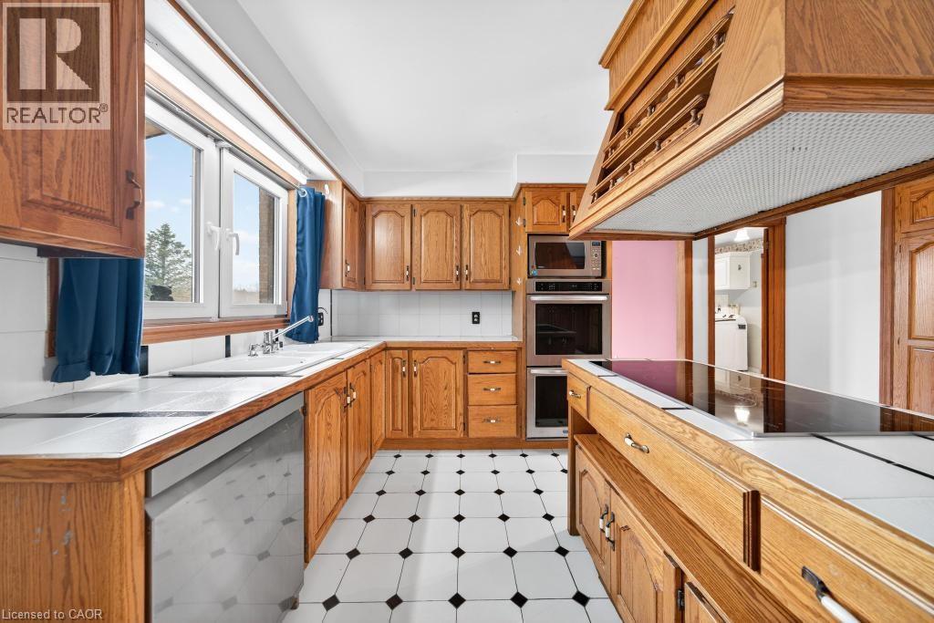 Welcome to 1055 Golf Club Road in Hannon, a rare opportunity to own a meticulously maintained, original-owner home sitting on roughly 2.4 acres. Built in 1986 and cared for with pride, this spacious property offers over 5,200 sq.ft of total space, including 2,906 sq.ft above grade and 2,337 sq.ft below grade. The main level features a grand foyer with a beautiful staircase, a bright living room, a 3-piece bathroom, and an open-concept kitchen with updated appliances flowing into the dining area. Just off the kitchen is a sun-filled sunroom overlooking the property, along with a large family room complete with a gas fireplace. Upstairs offers three generous bedrooms, including a large primary retreat with a walk-in closet and 5-piece ensuite, plus a shared 5-piece bathroom. The lower level provides excellent versatility with a separate kitchen, spacious rec room with gas fireplace, 3-piece bathroom, and a walk-up to the garage, ideal for extended family or an in-law setup. There is also ample storage throughout, including a full basement under the garage. Set on a 125 x 833 ft lot, the beautifully treed property features a long interlock driveway, patio area, 6,000-gallon cistern, and septic system. Located directly across from a park and daycare and less than 10 minutes to the Fortinos plaza in Upper Stoney Creek, this property offers the perfect balance of rural living and city convenience. (id:4555)