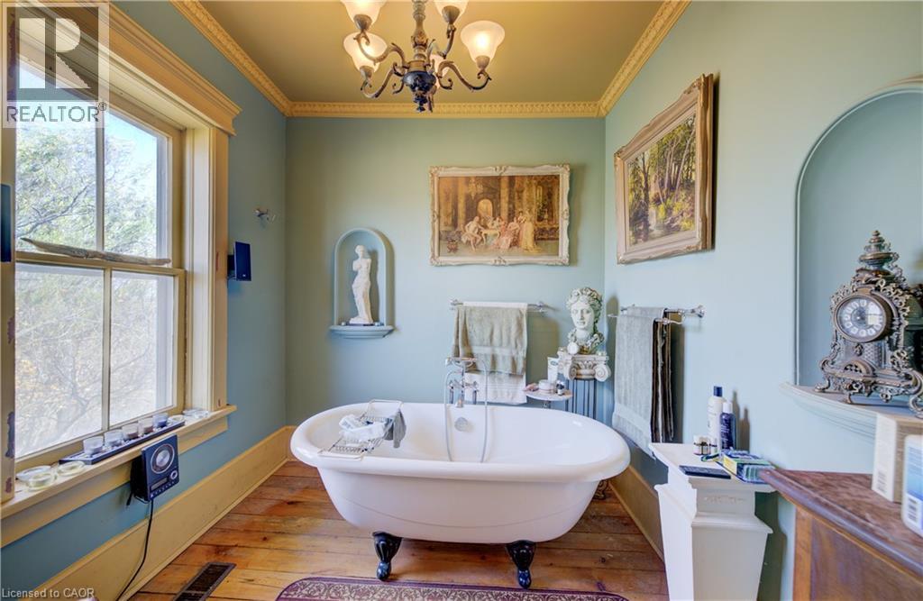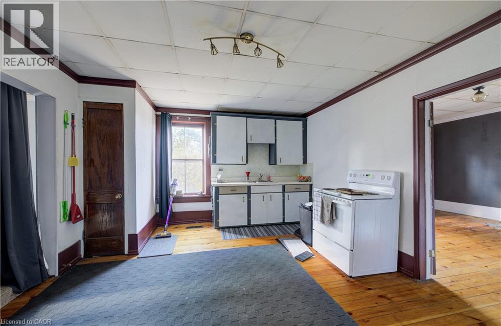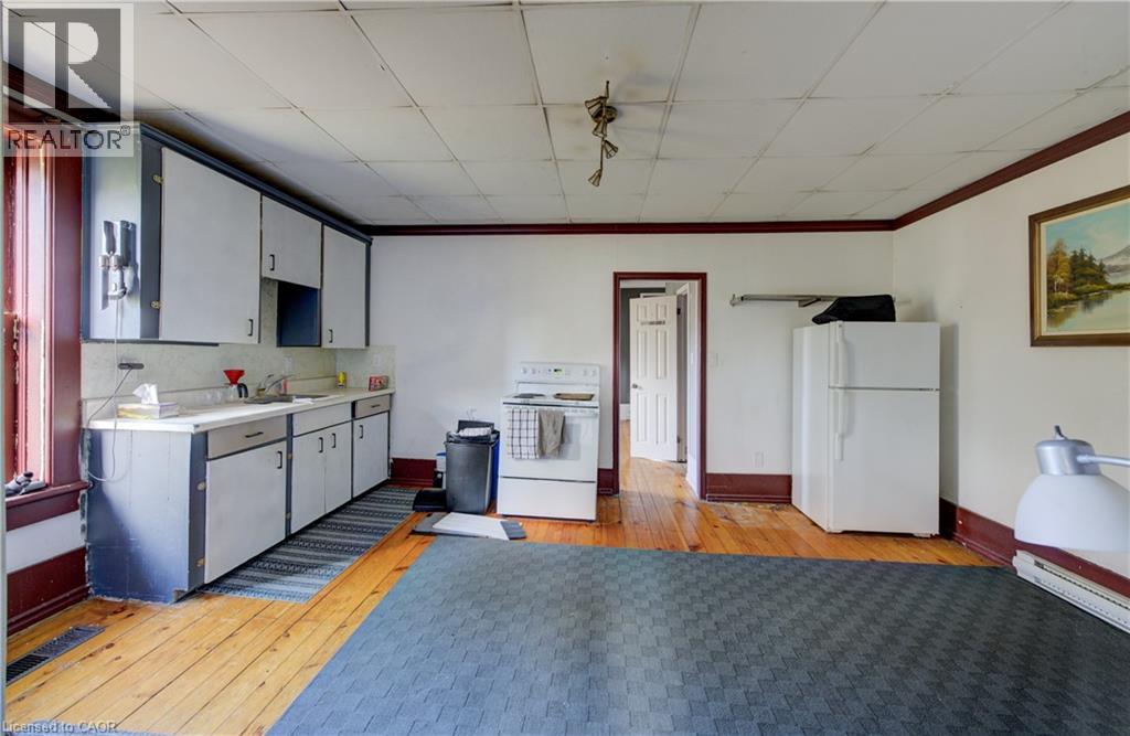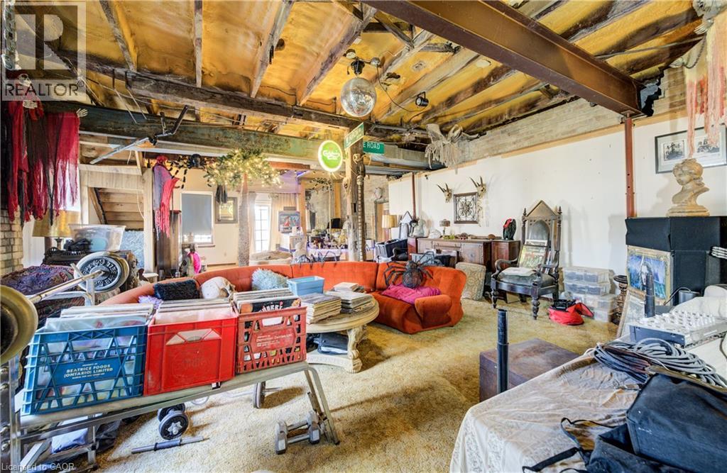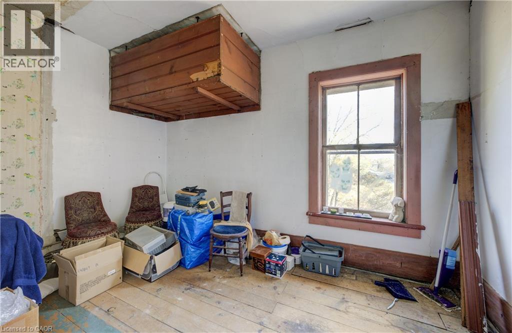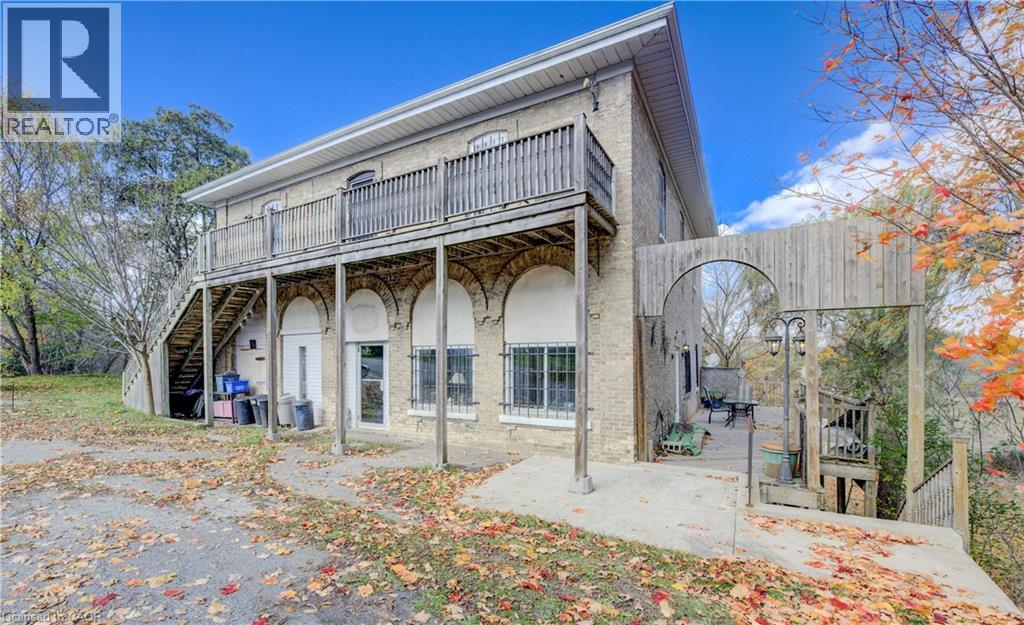 Welcome to Haysville! The possibilities are endless in this 1840s built yellow brick home with almost 5000 sq ft of living space. In the past this building has been a stage coach stop, a general store and a meat market. The main floor lends itself well to a commercial venture (although you would need to investigate a rezone possibility) with soaring ceilings and a large open space. Or remodel the area and have a huge home for a large family. Large kitchen, main floor laundry and a 2 piece bathroom. Upstairs features 3 bedrooms and a terrific bathroom, plus a self contained one bedroom apartment with a separate entrance. One of a kind basement that is decked out for halloween! Wonderful yard overlooking the Nith River, perfect for entertaining family and friends. (id:4555)