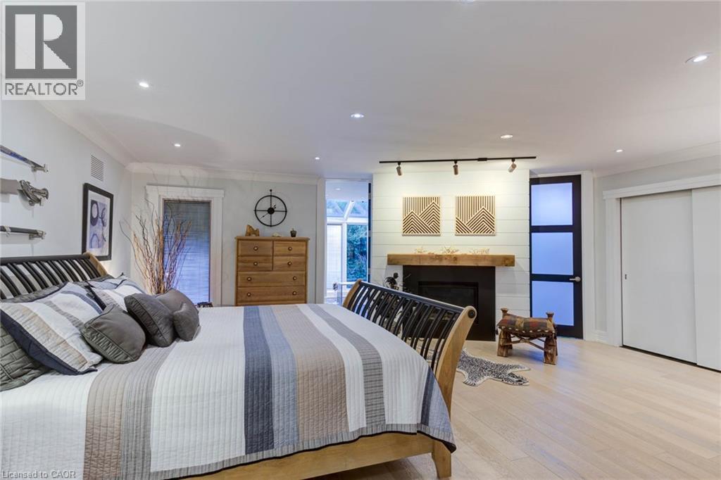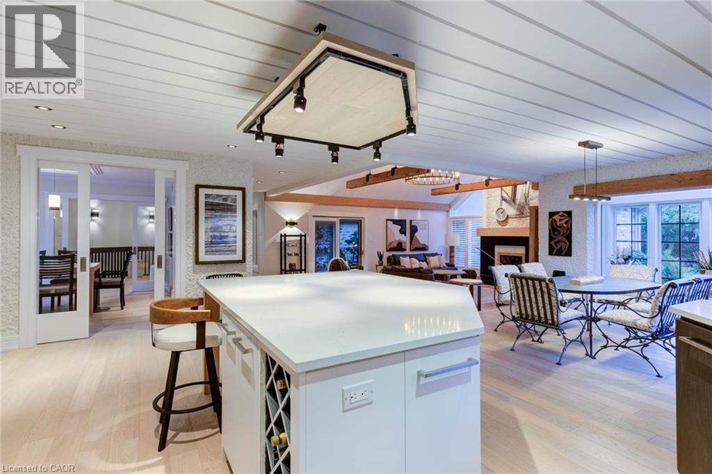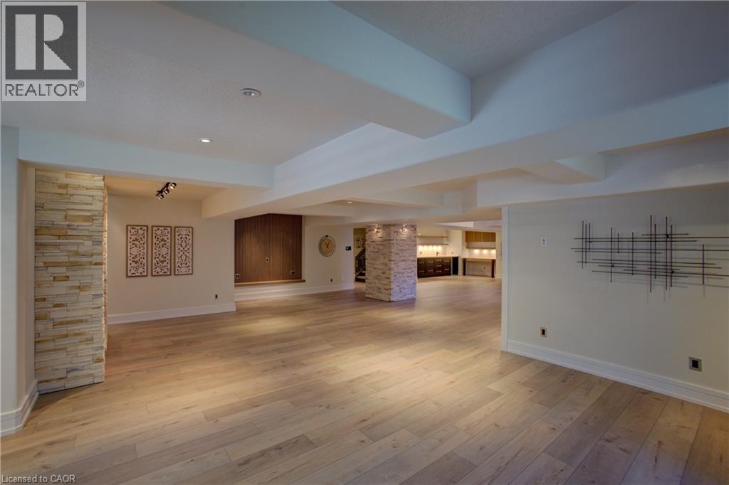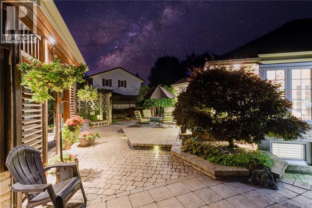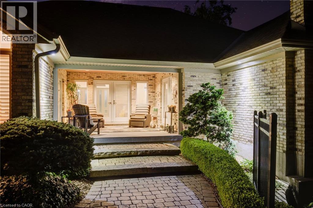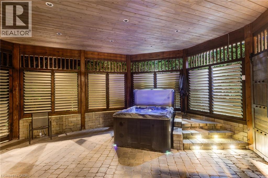 Luxurious Multi-Generational Living in Heidelberg. This custom-built bungalow blends West Coast Boho flair with rustic modern elegance, offering over 6,435 sq. ft. of extraordinary living space. Tucked away on a desirable private street just minutes from St. Jacobs Farmers’ Market and North Waterloo, this expansive home is designed for both lifestyle and comfort. The oversized double-car garage provides direct access to a fully finished in-law suite—ideal for multi-generational living or hosting guests. A grand foyer opens to an airy layout with a formal dining area and a sunken great room featuring vaulted ceilings, custom beams, and a wood-burning fireplace, all overlooking the chef-inspired kitchen with a spacious island. A tucked-away laundry room and powder room add convenience. The main level offers three bedrooms/home office options, including a primary retreat with its own fireplace and a stunning atrium-inspired ensuite filled with natural light. Three full bathrooms complete this floor. The walkout lower level has been newly updated with lighter paint, a wet bar, desk area, and modern finishes, enhancing its potential as a private suite. It includes an additional bedroom, full bathroom, and versatile living space. Outdoors, the beautifully landscaped yard is a true sanctuary with rock gardens, perennials, fire pit, waterfall, gazebo, and hot tub. With three separate patios, a shed with gas hookup, and a yard with pool potential, the possibilities for entertaining and recreation are endless. Gas lines for a BBQ or heater are already in place. A home of unparalleled character and function—this one is a must-see. Book your private showing today! (id:4555)