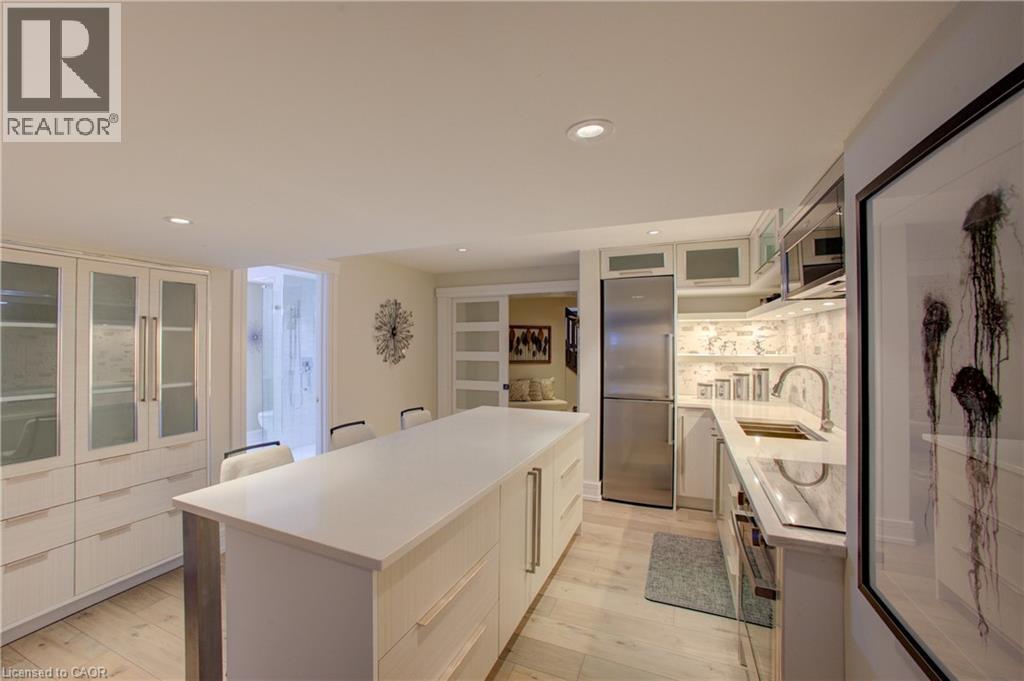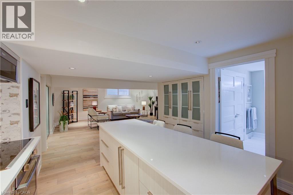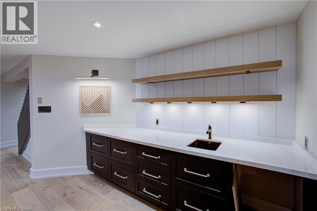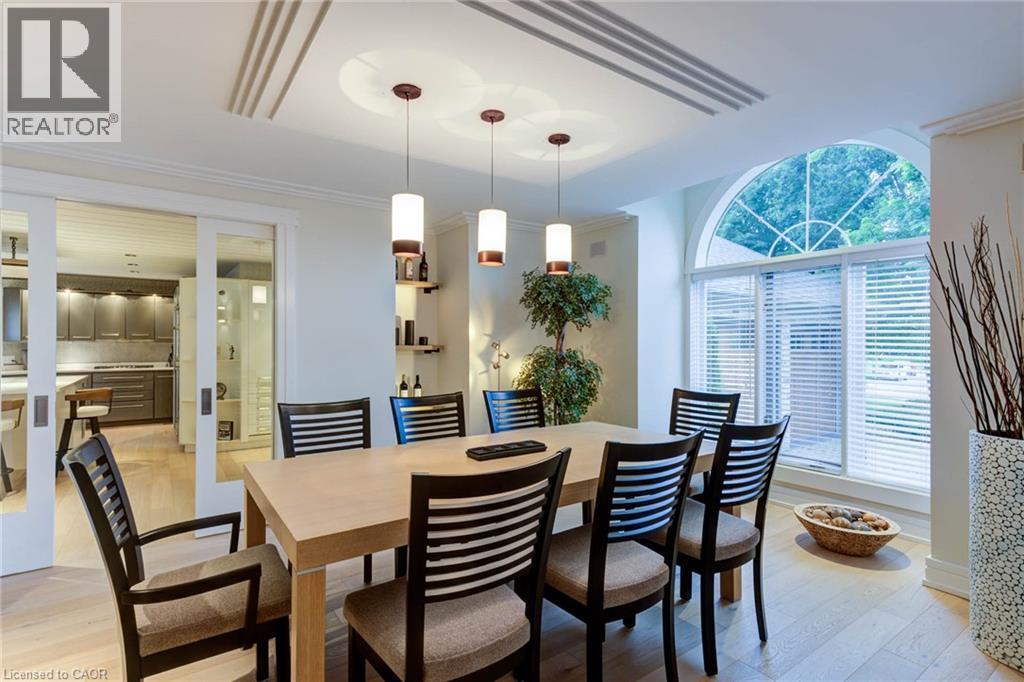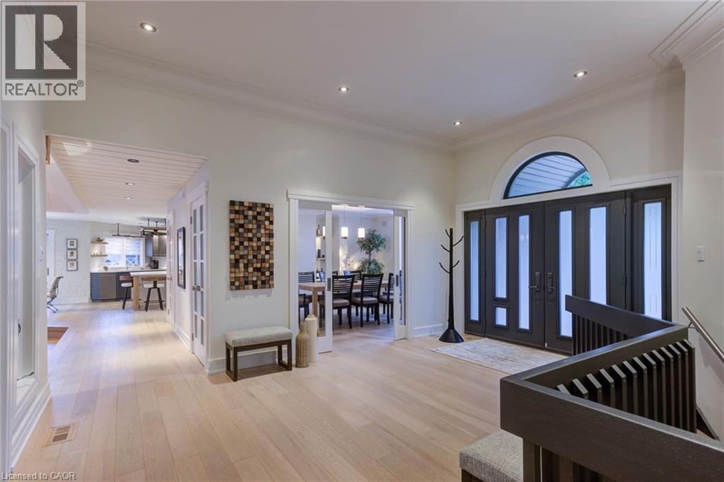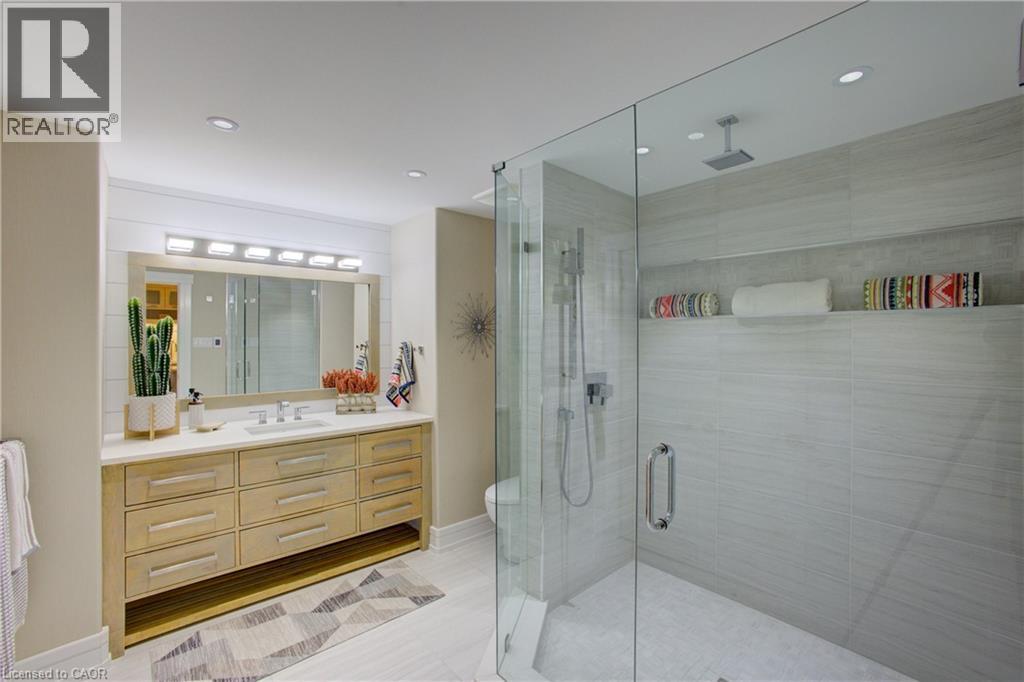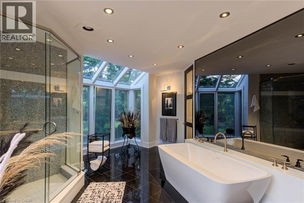 Luxurious Multi-Generational Living in Heidelberg. This custom-built bungalow blends West Coast Boho flair with rustic modern elegance, offering over 6,435 sq. ft. of extraordinary living space. Tucked away on a desirable private street just minutes from St. Jacobs Farmers’ Market and North Waterloo, this expansive home is designed for both lifestyle and comfort. The oversized double-car garage provides direct access to a fully finished in-law suite—ideal for multi-generational living or hosting guests. A grand foyer opens to an airy layout with a formal dining area and a sunken great room featuring vaulted ceilings, custom beams, and a wood-burning fireplace, all overlooking the chef-inspired kitchen with a spacious island. A tucked-away laundry room and powder room add convenience. The main level offers three bedrooms/home office options, including a primary retreat with its own fireplace and a stunning atrium-inspired ensuite filled with natural light. Three full bathrooms complete this floor. The walkout lower level has been newly updated with lighter paint, a wet bar, desk area, and modern finishes, enhancing its potential as a private suite. It includes an additional bedroom, full bathroom, and versatile living space. Outdoors, the beautifully landscaped yard is a true sanctuary with rock gardens, perennials, fire pit, waterfall, gazebo, and hot tub. With three separate patios, a shed with gas hookup, and a yard with pool potential, the possibilities for entertaining and recreation are endless. Gas lines for a BBQ or heater are already in place. A home of unparalleled character and function—this one is a must-see. Book your private showing today! (id:4555)
