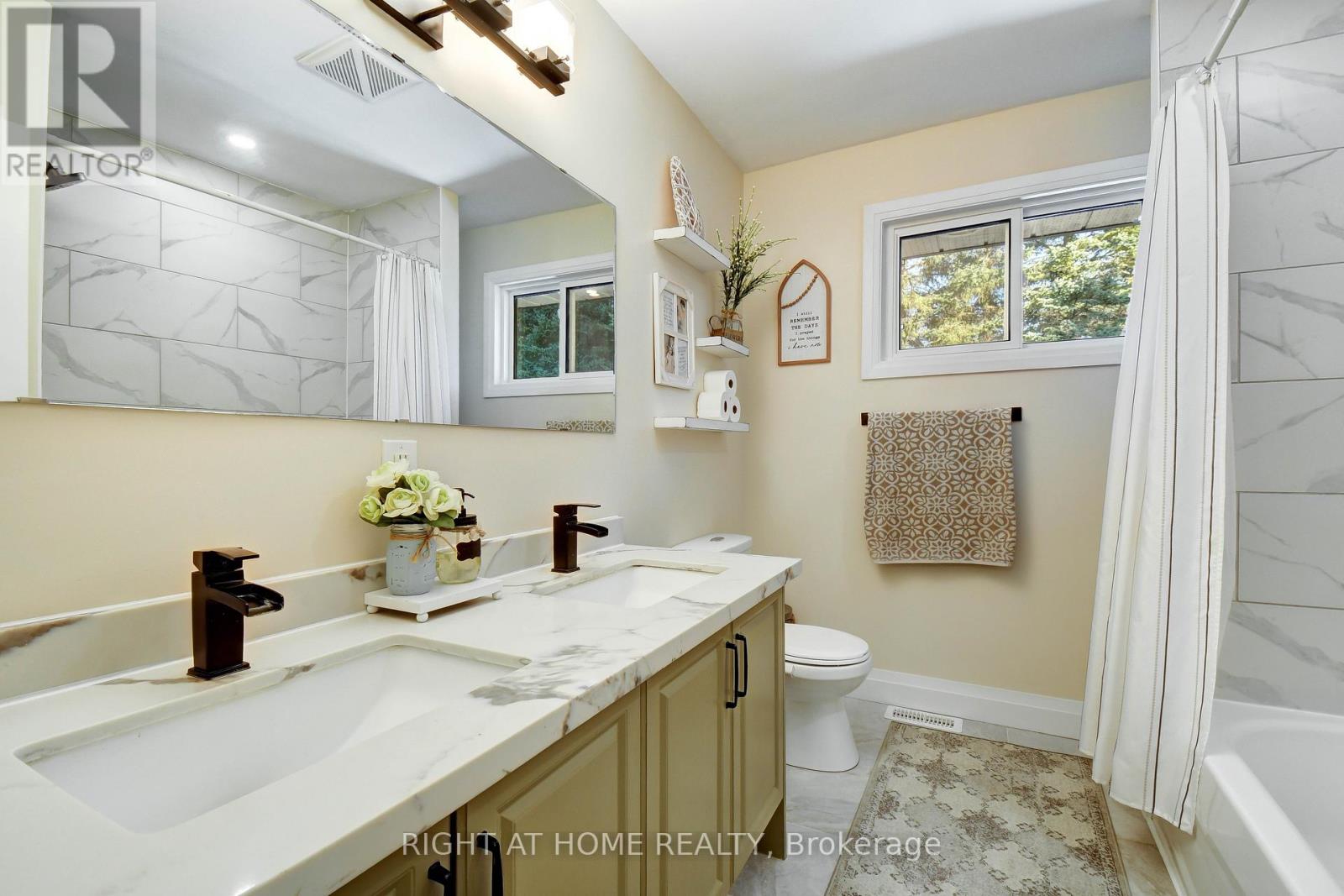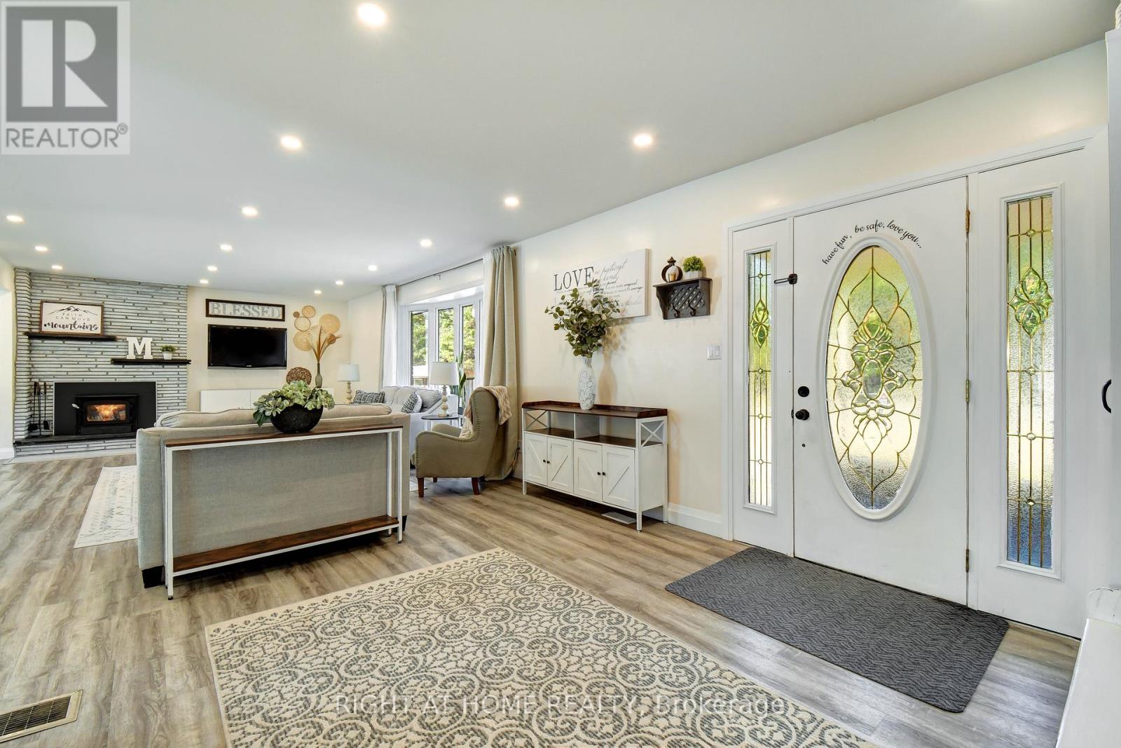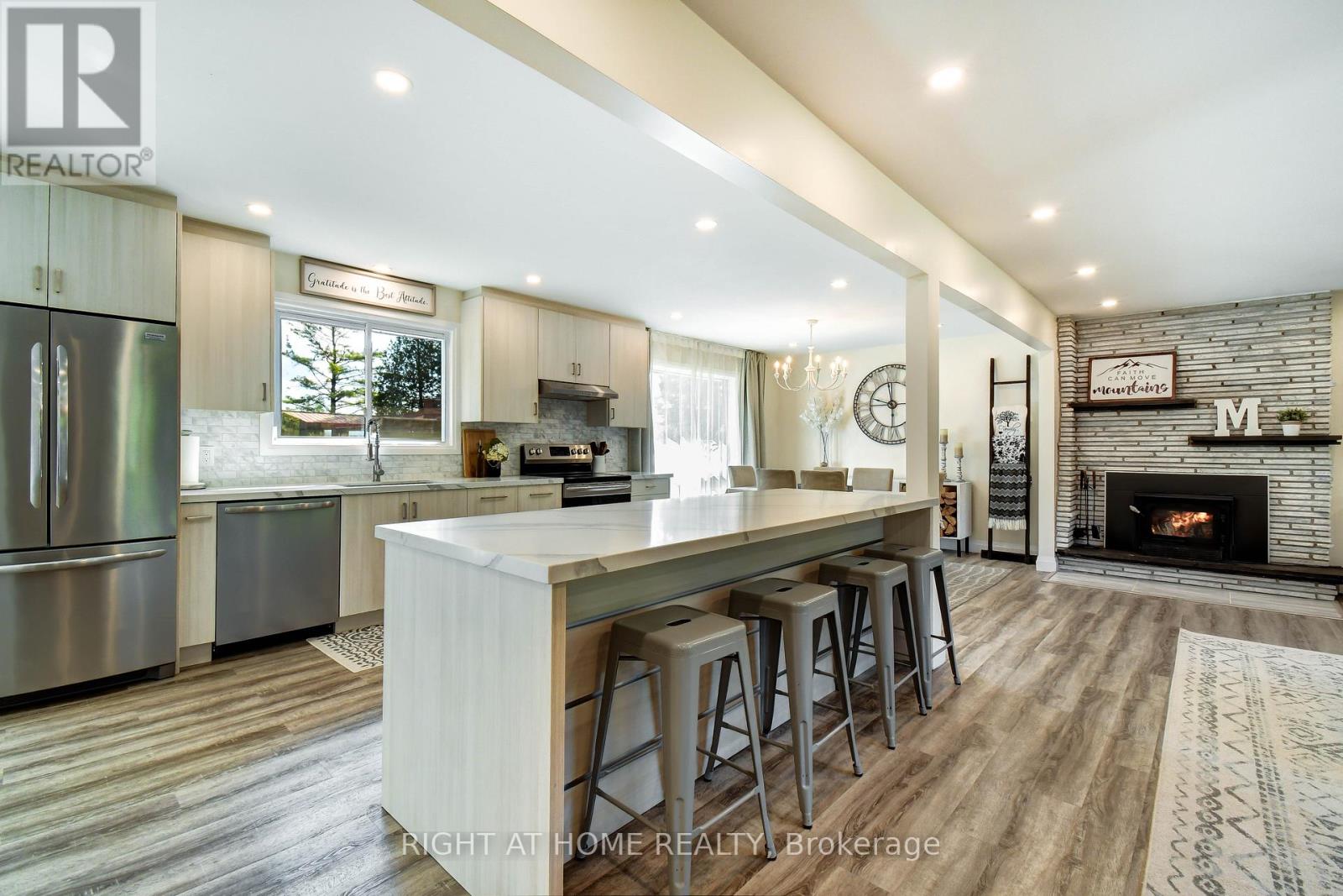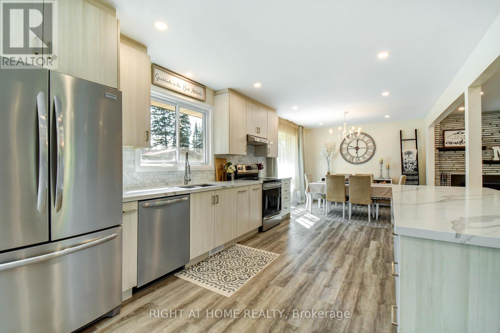 Nestled in the heart of Wilberforce Community and close to seven of the most beautiful lakes within the Highlands East municipality, this exceptional property is a true gem of Haliburton County. Thoughtfully upgraded and reimagined, this 3-bedroom, 2 full baths solid brick bungalow offers over 1,716 sq.ft. of luxury living space, blending modern comfort with the peaceful charm of country life.The main floor is bright and inviting, featuring an open-concept layout that connects the living room, dining area, and gourmet style kitchen with custom cabinetry, quartz countertops, a large centre island, built-in stainless steel appliances, and open-concept views throughout. Recent upgrades include a newer furnace, roof, windows, flooring, bathrooms, kitchen, and a new power generator, ensuring comfort and efficiency in every season.The sun-filled, tranquil primary bedroom provides a relaxing retreat, complemented by two additional well-sized bedrooms and spa-like bathrooms. The spacious living and dining rooms offer a cozy setting for family gatherings. The generous basement features upsized windows, a separate entrance, and flexible space ideal for a home office, workshop, or recreation room.A well-planned mudroom with a separate entrance from the back of the house adds exceptional convenience. Tastefully designed outdoor spaces provide privacy and serenity-perfect for enjoying life in this beautiful home. The double attached garage, along with ample additional parking, enhances daily functionality. The lot features topographically flat terrain, providing an ideal setting for outdoor living and effortless maintenance.Surrounded by trails, lakes, and the natural beauty of Highlands East, this move-in-ready property delivers convenient location & quality finishes. A turn-key bungalow you'll love forever. Home of this quality is a rare find. (id:4555)