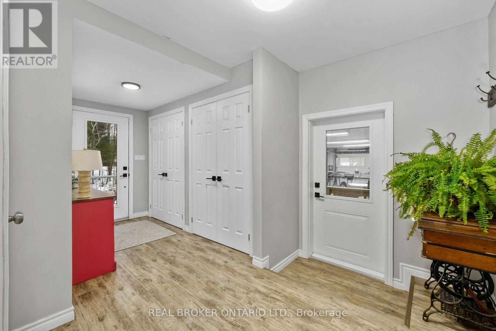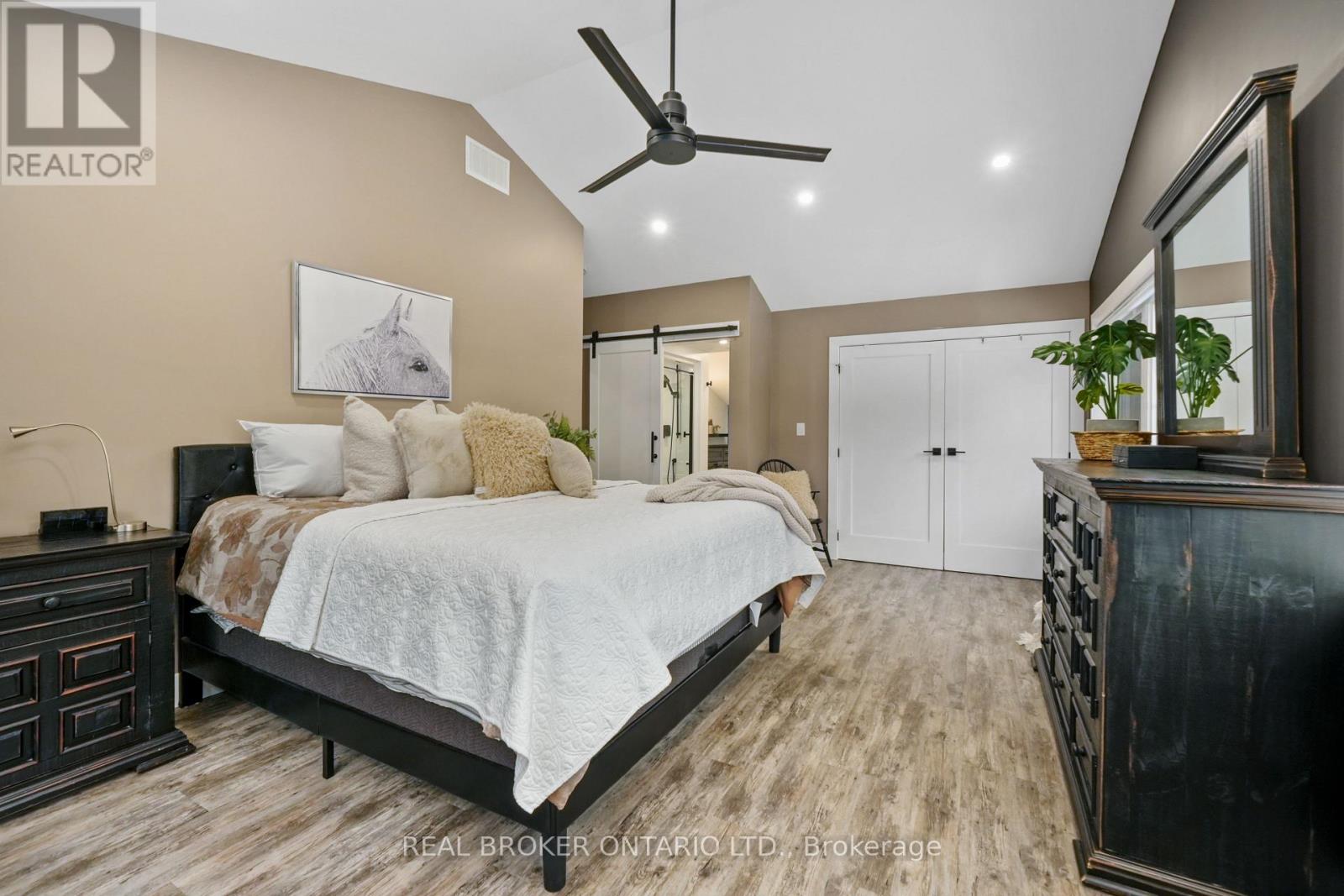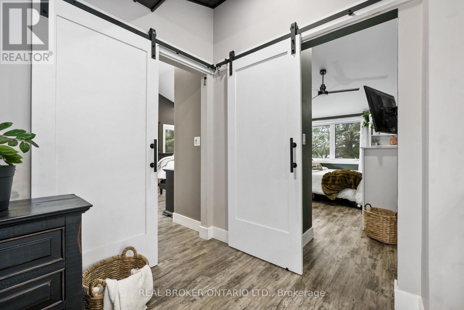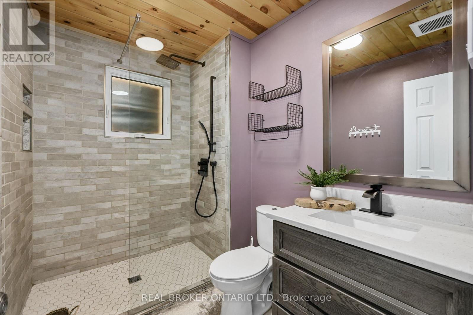 Once-in-a-lifetime opportunity on Eels Lake. This exceptional waterfront property offers one of the few truly flat, level lots on the lake, with 118 feet of private sandy beachfront and coveted western exposure for unforgettable sunsets. Set at the end of a quiet dead-end road with Crown land beside, it provides outstanding privacy and year-round enjoyment.Inside, soaring cathedral ceilings and walls of windows fill the home with natural light, while the gourmet chef's kitchen features leathered granite countertops and premium cabinetry. The main living area flows seamlessly to lakeside stamped concrete decking, creating the perfect indoor-outdoor space for entertaining or relaxing by the water. The home offers 3 bedrooms and 2 bathrooms, including a bath with heated floors and a soaker tub for added comfort. A cozy wood-burning fireplace, propane heating, and a 2-car garage with abundant storage ensure convenience in every season. A private bunkie and adjacent Crown land further enhance the sense of space and seclusion.Located just two hours from the GTA, this is a rare chance to own a flat, western-exposure waterfront property with exceptional privacy, luxury, and storage on one of the Kawarthas' most desirable lakes. (id:4555)