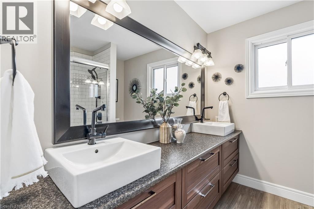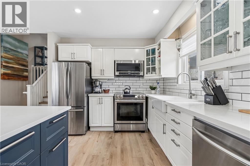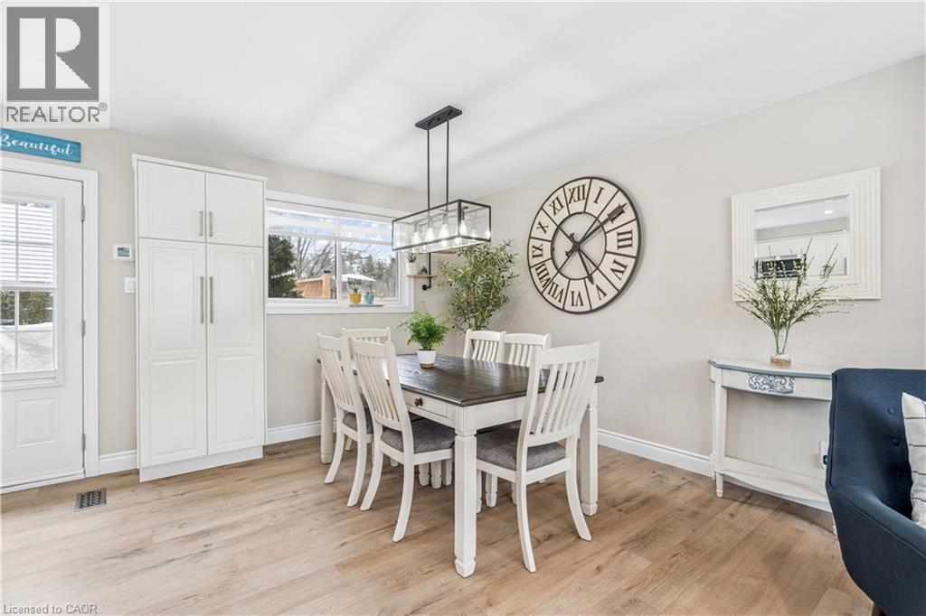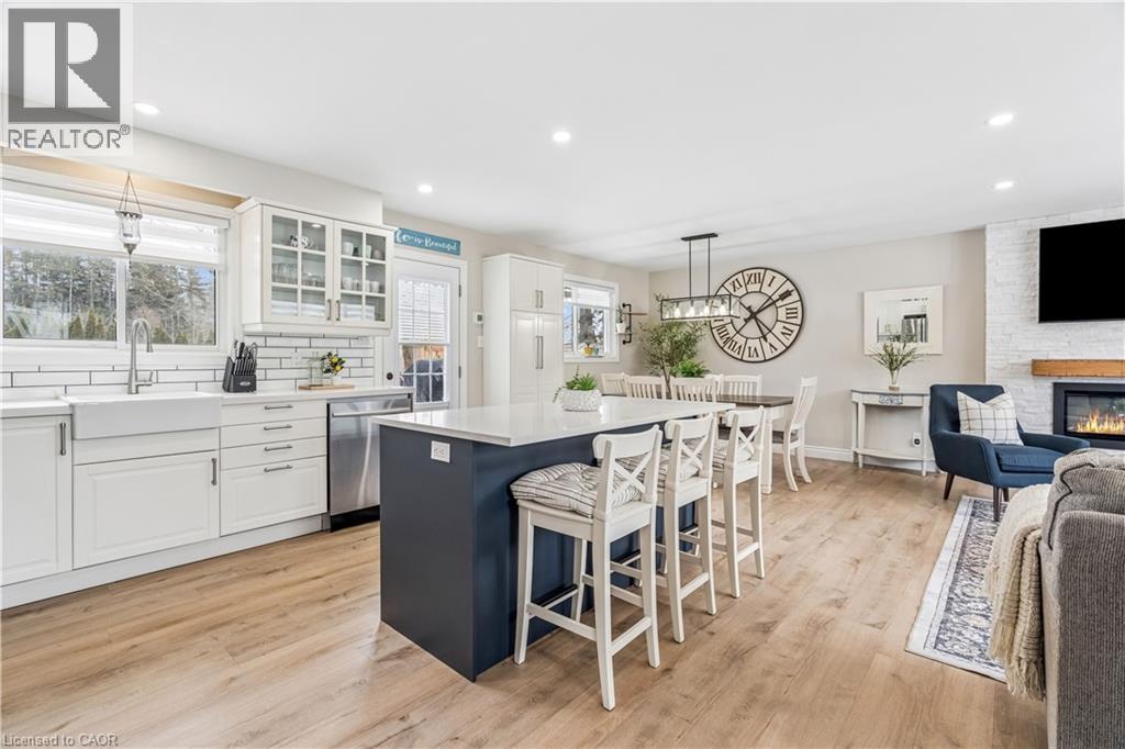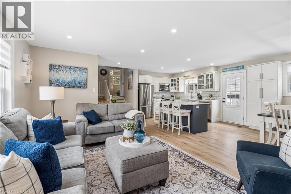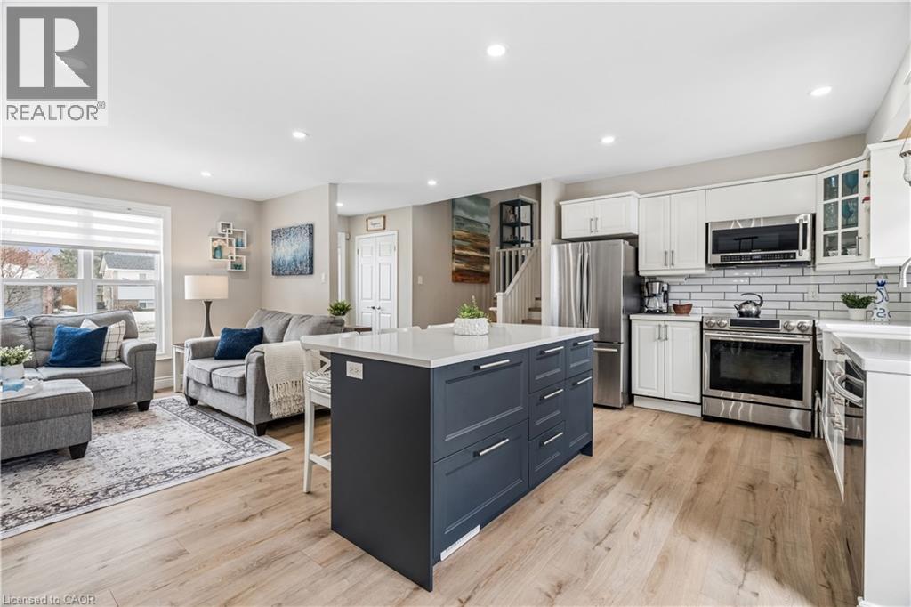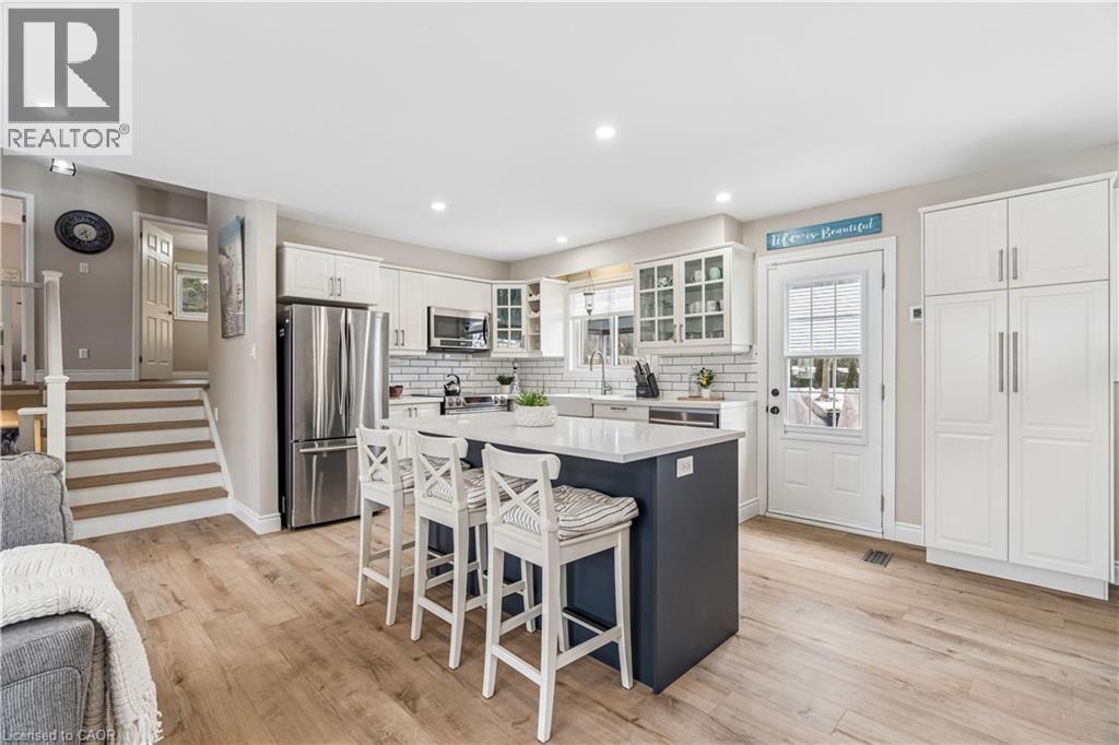 Welcome to a beautifully updated family home in the heart of Hillsburgh, a charming community in the Town of Erin known for its small-town warmth, scenic trails, and family-friendly lifestyle. Located on a 76 x 121 ft lot, this spacious 3+2 bedroom sidesplit offers the perfect blend of comfort, style, and functional living space. Step inside to discover a bright and inviting open-concept main floor featuring durable luxury vinyl flooring and modern pot lights throughout. The living room is filled with natural light from a large front window and showcases a stylish wall-mounted fireplace feature wall. The updated kitchen features quartz countertops, stainless steel appliances, subway tile backsplash, and a large centre island with seating. The space flows seamlessly into the dining area and offers a convenient walk-out to the backyard deck. Upstairs you’ll find three generous bedrooms with continued luxury vinyl flooring and a spacious 5-piece family bathroom. The lower level offers additional living space with a bright family room featuring above-grade windows, luxury vinyl flooring, and pot lights. Two additional bedrooms and a modern 3-piece bathroom make this level ideal for extended family, or a home office setup. The finished basement provides a recreation area featuring parquet flooring and pot lights, along with the laundry area. Outside, enjoy a large fully fenced backyard. The large deck is perfect for BBQs, relaxing evenings, and entertaining friends and family. Additional features include an attached single-car garage and a driveway that comfortably parks four vehicles. Updates completed in 2022 include new flooring, kitchen island and pantry, basement bathroom, new stairs, and fresh interior and exterior paint. The roof was replaced in 2023. Enjoy easy access to parks, schools, local shops, and community events, all while being within convenient driving distance of Orangeville, Georgetown, and Guelph. (id:4555)