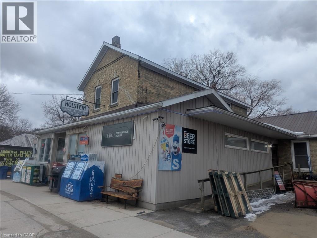 Live, Work & Earn - All in One Incredible Opportunity! Looking for the perfect blend of lifestyle and income? This rare country general store with living quarters in the heart of Holstein, Ontario offers the ultimate work-from-home dream. Established, well-loved general store with long-term ownership history. Great multiple income stream with strong local and visiting traffic featuring postal services & community mail hub pick up, lottery terminals centre, well stocked LCBO licenced outlet and great local produce plus great grab and go lunch options. Located right on the snowmobile route as a favourite rest stop also enhances income during the winter months with profound loyal customer base. Nice improvements already completed for comfortable on-site living quarters or rental income. Why Holstein? This vibrant rural community offers more than just charm-it delivers a lifestyle features like the Annual Bluegrass & Maple Syrup Festivals. The community also features public school, daycare, and community centre complete with park, playground & swimming facilities plus a Senior's residence. Whether you're an entrepreneur, investor, or lifestyle seeker, this is your chance to own a thriving business while enjoying small-town living all at the same time. Opportunities like this don't come often-step into a business with history, stability, and heart. (id:4555)