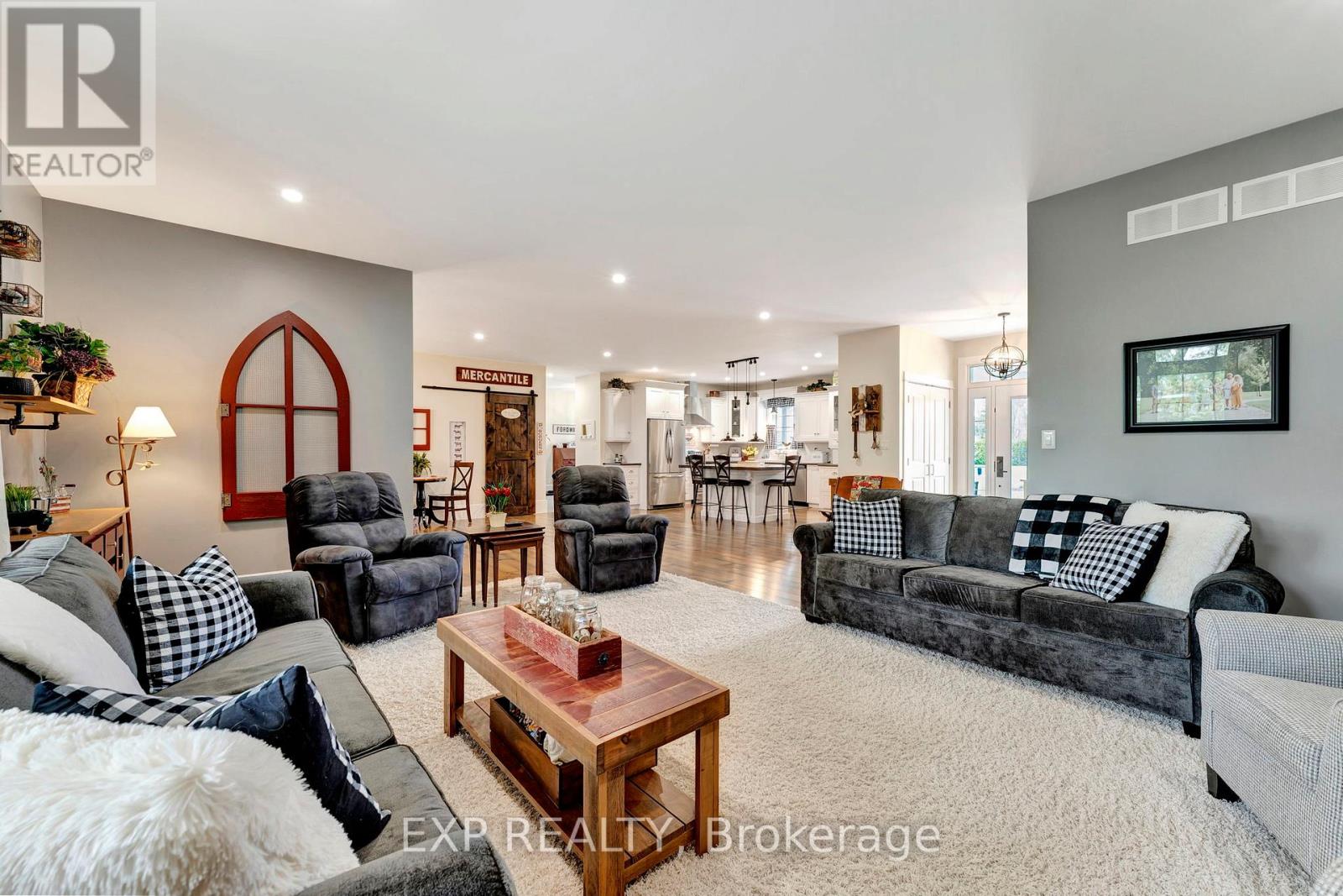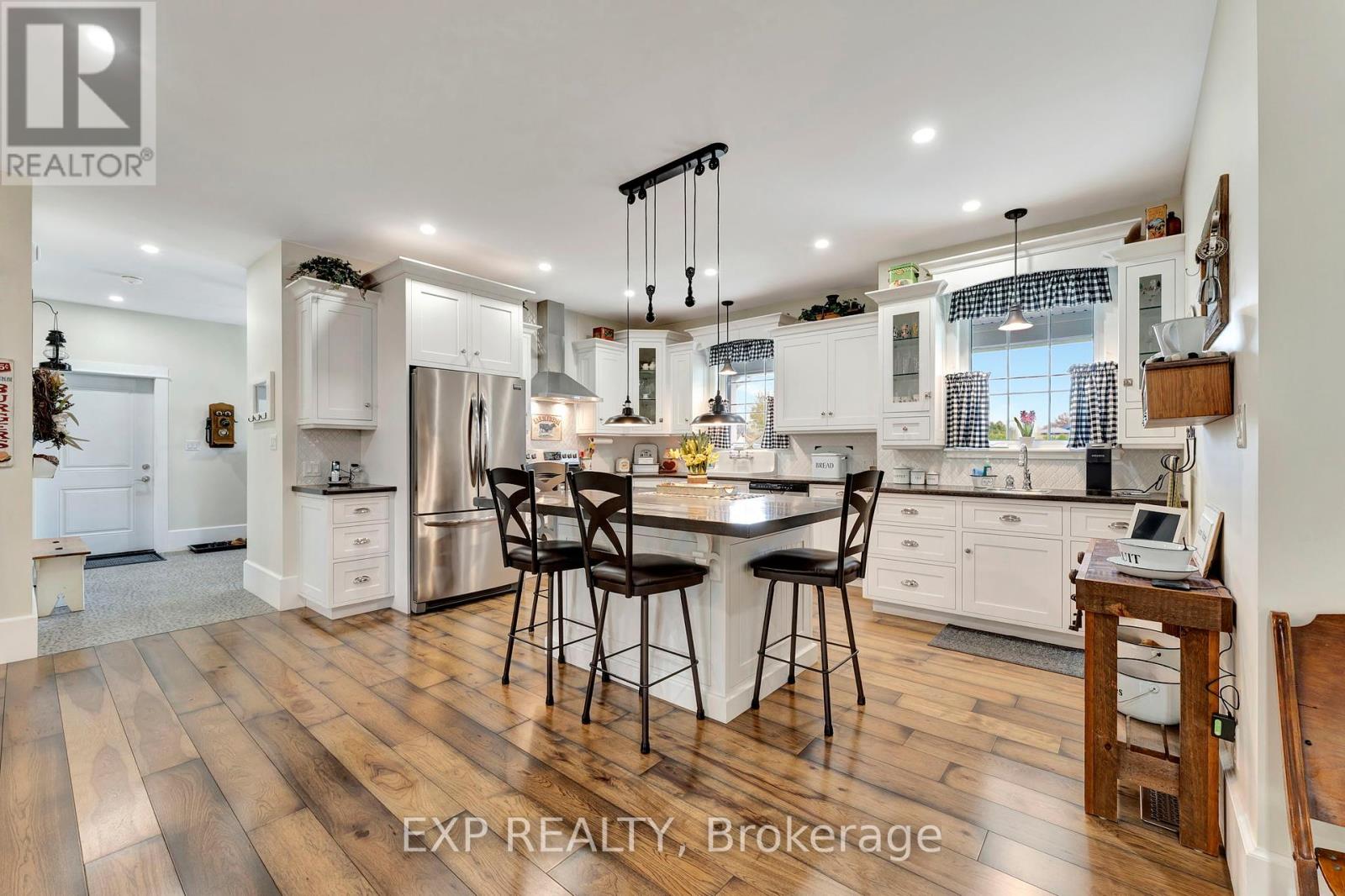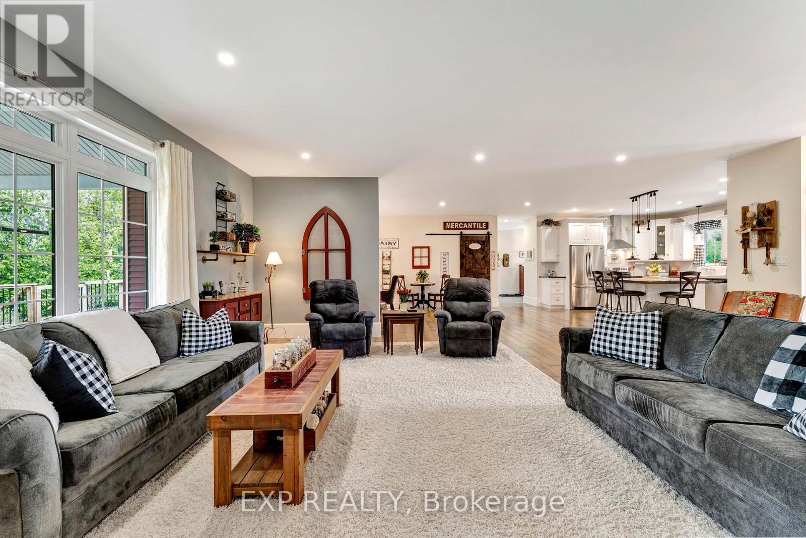 Welcome to 3034 Station Road, Fordwich where luxurious country living meets thoughtful design and functionality on nearly 3.4 acres of beautifully landscaped land. This custom-built bungalow boasts over 3,000 sq. ft. above grade with accessibility in mind, offering wide hallways, doors, and a main-floor layout perfect for families or retirees alike. Inside, you'll find 4 bedrooms, 4 bathrooms, a gourmet kitchen with high-end appliances, and a sprawling dining area ideal for entertaining. The finished basement includes a massive rec room, extra bedroom, ample storage, and even a cold cellar. The heated attached triple garage and oversized workshop with separate heat, power, and water are a dream for hobbyists or entrepreneurs. Modern comforts include a high-efficiency propane furnace, central air, water treatment systems, partial generator, and smart layout with main-floor laundry and mudroom. Enjoy tranquil pond views, peaceful walking trails, and nature right outside your door, all while being minutes from the heart of Fordwich and nearby towns like Wingham and Listowel for shopping, schools, and healthcare. Whether you're raising a family, downsizing with style, or need space to grow your business from home, this stunning property offers unmatched versatility, privacy, and quality craftsmanship. Book your private showing today and discover everything this one-of-a-kind home has to offer! (id:4555)