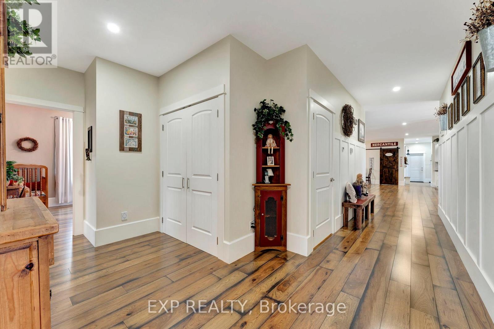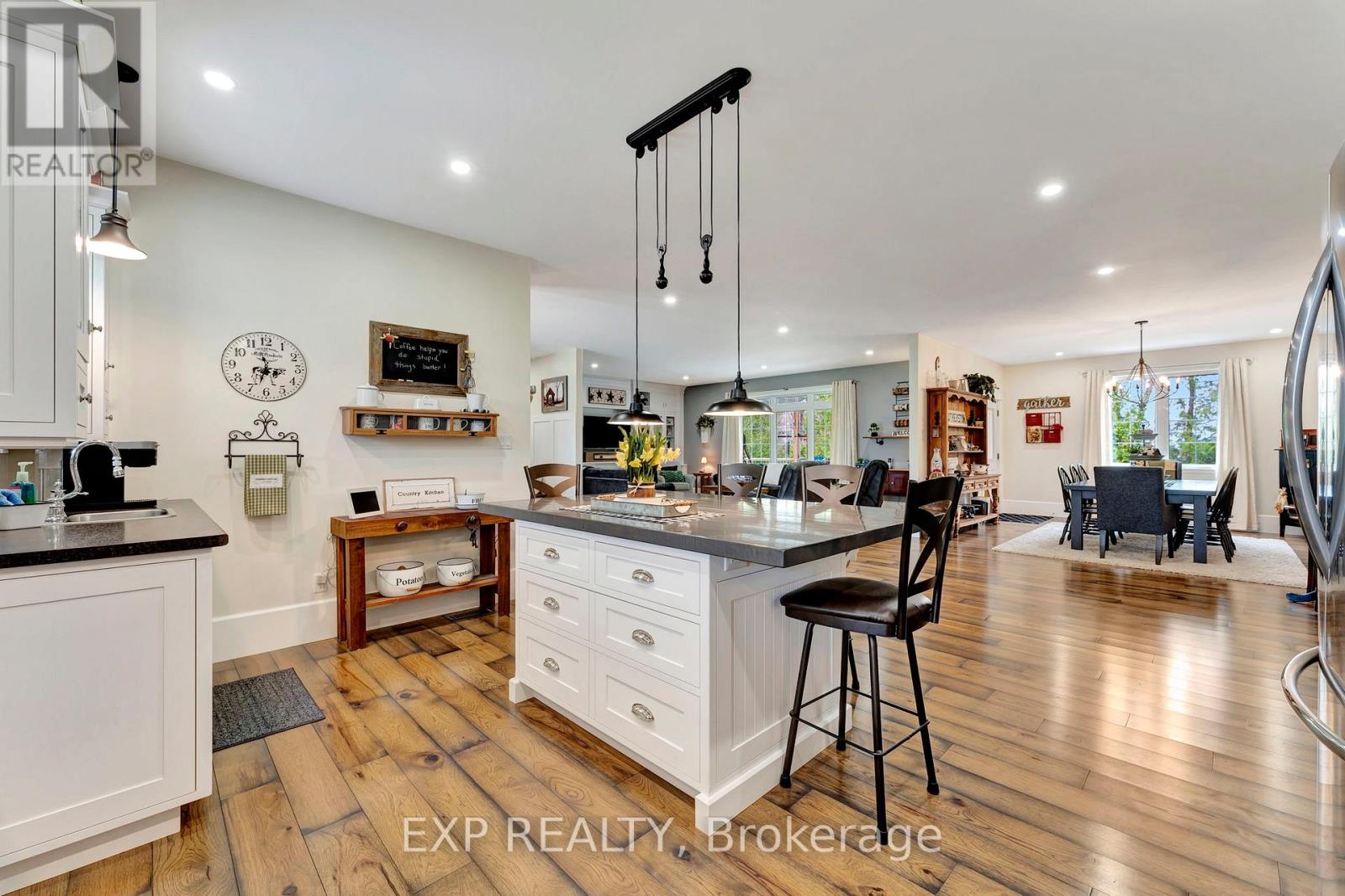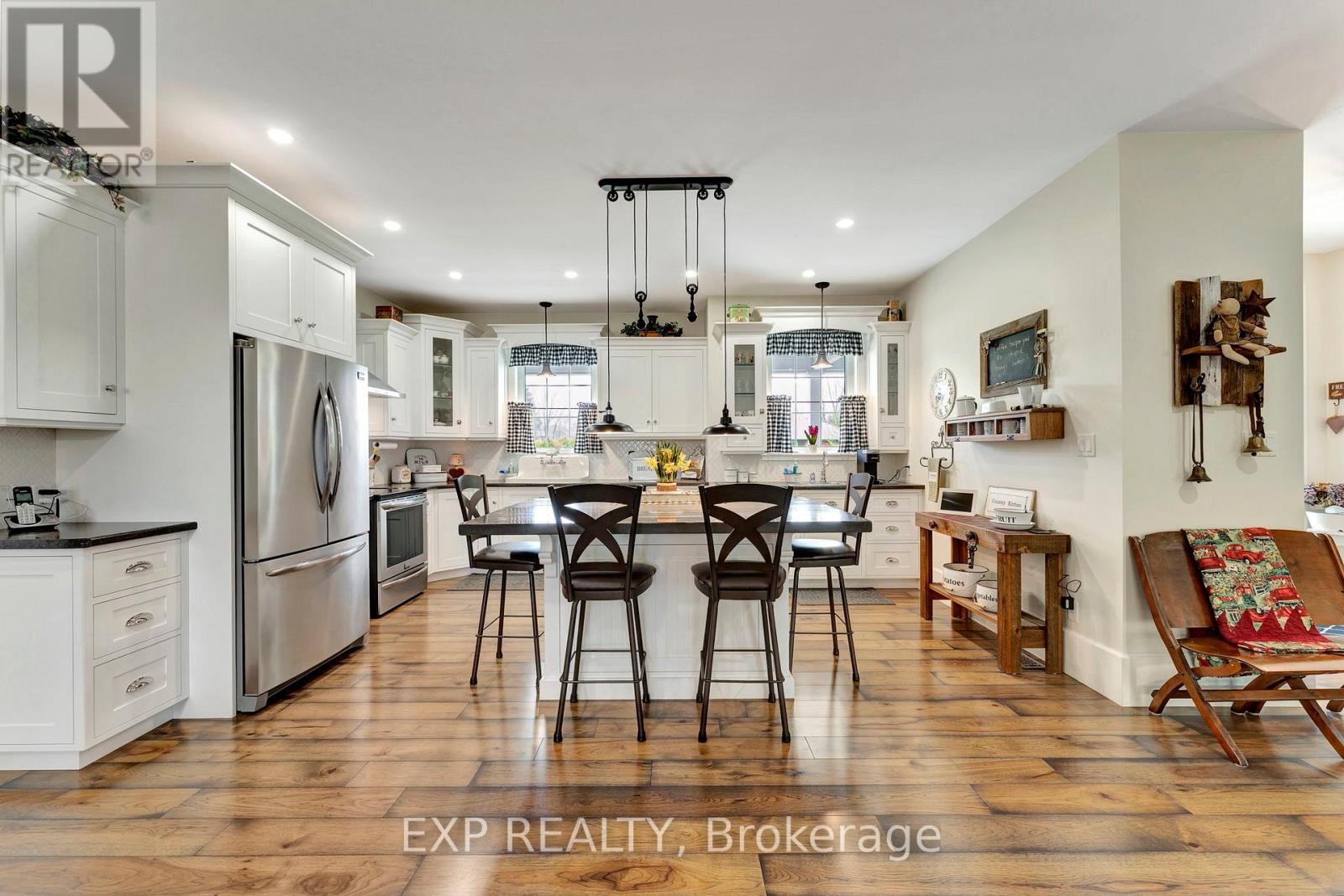 Welcome to 3034 Station Road, Fordwich where luxurious country living meets thoughtful design and functionality on nearly 3.4 acres of beautifully landscaped land. This custom-built bungalow boasts over 3,000 sq. ft. above grade with accessibility in mind, offering wide hallways, doors, and a main-floor layout perfect for families or retirees alike. Inside, you'll find 4 bedrooms, 4 bathrooms, a gourmet kitchen with high-end appliances, and a sprawling dining area ideal for entertaining. The finished basement includes a massive rec room, extra bedroom, ample storage, and even a cold cellar. The heated attached triple garage and oversized workshop with separate heat, power, and water are a dream for hobbyists or entrepreneurs. Modern comforts include a high-efficiency propane furnace, central air, water treatment systems, partial generator, and smart layout with main-floor laundry and mudroom. Enjoy tranquil pond views, peaceful walking trails, and nature right outside your door, all while being minutes from the heart of Fordwich and nearby towns like Wingham and Listowel for shopping, schools, and healthcare. Whether you're raising a family, downsizing with style, or need space to grow your business from home, this stunning property offers unmatched versatility, privacy, and quality craftsmanship. Book your private showing today and discover everything this one-of-a-kind home has to offer! (id:4555)