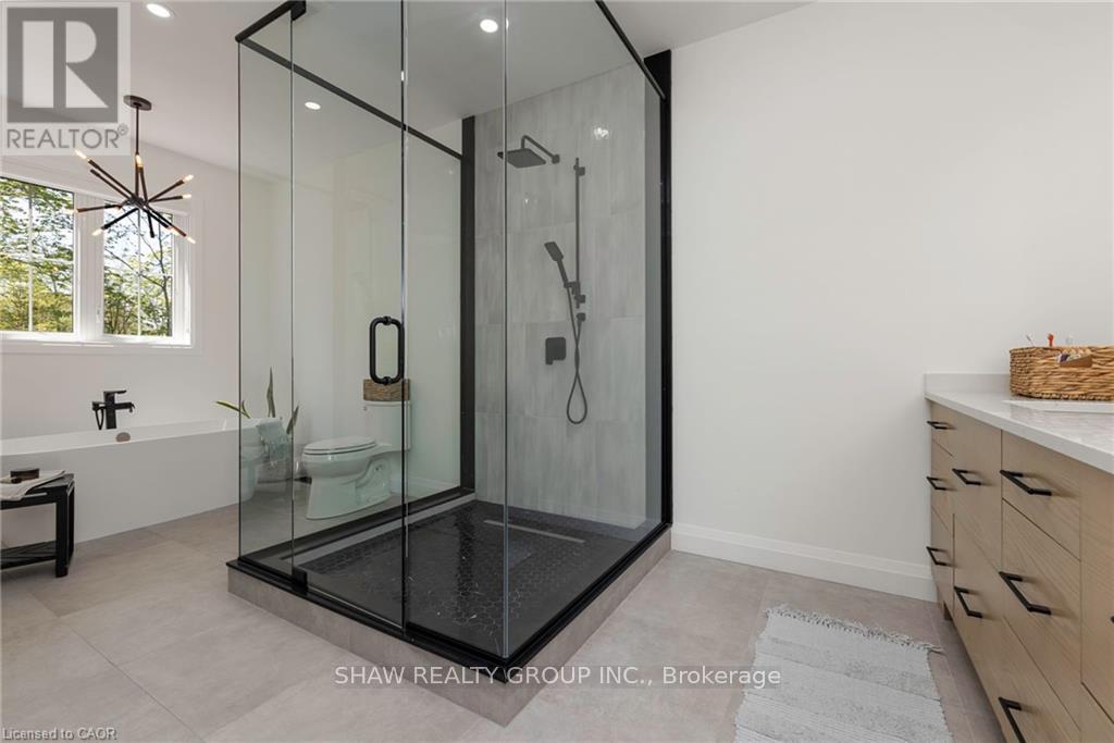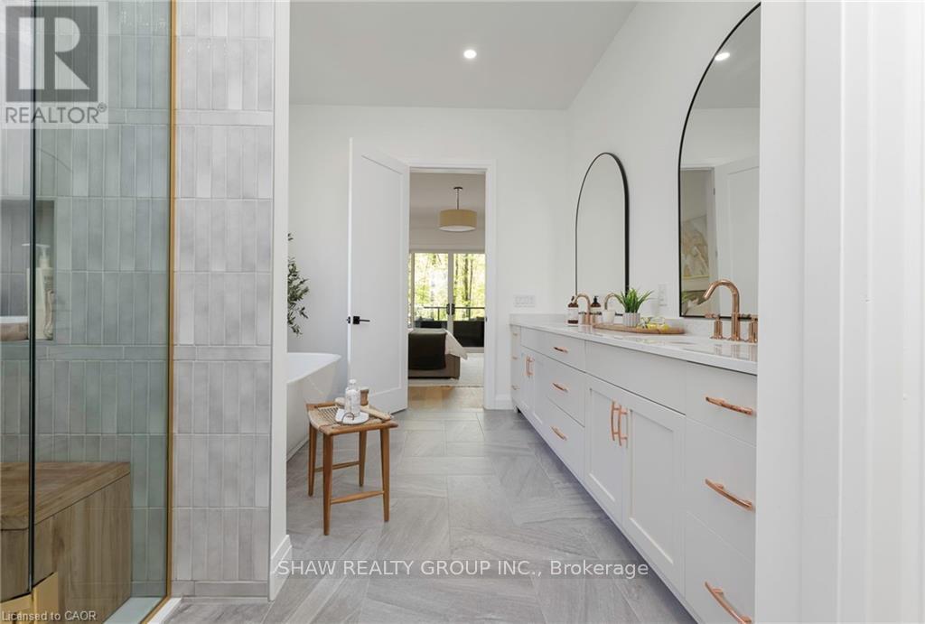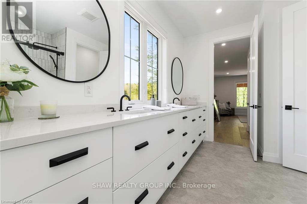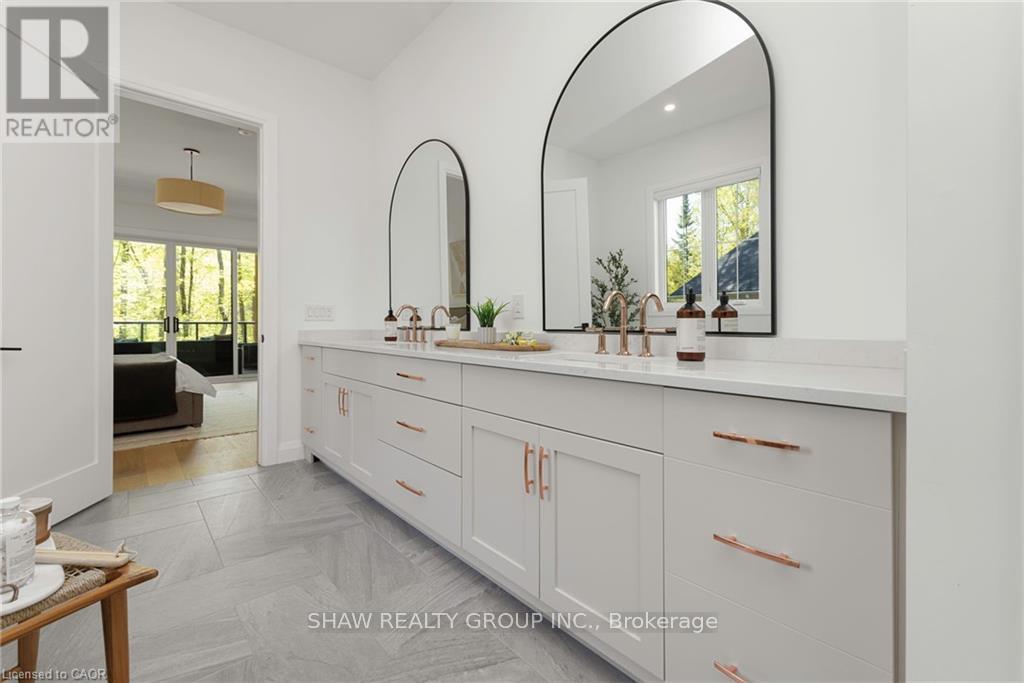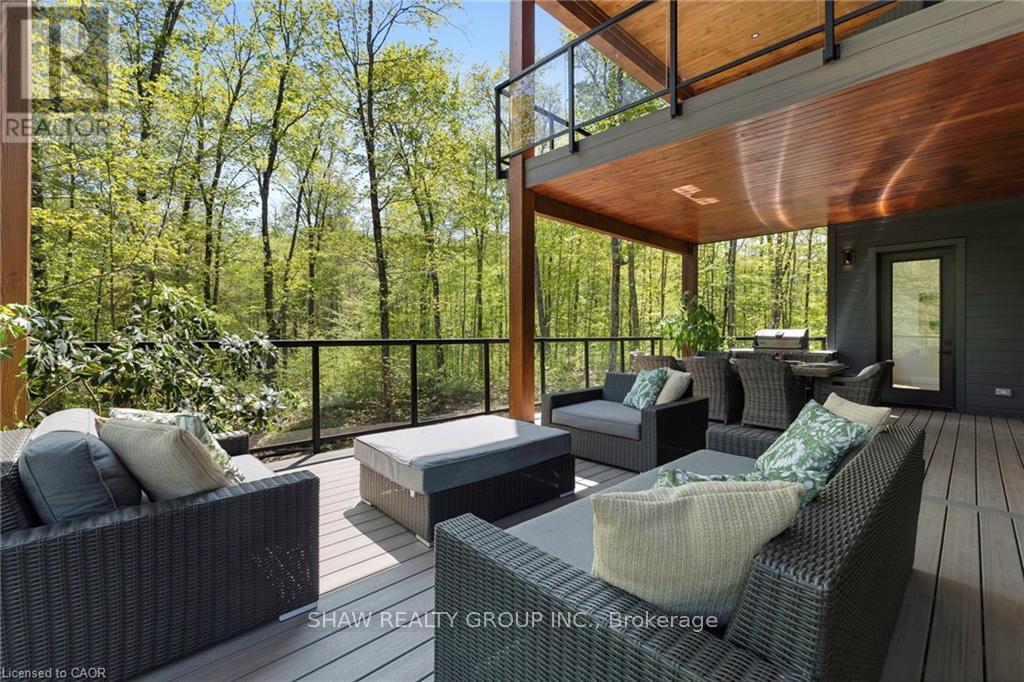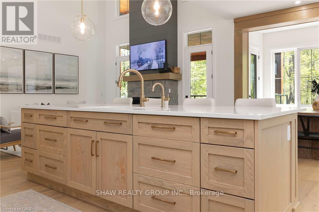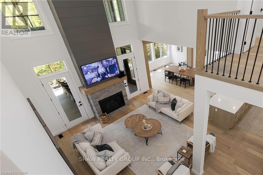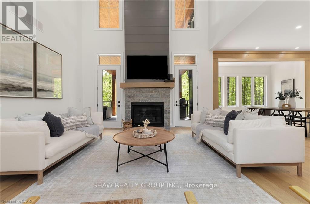 This stunning residence embodies the epitome of modern luxury, seamlessly integrated into a breathtaking natural landscape. Nestled among towering trees and backing onto Hole 11 of Deerhurst Highlands Golf Course, this 6800+ Square foot masterpiece offers 6 spacious bedrooms and 4.5 bathrooms, privacy, tranquility, and every imaginable comfort. The open-concept main floor features pre-engineered oak flooring and a striking granite stone fireplace that anchors the living space. The gourmet kitchen is equipped with top-tier appliances, including a double wall oven, French door fridge, and built-in coffee maker. It also includes quartz countertops, a walk-in pantry, and custom cabinetry designed for both beauty and functionality. The thoughtful layout offers both a main floor and 2nd floor primary suite, each complete with luxurious en-suites featuring steam showers (main floor only) and soaker tubs. Every bathroom exudes spa-like sophistication. Enjoy 2 cozy fireplaces, 2 balconies, and a walk-out patio inviting you to relax and take in the beauty of the surrounding forest. The 2nd floor offers 3 additional bedrooms and 2 bathrooms, allowing for additional family to enjoy their own luxurious spaces. The walk-out lower level features in-floor heating, a stylish wet bar, additional bedrooms, and a generous living space ideal for entertaining. The heated 3 bay garage, also with in-floor heating, provides exceptional comfort and convenience year-round. Outside, the landscaped grounds are perfect for evenings spent under the stars. Conveniently located near schools, shopping, and scenic trails, yet tucked away in a quiet enclave, this home offers the perfect balance of seclusion and accessibility. With easy highway access, exploring all that Huntsville and Muskoka have to offer has never been easier. Don't miss your chance to own this rare retreat where luxury meets nature. Prepare to fall in love with the unparalleled beauty and craftsmanship of this home. (id:4555)