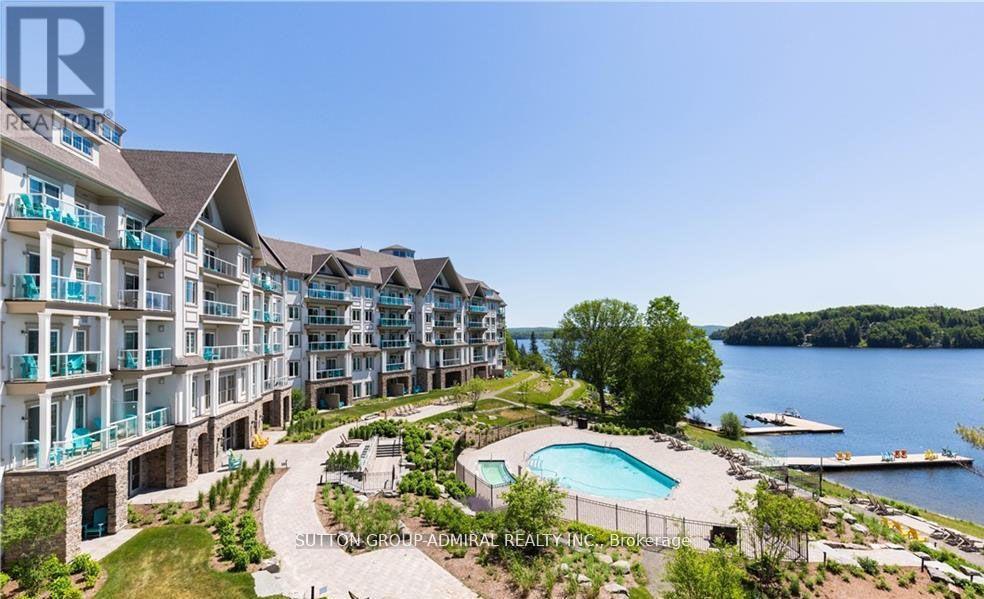Experience the very best of resort-style living in this exceptional one-bedroom condo, showcasing breathtaking, unobstructed views of Peninsula Lake. Truly one of a kind, this inviting yet sophisticated unit features a thoughtfully designed layout, high-quality finishes, and elegant designer details throughout. Enjoy soaring 9-foot ceilings, a modern kitchen complete with a ceramic backsplash, and a private balcony overlooking the lake-the perfect setting for your morning coffee or evening unwinds. Ideally situated within Deerhurst Resort, residents enjoy access to an array of world-class amenities, including golf, a private beach, spa services, on-site dining, and swimming pools-all just steps from your door. Whether you're seeking a tranquil getaway or a turnkey investment in resort living, this stunning unit delivers the complete package. (id:4555)
