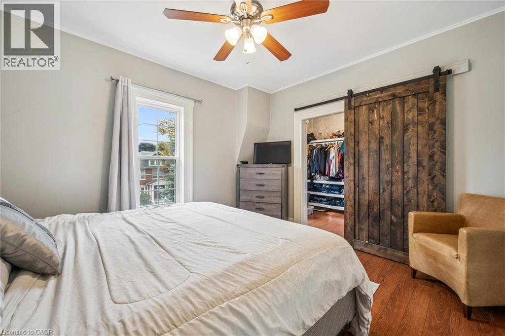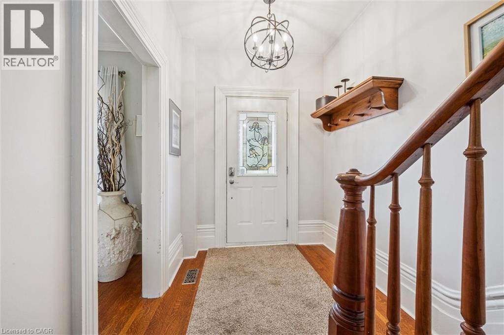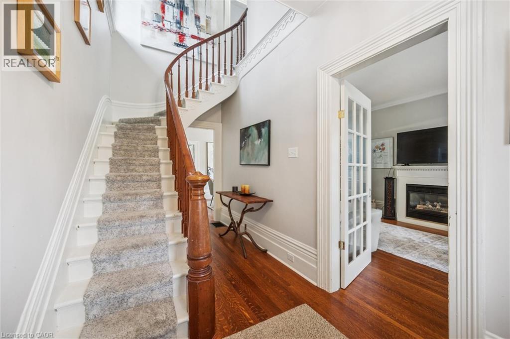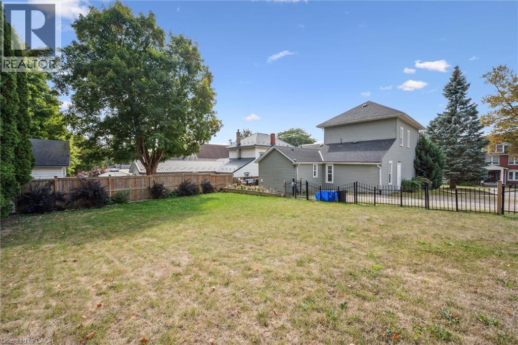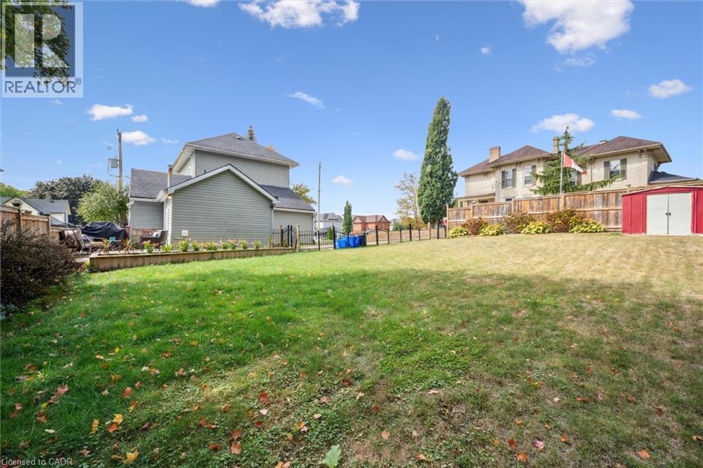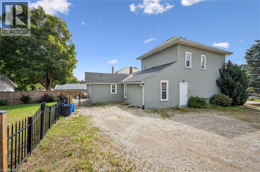 Welcome to this beautifully updated home in the heart of Ingersoll! Perfectly located near parks, schools, trails, recreation centres, and just minutes from the 401, this property blends timeless character with modern convenience. Step inside and be greeted by 9’ ceilings, original Victorian trim, and a stunning curved staircase that showcase the home’s charm. The main floor features a cozy, sun-filled living room with a gas fireplace, a spacious dining room ideal for family gatherings, and a modern eat-in kitchen with pot lights and included appliances. Enjoy the convenience of main floor laundry with a gas dryer and ample storage, plus a versatile bedroom/office with separate entrance—perfect for working from home or welcoming clients. A beautifully updated 4-piece bathroom completes the main level. Upstairs, you’ll find the additional two bedrooms with upgraded plush carpeting, high ceilings, and a large, stylish 3-piece bathroom with a tiled glass shower. The primary suite boasts a walk-in closet for added convenience. Outside, the backyard offers a large deck with a gas BBQ hookup, plenty of green space for entertaining, and a storage shed. Parking for up to six vehicles ensures room for the whole family and guests. Recent updates include a new furnace and added attic insulation (2020) and vinyl windows throughout for peace of mind. This prime location puts you footsteps from Smith’s Pond, the swimming pool, library, restaurants, and shops… everything you need, right at your doorstep. (id:4555)