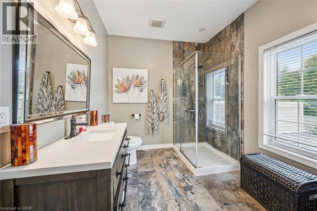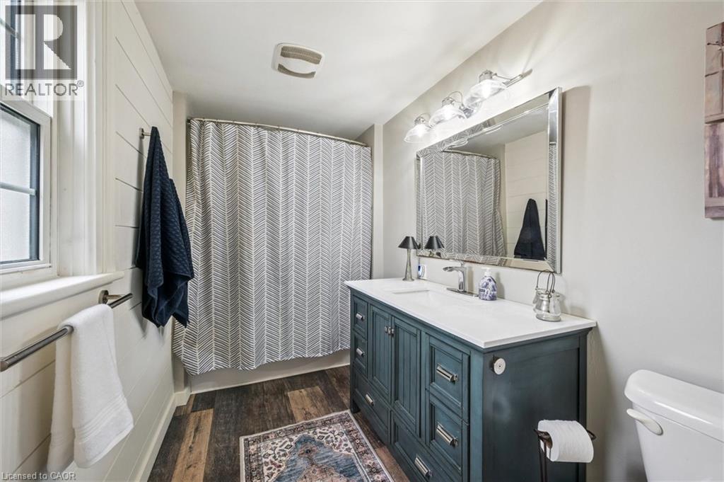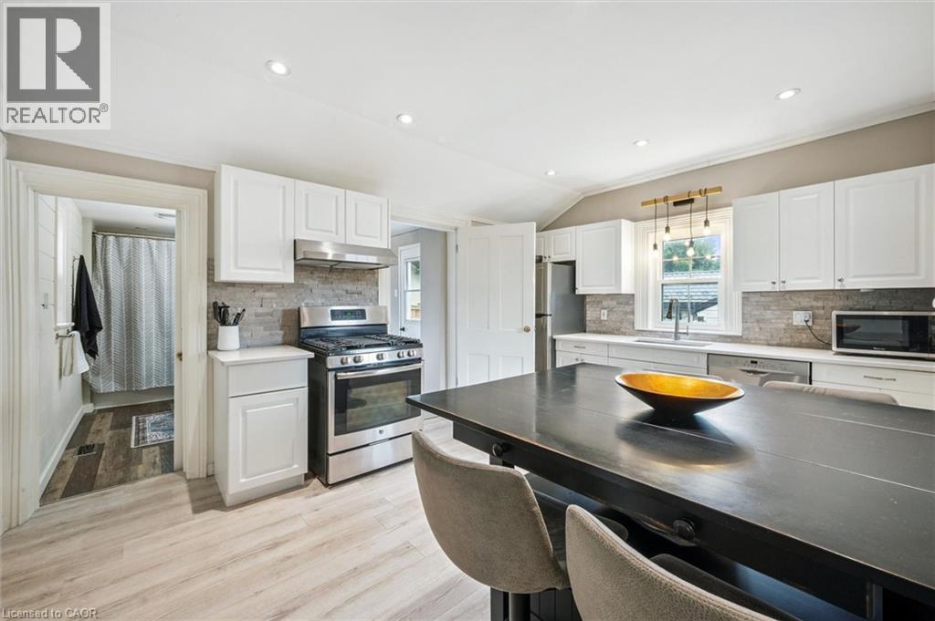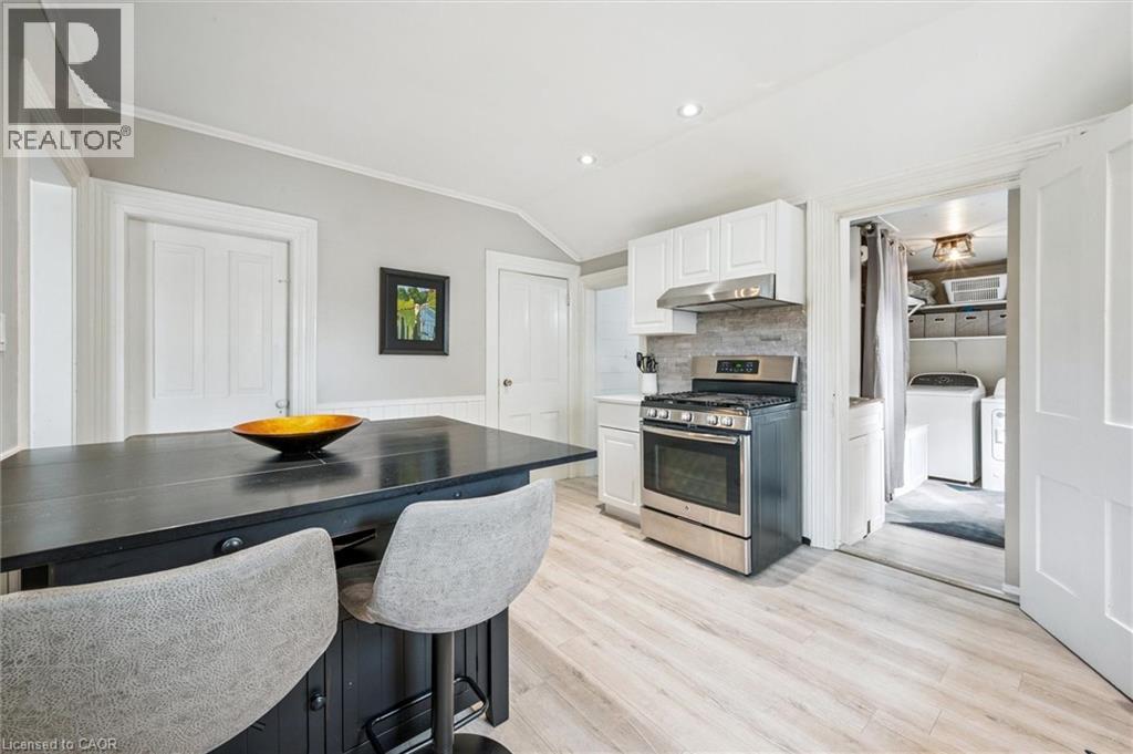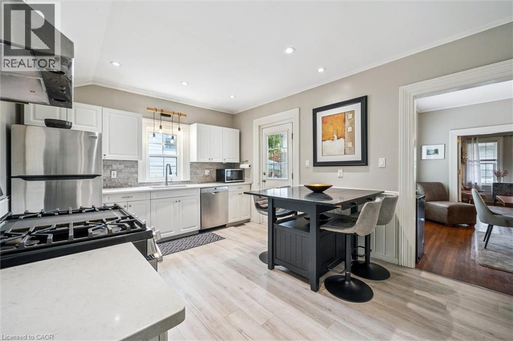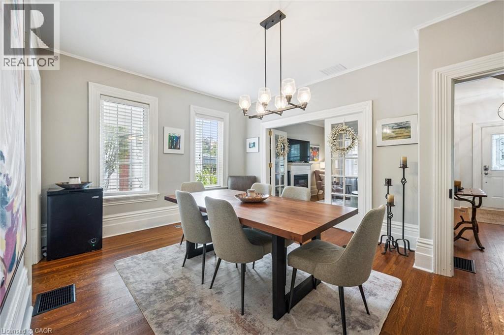 Welcome to this beautifully updated home in the heart of Ingersoll! Perfectly located near parks, schools, trails, recreation centres, and just minutes from the 401, this property blends timeless character with modern convenience. Step inside and be greeted by 9’ ceilings, original Victorian trim, and a stunning curved staircase that showcase the home’s charm. The main floor features a cozy, sun-filled living room with a gas fireplace, a spacious dining room ideal for family gatherings, and a modern eat-in kitchen with pot lights and included appliances. Enjoy the convenience of main floor laundry with a gas dryer and ample storage, plus a versatile bedroom/office with separate entrance—perfect for working from home or welcoming clients. A beautifully updated 4-piece bathroom completes the main level. Upstairs, you’ll find the additional two bedrooms with upgraded plush carpeting, high ceilings, and a large, stylish 3-piece bathroom with a tiled glass shower. The primary suite boasts a walk-in closet for added convenience. Outside, the backyard offers a large deck with a gas BBQ hookup, plenty of green space for entertaining, and a storage shed. Parking for up to six vehicles ensures room for the whole family and guests. Recent updates include a new furnace and added attic insulation (2020) and vinyl windows throughout for peace of mind. This prime location puts you footsteps from Smith’s Pond, the swimming pool, library, restaurants, and shops… everything you need, right at your doorstep. (id:4555)