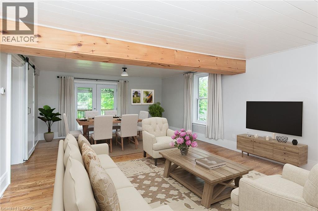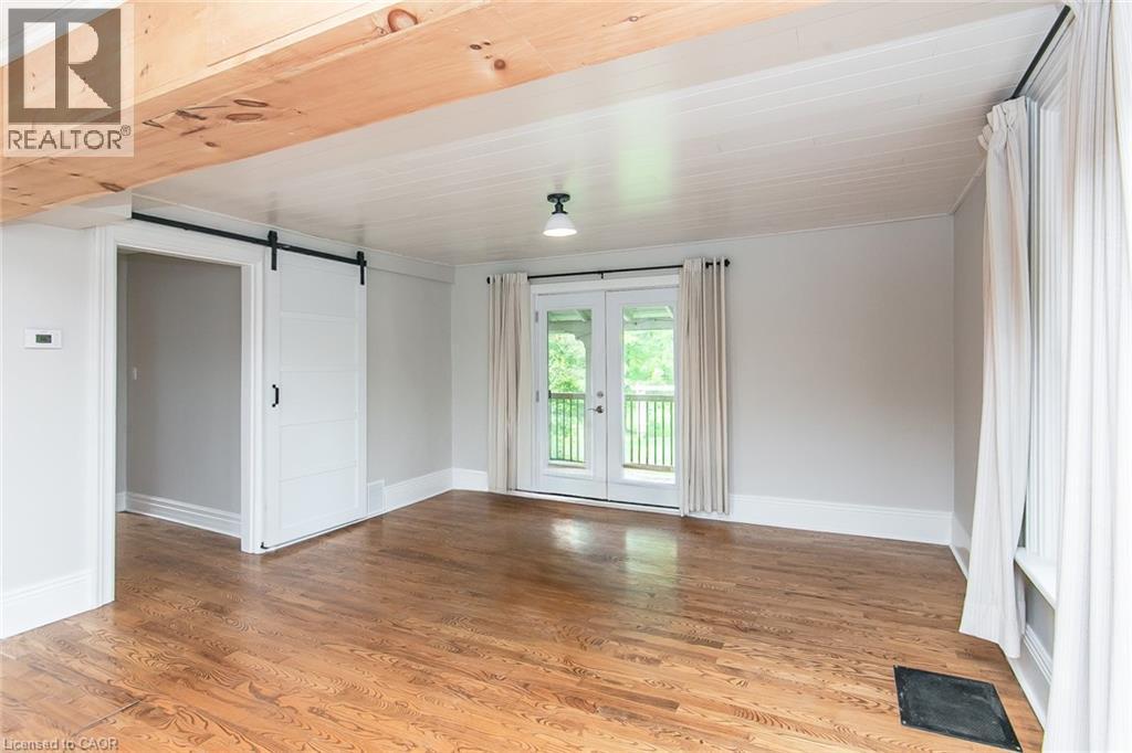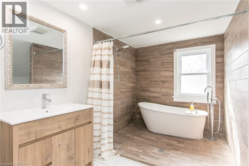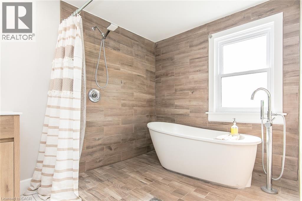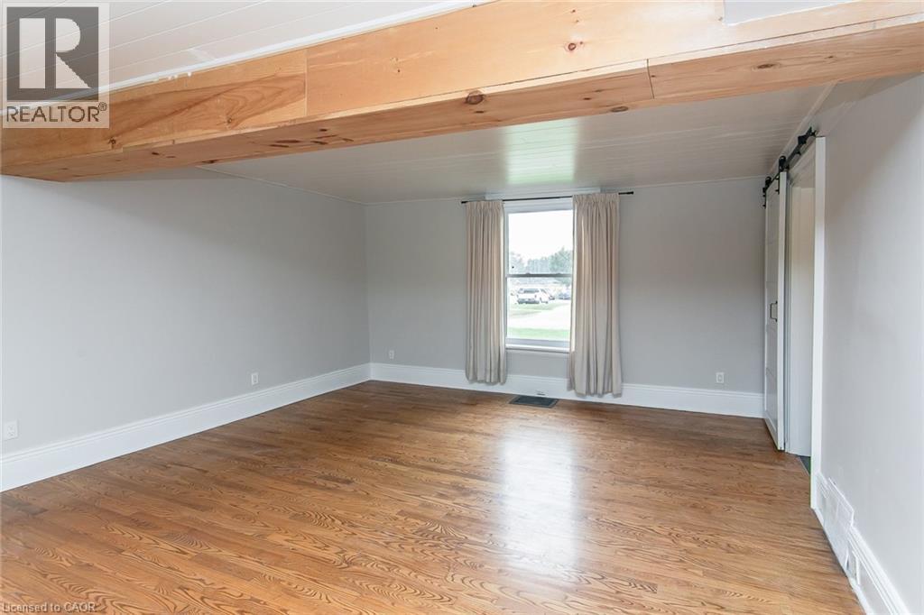 This beautifully restored 3 bedroom farmhouse seamlessly blends timeless character with modern upgrades. Set well off the road, on a generous 2/3 acre lot, the property offers privacy, space & incredible potential - all just minutes from amenities & 401 highway access. The heart of the home is the skillfully renovated kitchen, showcasing rich indigo cabinetry, maple counter tops, new SS appliances, floating shelves, and breakfast bar. With a raised sink and vintage tile, the spacious main floor powder room complements the farmhouse feel. The main living & dining areas showcase classic trim work, large new windows & garden doors that lead to the remodelled covered porch perfect for enjoying tranquil views of mature trees, lilacs, raspberry & mulberry bushes alongside frequent visits from birds & local wildlife. Upstairs offers a primary suite, 2 additional bedrooms and a breathtaking, spa-inspired bathroom featuring a freestanding soaker tub, large open walk-in shower, private water closet & ample storage. A conveniently located second floor laundry room comes complete with new appliances (a 2nd set in bsmt!) & a tub/shower combo for everyday conveniences. Step out onto the upper balcony to enjoy views of the park & nearby trails. Hardwood floors throughout and lighting fixtures thoughtfully chosen to complement the rustic charm. Freshly painted from trim to ceiling, this home is move-in ready! The expansive lot offers room to dream! Consider adding a pool, workshop, or exploring the possibility of a secondary dwelling unit, with ample parking for 4+ vehicles & a detached garage. Ideally located across from the community center, with pool, and no back neighbours! This is more than a home, it's a lifestyle! Come experience the perfect blend of City conveniences & country charm. Don't miss the chance to make it yours! (41343799) (id:4555)