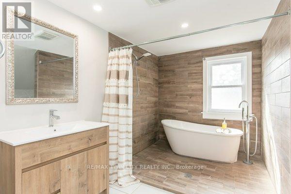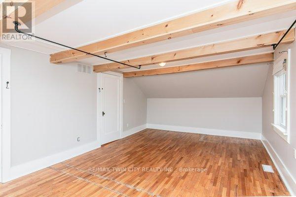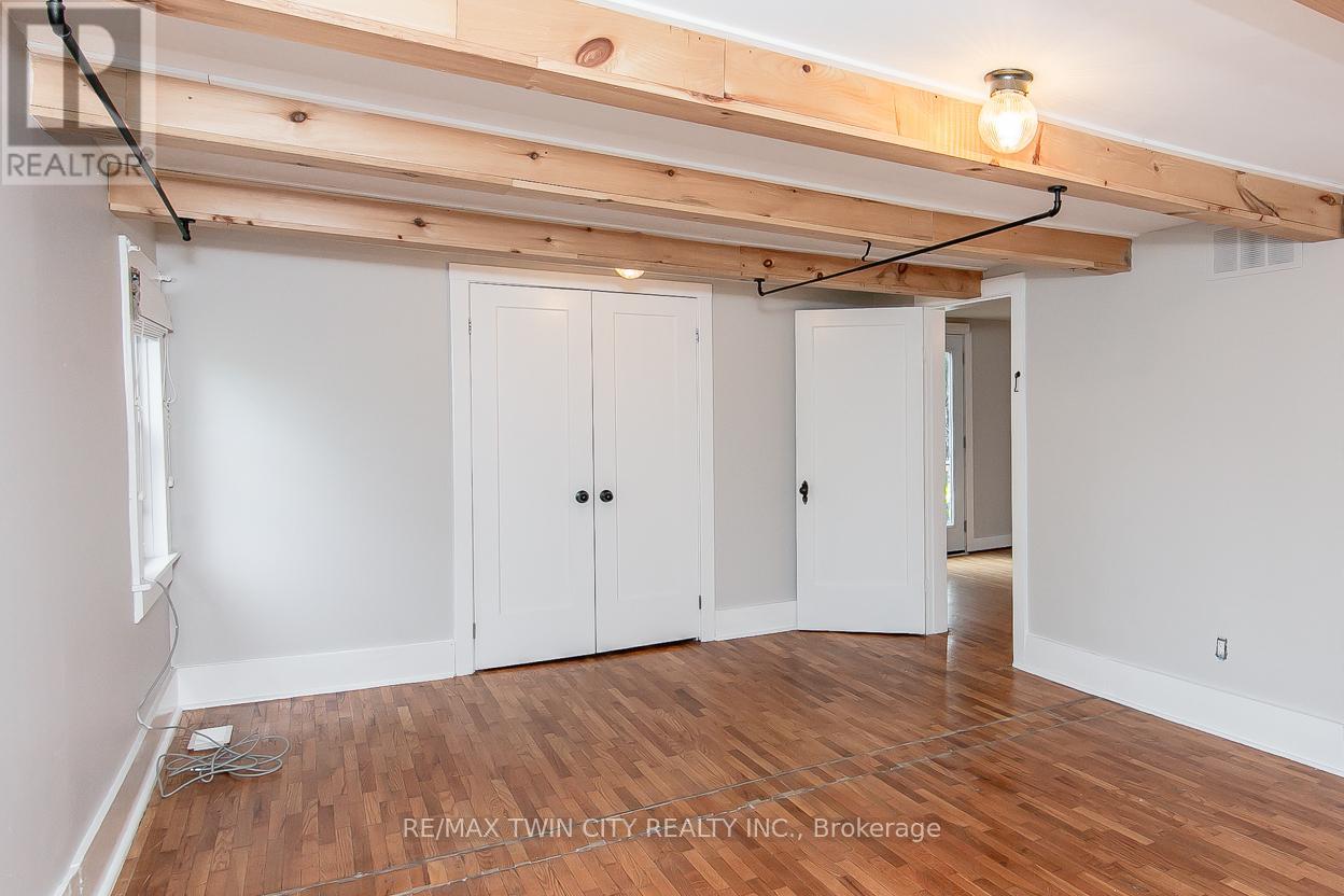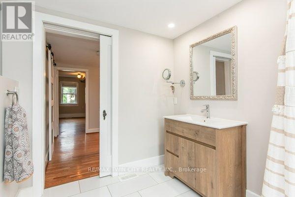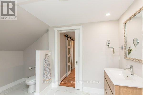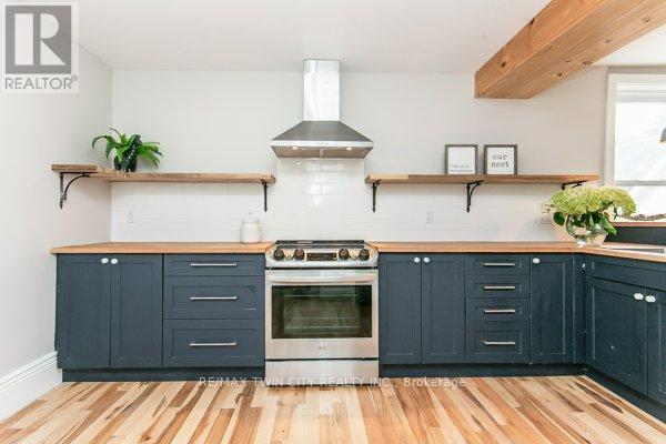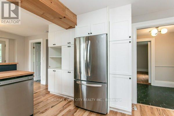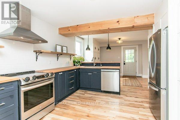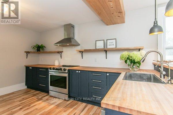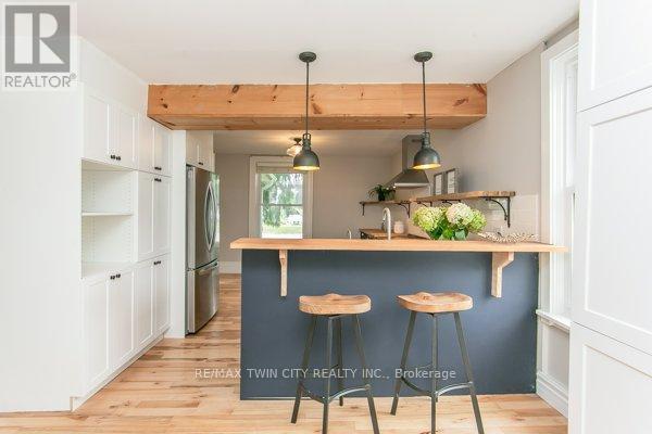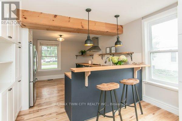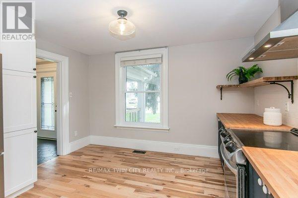 This beautifully restored 3 bedroom farmhouse seamlessly blends timeless character with modern upgrades. Set well off the road, on a generous 2/3 acre lot, the property offers privacy, space & incredible potential - all just minutes from amenities & 401 highway access. The heart of the home is the skillfully renovated kitchen, showcasing rich indigo cabinetry, maple counter tops, new SS appliances, floating shelves, and breakfast bar. With a raised sink and vintage tile, the spacious main floor powder room complements the farmhouse feel. The main living & dining areas showcase classic trim work, large new windows & garden doors that lead to the remodelled covered porch perfect for enjoying tranquil views of mature trees, lilacs, raspberry & mulberry bushes alongside frequent visits from birds & local wildlife. Upstairs offers a primary suite, 2 additional bedrooms and a breathtaking, spa-inspired bathroom featuring a freestanding soaker tub, large open walk-in shower, private water closet & ample storage. A conveniently located second floor laundry room comes complete with new appliances (a 2nd set in bsmt!) & a tub/shower combo for everyday conveniences. Step out onto the upper balcony to enjoy views of the park & nearby trails. Hardwood floors throughout and lighting fixtures thoughtfully chosen to complement the rustic charm. Freshly painted from trim to ceiling, this home is move-in ready! The expansive lot offers room to dream! Consider adding a pool, workshop, or exploring the possibility of a secondary dwelling unit, with ample parking for 4+ vehicles & a detached garage. Ideally located across from the community center, with pool, and no back neighbours! This is more than a home, it's a lifestyle! Come experience the perfect blend of City conveniences & country charm. Don't miss the chance to make it yours! (id:4555)