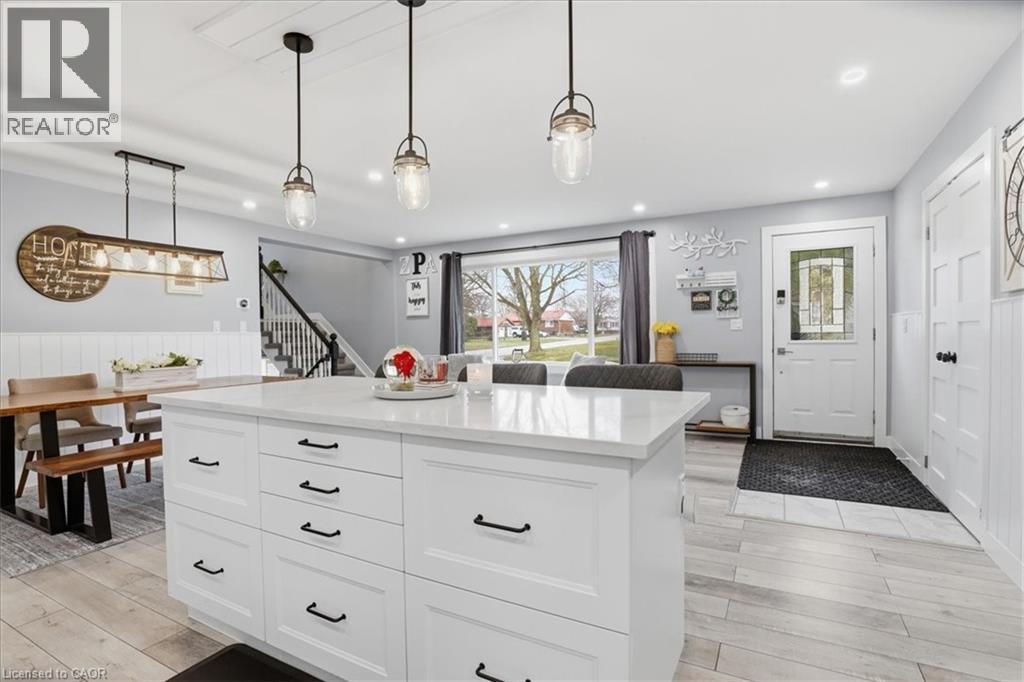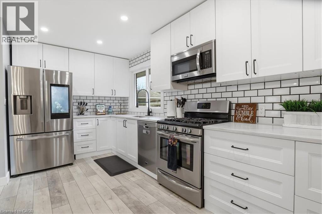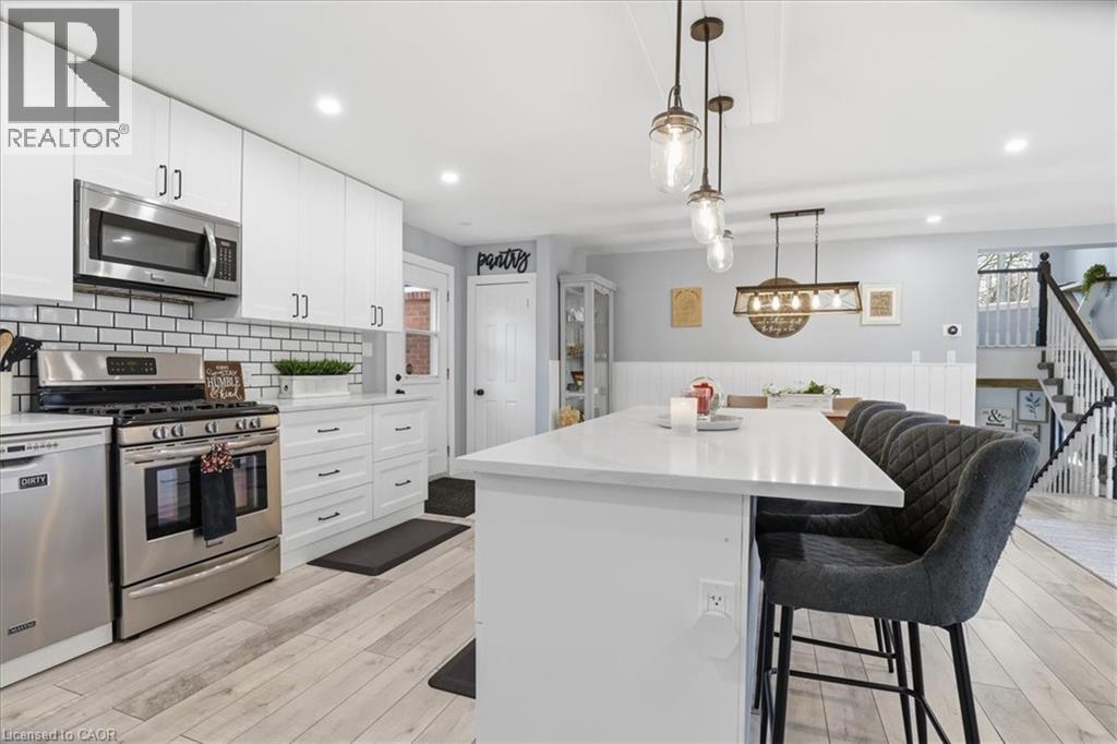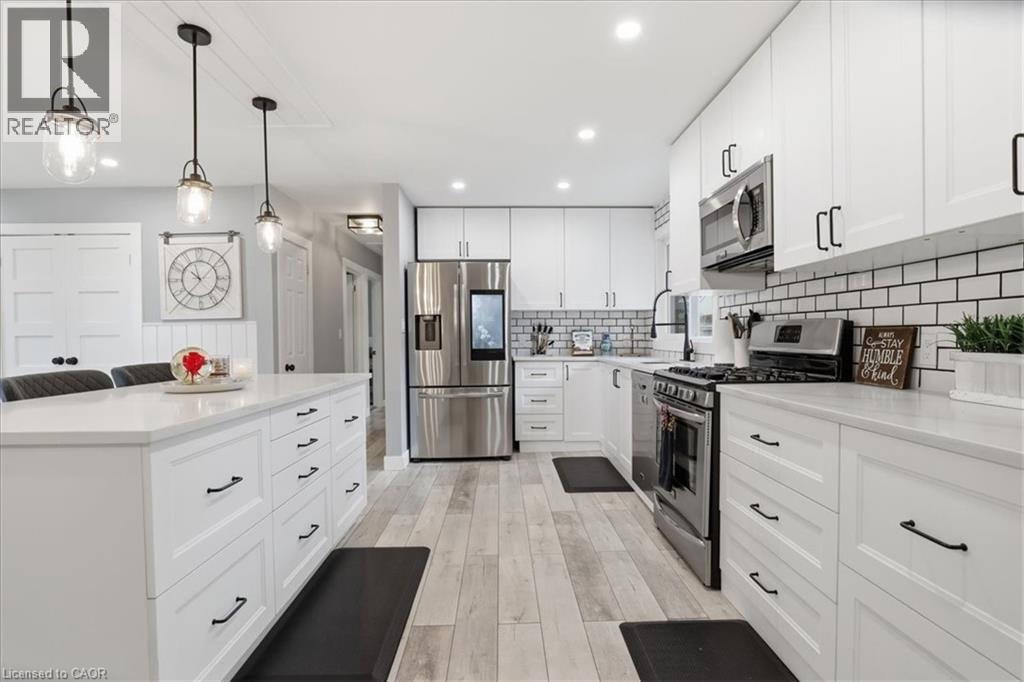 Welcome to 12 Dean Crescent, in the quaint town of Ingersoll, known for its charming and historic atmosphere. This spacious 4-level sidesplit offers flexibility and is sure to appeal to a wide range of buyers. Featuring 4 bedrooms, including a private upper-level primary retreat that feels like its own getaway, this home delivers both comfort and functionality. The recently renovated main floor showcases quality laminate flooring and an open-concept layout connecting the kitchen, living, and dining areas—perfect for everyday living and entertaining. The bright white kitchen is thoughtfully designed with subway tile backsplash, quartz countertops, soft-close cabinetry, a generous pantry, and a breakfast bar island. A full suite of appliances is included, highlighted by a Samsung smart fridge, Frigidaire gas stove, over-the-range microwave, and Maytag dishwasher. Down the hall, you’ll find three well-sized bedrooms, ideal for children, guests, or a home office, along with an updated 4-piece bathroom featuring a soaker tub, subway tile surround, and built-in shelf for added convenience. Upstairs, the primary suite offers a peaceful escape complete with a walk-in closet, 4-piece ensuite, and a cozy reading nook just outside the bedroom. The lower level features a fully finished family room with a 2-piece bathroom, built-in shelving for media and décor, and an electric fireplace that creates a warm and inviting space to unwind. An additional unfinished level provides excellent potential for a home gym or recreation area, and includes a pool table with accessories. Step outside from the main level to a fully fenced backyard, complete with a natural gas BBQ line, storage shed, and electrical rough-in for a future hot tub. The oversized double car garage is a standout feature. Heated and ideal for a workshop, hobby space, or storing recreational vehicles. If you’ve been searching for a move-in ready home with space, updates, this is an opportunity you won’t want to miss. (id:4555)
