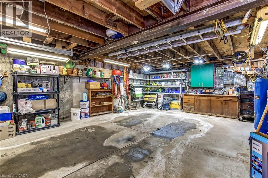 This well-kept bungalow on a half-acre landscaped lot in the village of Innerkip offers great opportunities for a young family to grow or someone just looking for privacy and space. The main floor features open an concept Living Room/ Dining Room with bright windows and a gas fireplace. The remodelled kitchen offers lots of cupboard and countertop space with a nice breakfast bar. Rounding out the main floor are 3 bedrooms with the Principal Bedroom having a cheater door to the 4-piece bath and main floor laundry. The basement offers a newly-created Family Room with gas fireplace and cozy spaces for watching TV and having conversation. The additional Sitting Room and 3=piece bath finish off this floor. The basement walks out to the 1.5 oversized garage with built-in workbench. This half-acre lot is professionally landscaped and fenced, has an additional garage with upstairs storage, a garden shed and a massive deck over the garage for outdoor entertaining around the propane firepit. Located in the quiet, family-friendly village of Innerkip, children can walk to school and the active park. It’s just minutes from the 401 for easy commutes and the town has a gas station/variety store (LCBO), Tim Hortons and pharmacy. (id:4555)