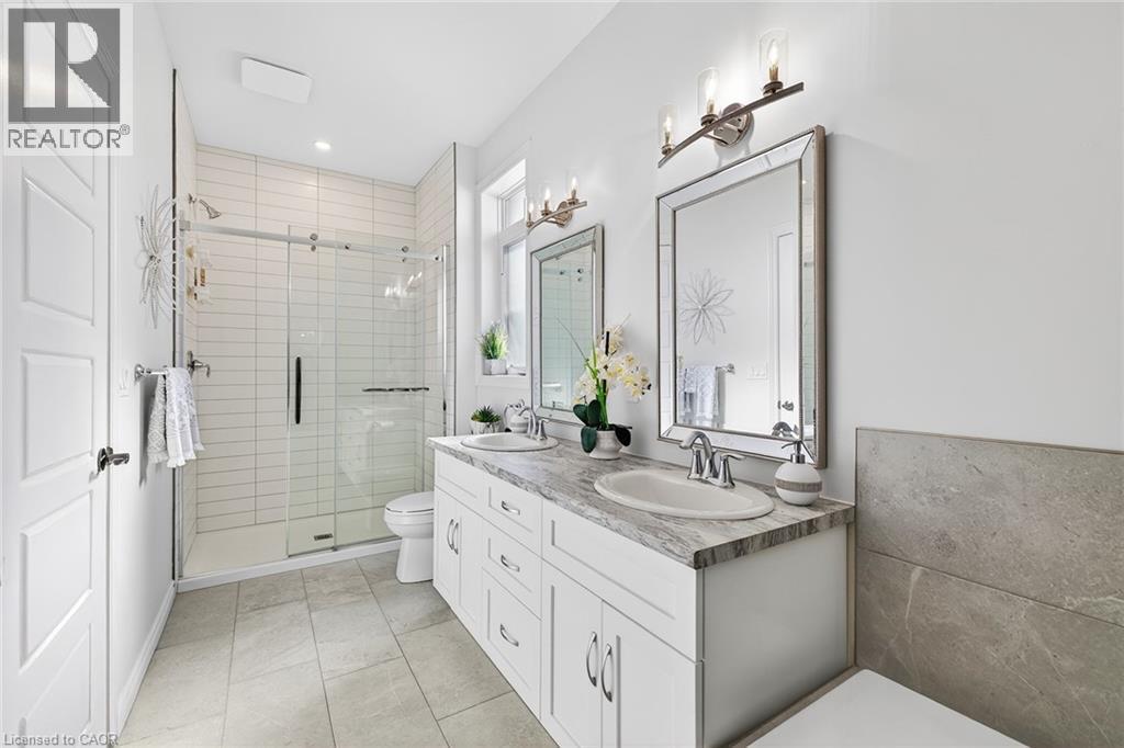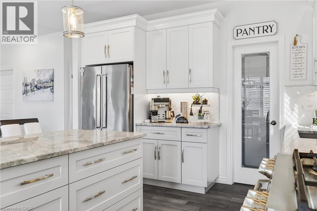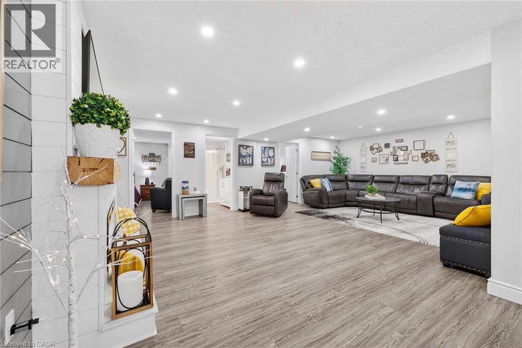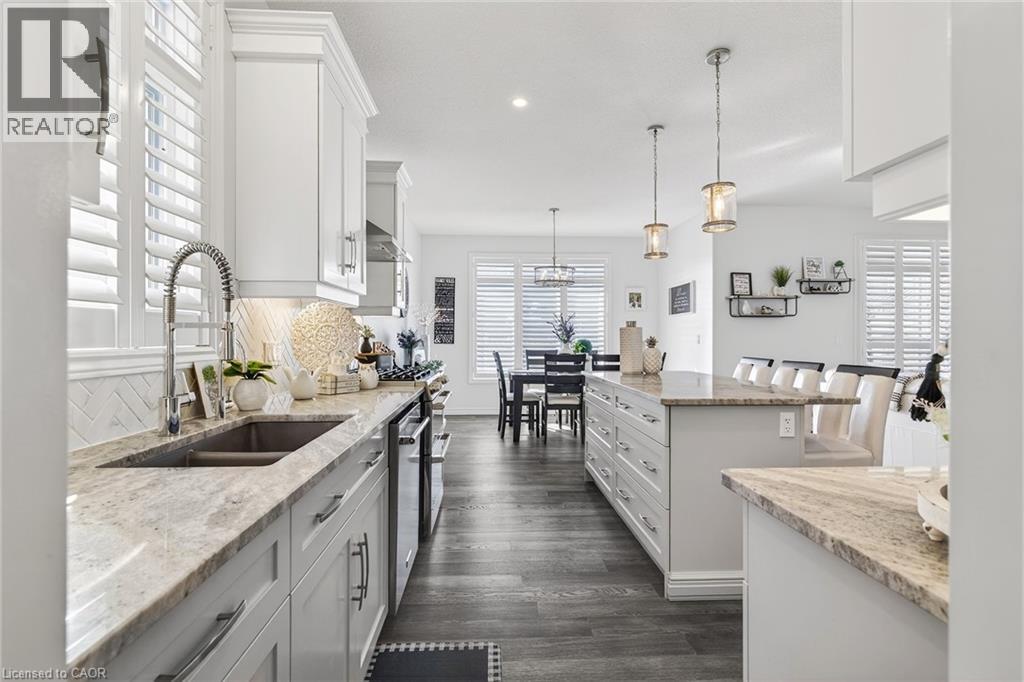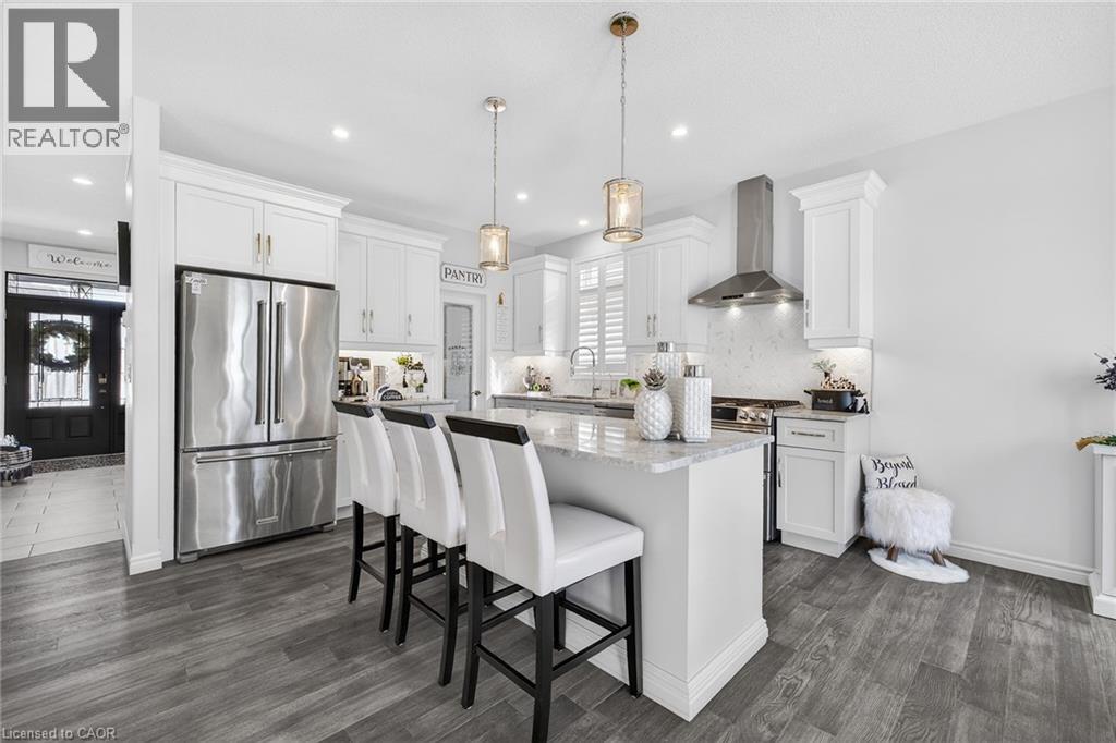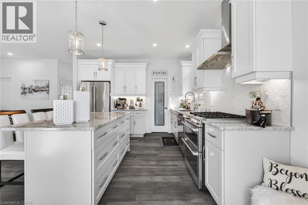 OPEN HOUSE SAT March 28th 10-12~ Welcome to refined, family-focused living in the heart of Innerkip. Built just six years ago, this beautifully finished executive all-brick bungalow offers the space, quality, and flexibility today’s buyers want — all in a quiet community minutes from major routes and city amenities. The triple car garage makes an immediate impression with impressive ceiling height and additional storage above the doors. Inside, 9-foot ceilings and a carpet-free design create a bright, open feel throughout. The main floor is designed for comfort and entertaining. The spacious living room with gas fireplace invites cozy evenings, while the walk-out leads to a premium vinyl deck — approximately a $30,000 upgrade — perfect for outdoor dining and summer gatherings. The kitchen is the heart of the home, featuring high-end appliances including a double oven, modern finishes, and a walk-in pantry. Elegant herringbone-laid tile on the kitchen backsplash and fireplace surround adds a premium design detail. The main floor also features a primary bedroom retreat with walk-in closet and private ensuite, along with convenient main floor laundry and mudroom. California shutters throughout and the carpet-free design add a clean, upscale feel. The fully finished basement offers excellent versatility with a spacious rec room featuring an electric fireplace and mantle, two additional bedrooms, a full bathroom, and a separate bedroom with its own 2-piece ensuite. The basement also includes a DRIcore subfloor system, creating an air gap between the concrete and flooring to help manage moisture while providing a warmer, more comfortable living space. With space ready for a future kitchenette and plenty of storage, the lower level is ideal for extended family, teens, or guests. Beautifully finished and thoughtfully designed, this home delivers executive comfort in one of Innerkip’s most desirable neighbourhoods — without the wait of new construction. (id:4555)