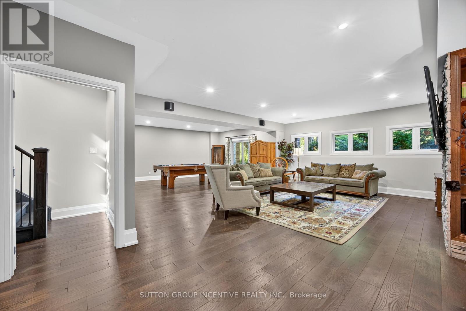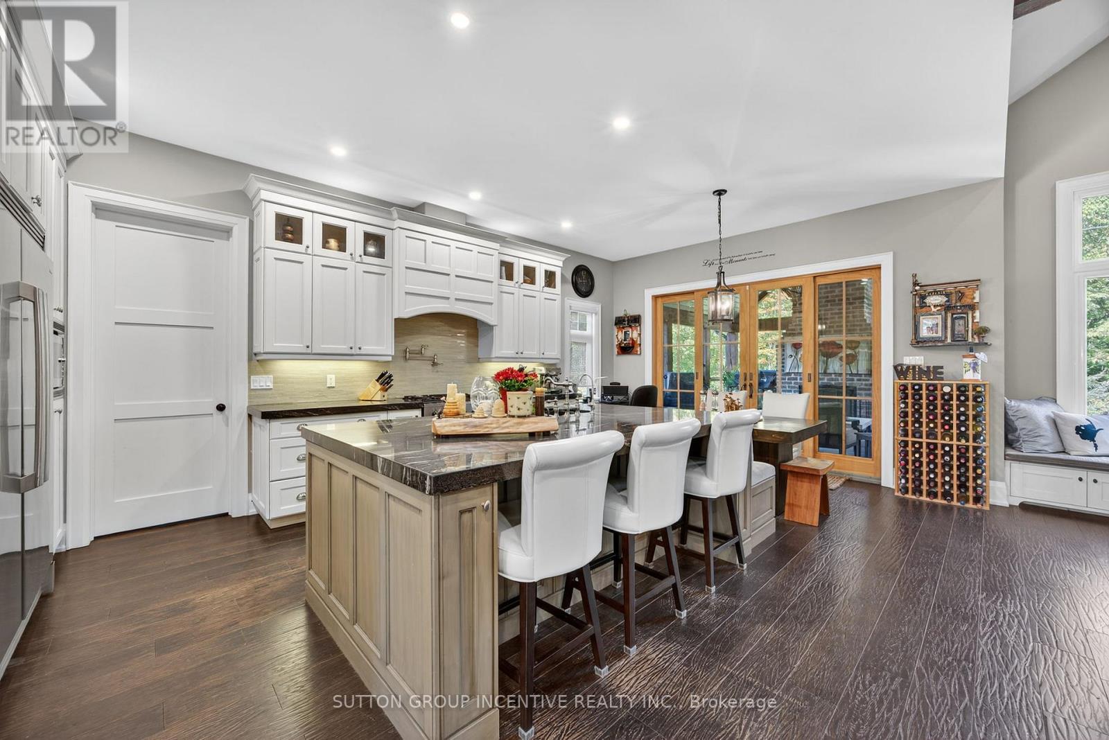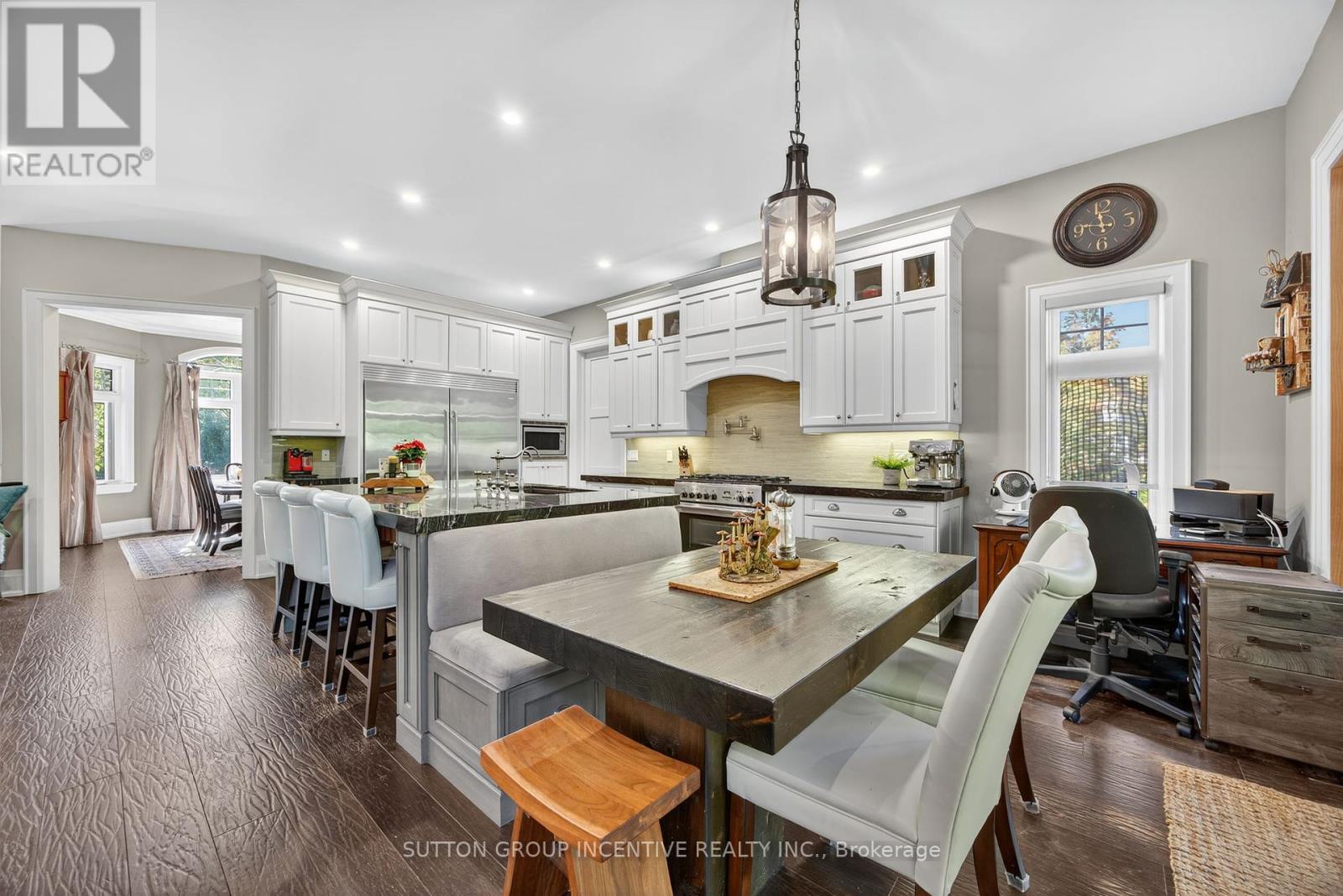 EXPERIENCE EXECUTIVE ESTATE LIVING AT ITS FINEST! DISCOVER A COMMUNITY WHERE LUXURY MEETS LIFESTYLE. NESTLED IN A SERENE NATURAL SETTING, THIS EXCLUSIVE EXECUTIVE ESTATE NEIGHBORHOOD OFFERS THE PERFECT BALANCE OF TRANQUILITY & CONVENIENCE. STROLL ALONG PICTURESQUE WALKING TRAILS, CYCLE THROUGH SCENIC LANDSCAPES,OR SPEND YOUR AFTERNOONS GOLFING ON NEARBY COURSES. THE LAKE IS JUST STEPS AWAY,ENJOY PADDLE BOARDING,KAYAKING,OR SIMPLY SOAKING IN THE PEACEFUL WATERFRONT. THIS IS MORE THAN JUST A HOME, ITS A LIFESTYLE! THIS EXECUTIVE CUSTOM BUILT HOME WAS FEATURED IN TWO "HALLMARK MOVIES". STUNNING 5 BEDROOM, 4 BATH BUNGALOW WITH A WALK OUT BASEMENT & SEPARATE IN-LAW SUITE. MANY GREAT EXTERIOR FEATURES :UPPER & LOWER GARAGES, HIGH END STONE/GRANITE/WOOD,RESORT STYLE BACKYARD W/DOUBLE KIDNEY SHAPED POOL/WATERFALLS/HOT TUB/FIRE PIT/NEW POOL LINER & COVER 2025,PROF. LANDSCAPED W/INGROUND LIGHTING & GARDEN PATHS, CABANA W/OUTDOOR KITCHEN W/FRIDGE/SINK/NAPOLEON PROPANE BBQ/OUTDOOR SHOWER,INGROUND IRRIGATION SYSTEM,TERRACED 3 SEASON MUSKOKA ROOM W/WOODBURNING FIREPLACE & SLATE TILES,GARDEN SHED, EXTENDED DRIVEWAY PAD, NEW AC 2025 ++ THE MAIN LEVEL IS OPEN CONCEPT W/HIGH CEILINGS, CHEF'S KITCHEN W/SUB ZERO FRIDGE & AGA EUROPEAN STOVE/DISHWASHER/BUILT IN MICROWAVE/PREMIUM SURFACE "BLACK COSMIC"GRANITE TOPS, CUSTOM BUILT-IN TABLE BENCH,EXPANSIVE 20' STONE WOOD BURNING FIREPLACE W/DESIGNER MANTEL, PRIMARY BEDROOM W/COFFERED CEILING & LUXURY ENSUITE/LARGE SPA SOAKER TUB/ SHOWER/OVERSIZED WALK-IN CLOSET, FORMAL DINING ROOM, MAIN FLOOR LAUNDRY W/BUILT IN STORAGE BENCH, SMART HOME/SONOS BUILT-IN SOUND SYSTEM INTERIOR & EXTERIOR, 10' CEILINGS/20' CEILING IN GREAT ROOM, 7 STAGE WATER FILTRATION SYSTEM, SMART CLIMATE CONTROL,CUSTOM WINDOW COVERING+ LOWER LEVEL IS FULLY FINISHED WALKOUT/PRIVATE GARDEN IN-LAW SUITE,CUSTOM KITCHEN W/GRANITE/2 BEDROOMS/BUILT IN LAUNDRY/CUSTOM BAR & CANTINA/POOL TABLE/PROPANE HIGH EFFICIENCY FIREPLACE/9'CEILINGS W/LARGE WINDOWS & PATIO DOORS/3 CAR GARAG (id:4555)