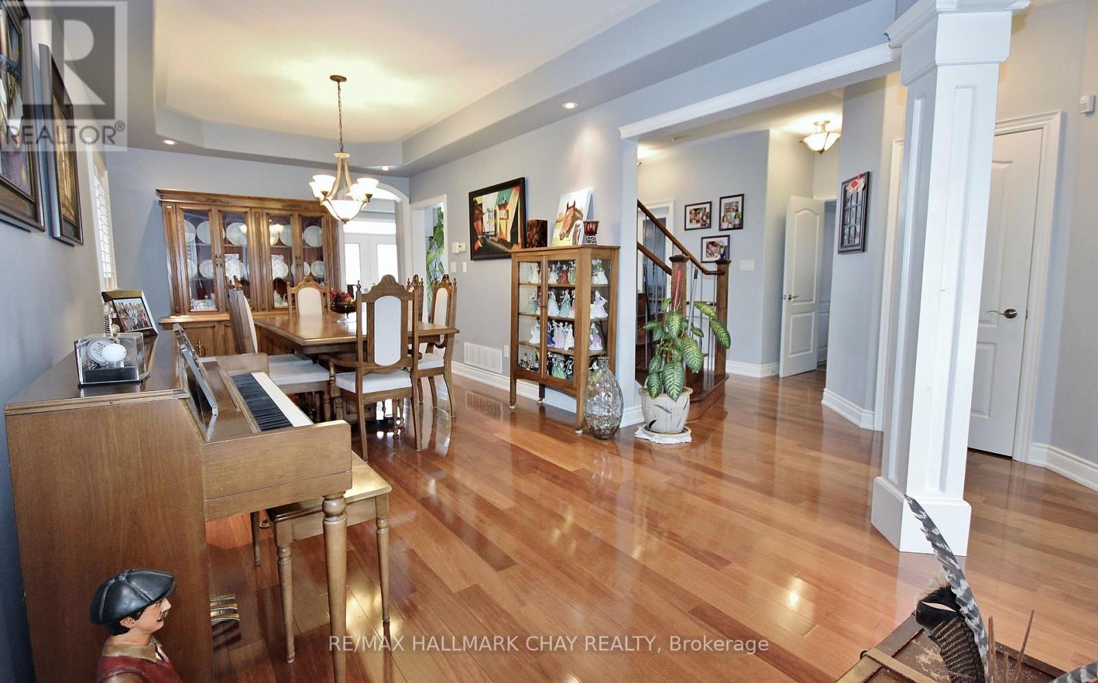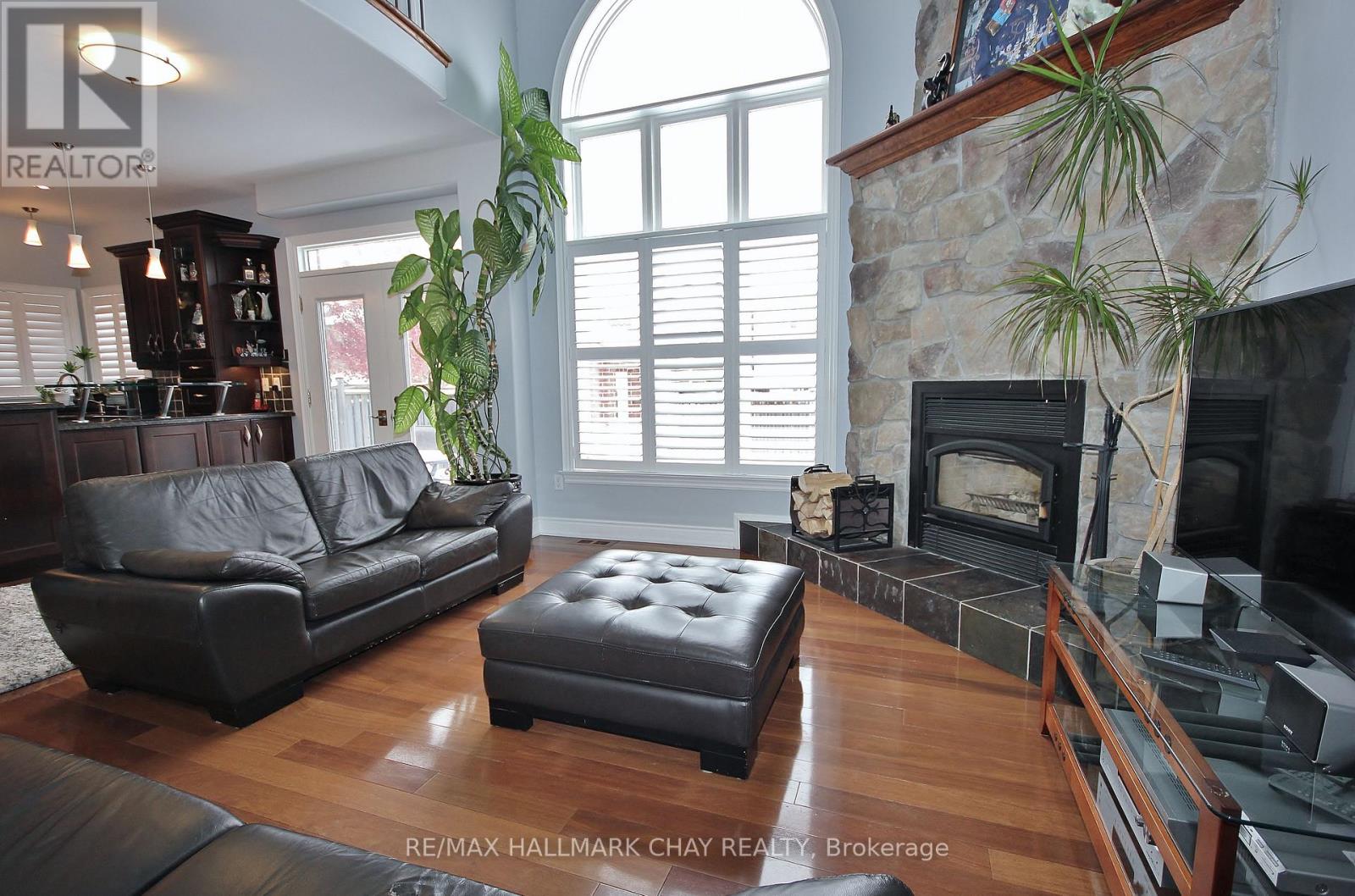 Stunning Custom 2-Storey Home on a Quiet Court Welcome to this beautifully crafted 4+ bedroom, 4-bathroom residence offering approximately 3400 sq ft of elegant living space. Nestled on a serene court, this home boasts exceptional curb appeal with an interlock driveway, walkways, and a spacious backyard patio perfect for entertaining. Step inside to discover a grand oak staircase with wrought iron railings, open to below, leading to a soaring family room open to above. A striking wood-burning fireplace with a full-height stone façade anchors the space, creating a warm and inviting atmosphere. The main floor features a dedicated office, convenient laundry room, and a chef-inspired kitchen that flows seamlessly into the living and dining areas. Upstairs, generously sized bedrooms provide comfort and privacy, while the finished basement offers a completed 4-piece bathroom and a rough-in for a future bar-ideal for hosting guests or creating your dream rec room. Outside, enjoy a charming brick and stone shed for added storage and functionality. The double car garage adds convenience, and the quiet court location ensures peace and privacy. This home is a rare blend of luxury, character, and thoughtful design-perfect for families seeking space, style, and sophistication (id:4555)