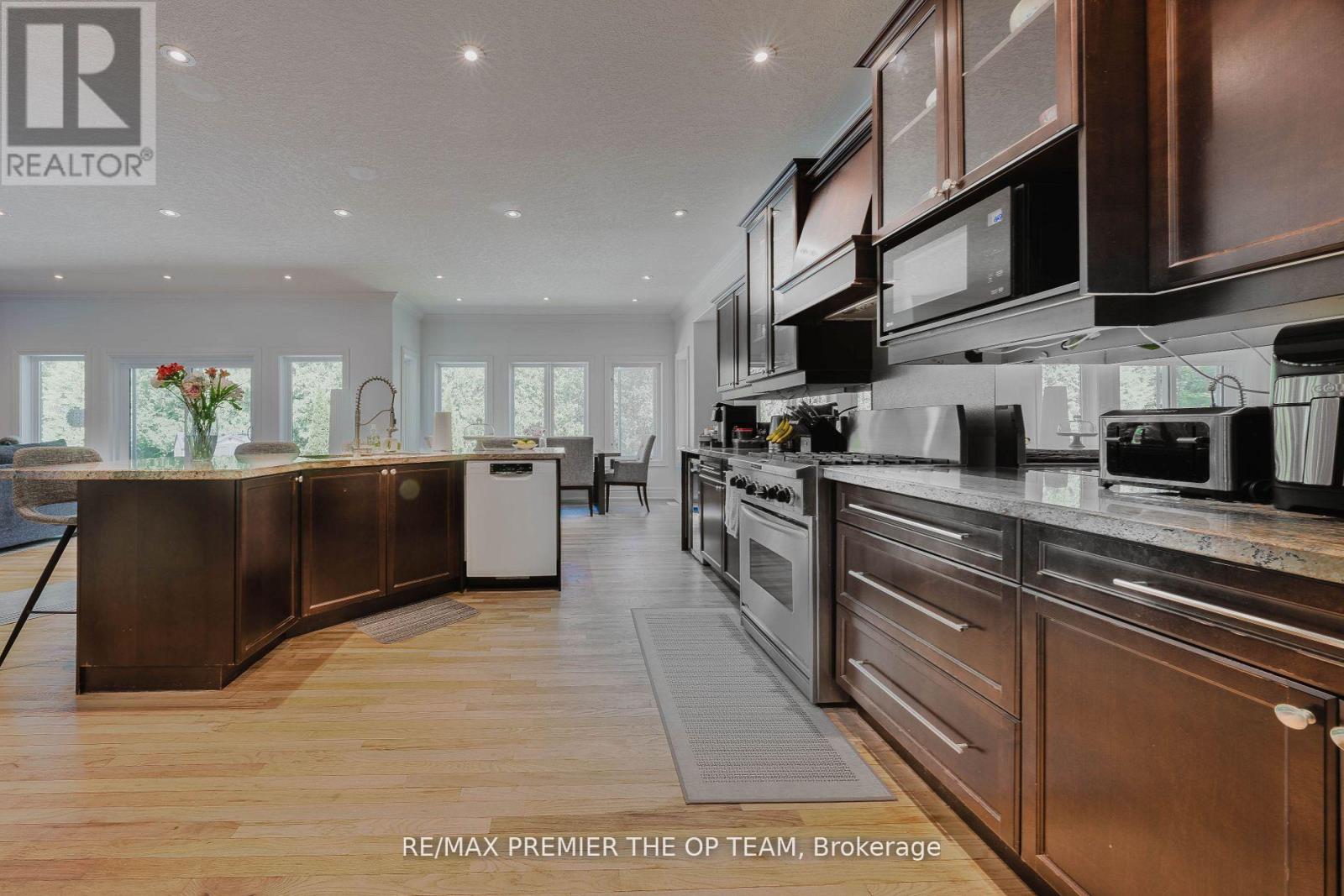 Situated In The Exclusive Innisbrook Estate Community And Less Than 5 Minutes From Hwy 400 , This Beautifully Updated Bungalow Offers Over 3,500 Sqft. Of Finished Living Space On A Private, Wooded One-Acre Lot. An Open-Concept Layout Showcases Rich Natural Oak Hardwood Floors, Modern Pot Lighting, And Upscale Finishes Throughout. The Kitchen Features Granite Counter tops And Flows Seamlessly Into Spacious Living And Dining Areas Ideal For Both Daily Living And Entertaining. The Main Level Includes Three Large Bedrooms, Highlighted By A Luxurious Primary Suite Complete With A Jacuzzi Tub, Glass Shower, And Double Vanity. The Fully Finished Basement Adds Incredible Value With Two Additional Bedrooms, A Rec Room, Billiards/Games Area, Full Bathroom, And A Stylish Wet Bar. Outside, Enjoy The Ultimate Backyard Escape With An In-Ground Pool, Brand New Hot Tub, Gas BBQ Hookup, And Ample Space For Hosting. A Massive Interlock Driveway Leads To A 3-Door Garage That Fits Up To O Cars, Featuring New Insulated Doors, Workshop Space, And Additional Storage. Combining Executive-Level Comfort With Exceptional Convenience, This 19-Year-Old Home Offers Refined Living In One Of Innisfil's Most Prestigious Neighbourhoods. (id:4555)