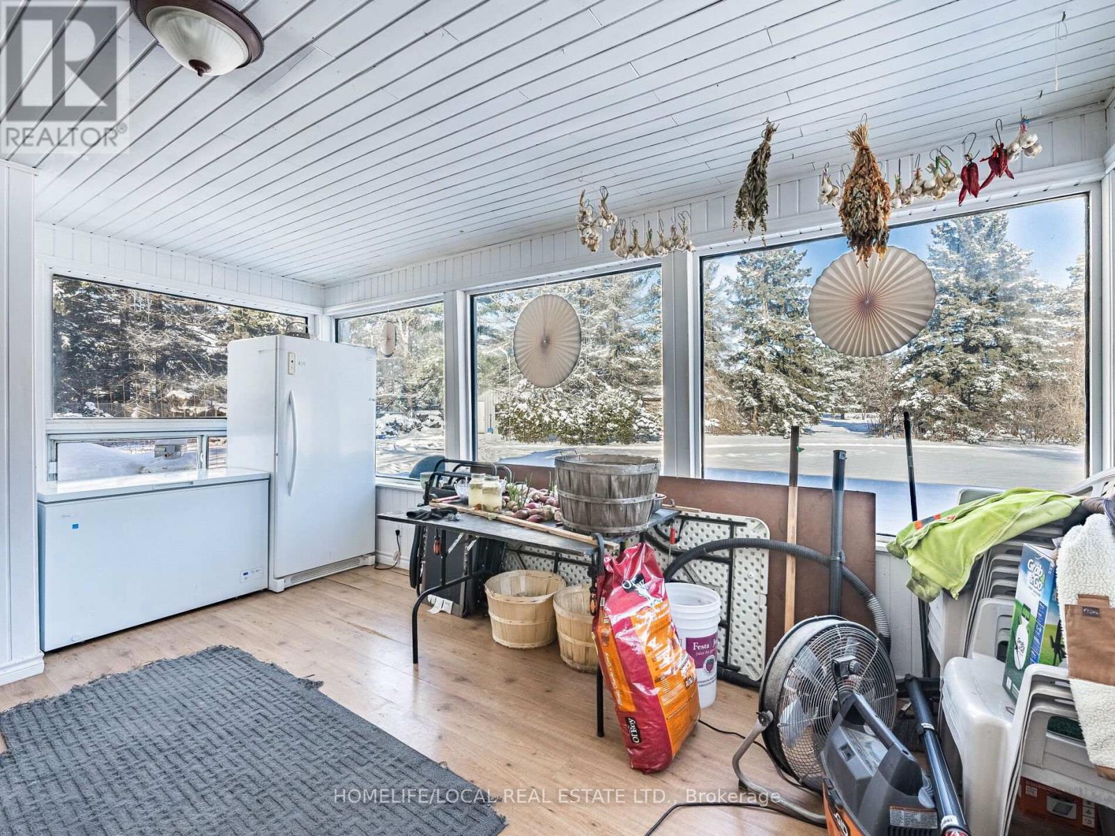 Spacious 1.8-Acre Innisfil Estate Offering the Perfect Blend of Rural Tranquility and Urban Convenience. Nestled on a private, tree-lined lot, this well-kept property provides exceptional space both inside and out. The home features hardwood and porcelain tile flooring, a generous dining room ideal for family gatherings, and a large living room filled with natural light. A beautiful sunroom extends the living space and offers views of the expansive grounds. This home offers a well-designed layout with a separate dining room ideal for hosting gatherings, and the convenience of main floor laundry. The main floor family room provides a comfortable space for everyday living, while a mix of hardwood, ceramic, and laminate flooring adds both style and durability throughout. The bright eat-in kitchen includes ample cabinetry and a sliding door walk-out to the back deck-perfect for outdoor dining, barbecuing, or simply enjoying the peaceful surroundings. All bedrooms are spacious, with the primary bedroom offering its own dressing area for added convenience. An attached triple garage provides plenty of parking. Mature trees create a secluded setting at the front of the property, while the vast open lawn and adjoining field provide endless opportunities for gardening, play, or future customization. Outside, the property is beautifully landscaped and includes a deck/patio, fenced/hedged yard, and a garden shed for extra storage. The eat-in kitchen offers a bright, functional space perfect for daily meals or casual entertaining. Just minutes to Hwy 400, schools, shopping, and all nearby amenities-ideal for commuters seeking space without sacrificing convenience. Owner is willing to lease back the property. This fully renovated home features top-end materials throughout. The rear portion of the lot fronts onto Innisfil Beach Rd and offers the potential to build a 2nd dwelling. According to the owner, municipal sewer services are expected to be available within the next 3 years. (id:4555)