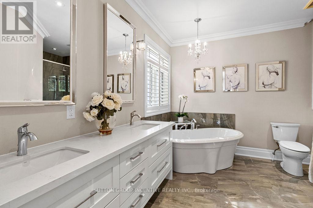This Stunning Custom Builder Stucco/Stone Bungalow is situated on just over a half-acre private lot, offering a country feel while remaining close to city amenities. It boasts numerous upgrades from the builder and additional enhancements by the owners. Apx 5100 total square feet, finished top to bottom. The property features a gorgeous lot with a huge driveway accommodating 12+ cars (triple-wide at the garage). Inside, you'll find a 14' ceiling in the foyer, a front office/bedroom, a second bedroom, a main 4pc and a 2pc. Hardwood flooring extends throughout the main level, complemented by pot lights, O/S trim, crown molding, 9' doors, and transom windows, creating a bright yet cozy atmosphere. The large master at the rear includes a W/I and 5pc Ensuite with heated floors. The stunning great room offers an open concept design with vaulted ceilings and a floor-to-ceiling stone wood fireplace. The gourmet kitchen features a pantry, wine storage/cooler, B/I glass cupboards, an o/s island, and an o/s stainless steel fridge/freezer combo & gas stove. The DR provides a W/O to a 26x15 composite deck, 8-person hot tub, lighted stairs leading to a huge pattern concrete area-$40k and wrought iron fencing around the rear yard. The exterior is enhanced by mature trees and professional landscaping. The main floor also includes a laundry with a side door and a mudroom leading to a fully insulated garage with an epoxy floor and a gas heater. There is a separate staircase to the basement and a rear door. The gorgeous oak staircase leads to a spectacular Fin Basement with upgraded 9' ceilings, ideal for an in-law setup. It includes a huge R/R with a B/I projector and electric screen, a gas fpl, pot lights, and engineered hardwood t/out. There is a second kitchen with top-end appliances, two bedrooms with 4-piece ens (with heated floors), two exercise rooms (one could be a third bedroom), a utility room, a finished office, and a huge cold room. (id:4555)