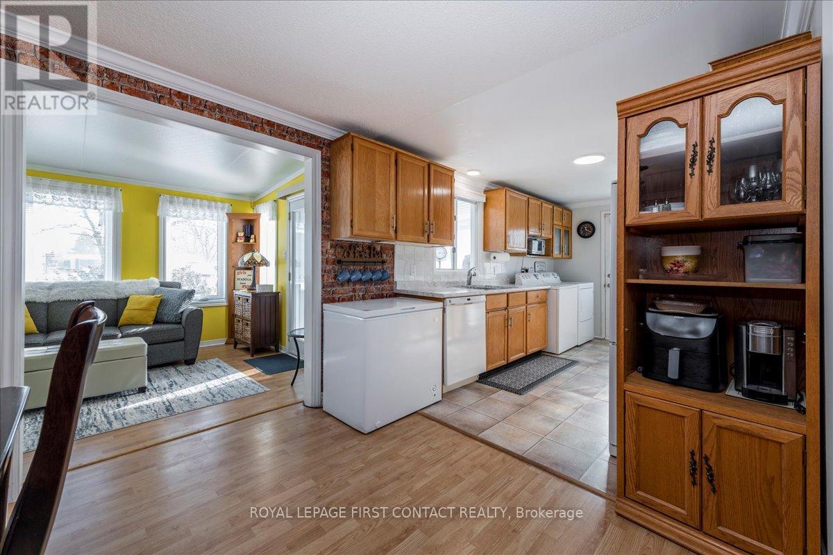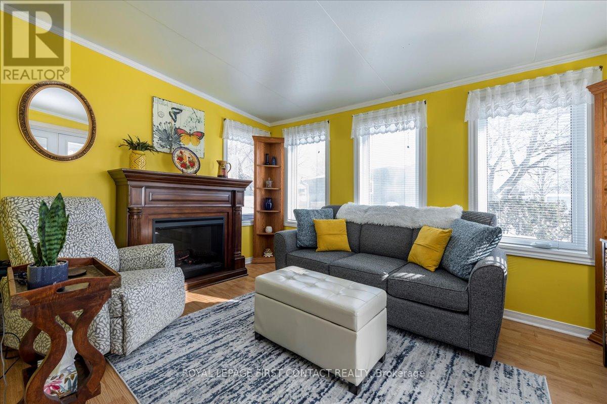 Welcome to this popular and well-maintained site-built Sandalwood II home, located in the vibrant adult community of Sandycove Acres south. The home has an open-air floor plan with 2 bedrooms, 1.5 bathrooms, completely drywalled interior and crown moulding in the main living area. Exterior aluminum siding was painted in 2021 and the front porch was redone in composite decking with updated stone steps and walkway providing a formal entrance at the front door and additional access at the right side walkway. The floor plan offers a spacious living room including a free-standing gas fireplace, generous dining area, galley style kitchen and a bright family room. Complementing the floor plan is a main bathroom with a walk-in shower, ample sized second bedroom, large primary bedroom with a walk through closet and a 2 pc ensuite. Interior updates include new door hardware, floor registers, LED ceiling lights, electrical switches and outlets. A garden door walk out from the family room takes you to a 3-season sunroom overlooking the patio made of precast concrete slabs and the green space behind. There is an attached storage room with power and ample 2 car side by side parking with easy access to the front door. Sandycove Acres is an adult lifestyle community close to Lake Simcoe, Innisfil Beach Park, Alcona, Stroud, Barrie and HWY 400. There are many groups and activities to participate in, along with 2 heated outdoor saltwater pools, 3 community halls, games room, fitness centre, outdoor shuffleboard and pickle ball courts. New fees are $930.01/mo. rent and $134.85/mo. taxes. Come visit your home to stay and book your showing today. (id:4555)