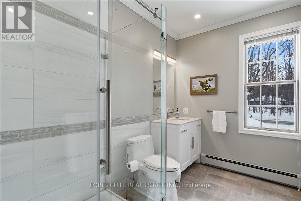 Surrounded by lush greenery and mature trees, this exceptional custom-built residence located in an exclusive enclave feels like a private country retreat, a true cottage in the city. Offering remarkable privacy without sacrificing convenience, the home is just minutes from fine dining, golf, Friday Harbour Resort, major shopping, the GO Station, and only a short 10-minute walk to the shores of Lake Simcoe. Designed and meticulously maintained by its original owners, this nearly 5,000 sq. ft. family home was crafted with longevity living in mind, showcasing timeless workmanship and thoughtful design throughout. Set on almost 2.5 acres of beautifully landscaped, park-like grounds, the property delivers a serene and secluded lifestyle. The striking white brick exterior, imported from New York State, creates elegant curb appeal, complemented by a circular interlock driveway with ample parking. Inside, spacious principal rooms feature multiple fireplaces, custom millwork, and large windows that flood the home with natural light while framing tranquil views of the surrounding landscape. The upper level offers four generously sized bedrooms, while the bright walk-out lower level provides flexibility for additional bedrooms, guest accommodations, or home office space. A main-floor office or nanny suite with a separate entrance and full bathroom adds further versatility. An upgraded radiant heating system operating on natural gas ensures modern comfort with lasting efficiency. Private yet connected, refined yet welcoming, this is a rare opportunity to enjoy understated luxury in an exceptionally peaceful setting. (id:4555)