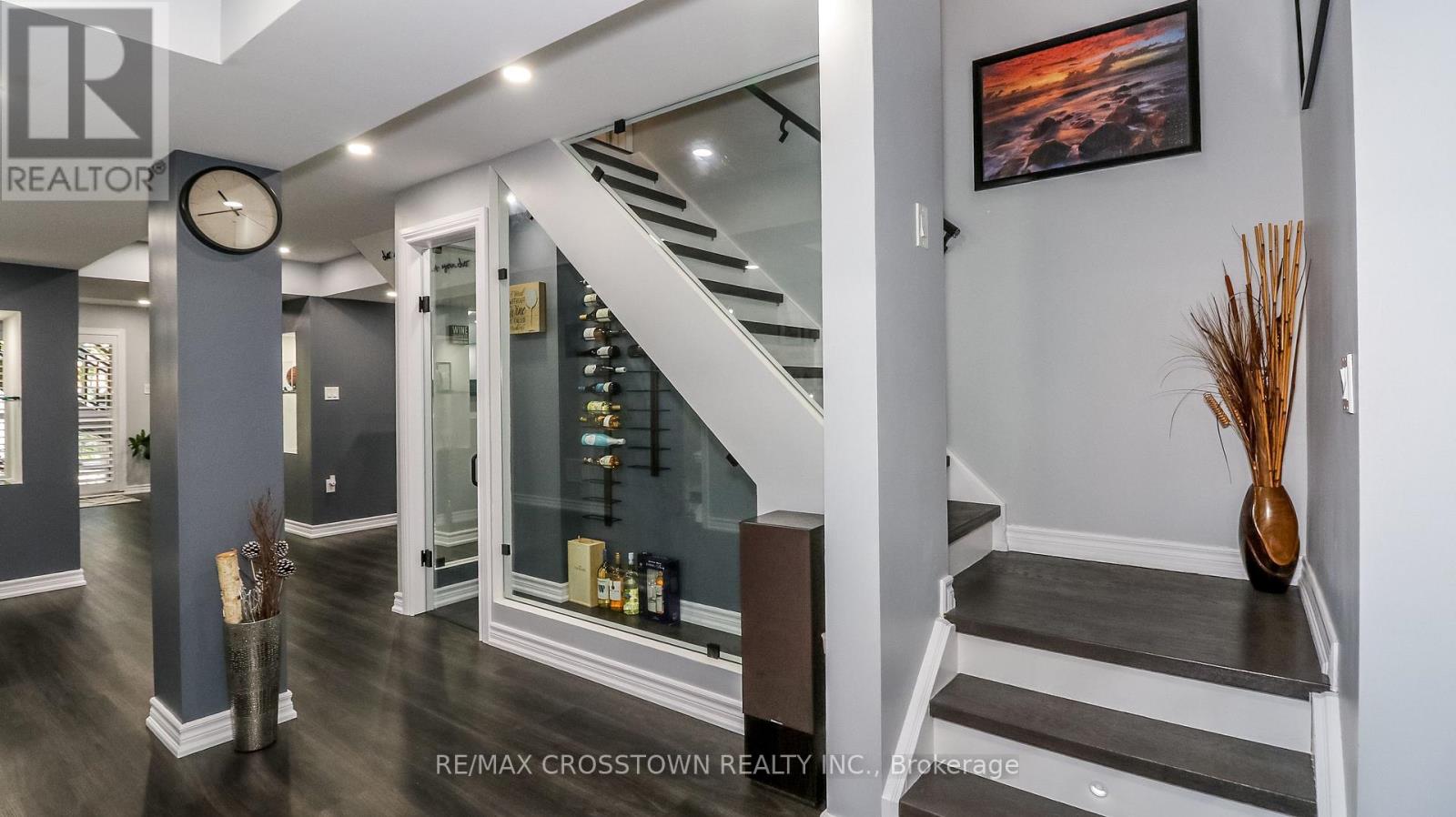 Welcome To This Exquisite 4-Bedroom, 5-Bathroom Luxury Home Set On A Premium Lot In A Highly Sought-After, Family-Friendly Neighbourhood. With A Timeless Brick & Stone Exterior, This Residence Showcases Pride Of Ownership And Offers An Exceptional Blend Of Style, Function, And Elegance. Step Inside To An Open-Concept, Sun-Filled Floor plan Featuring Soaring Coffered Ceilings, Hardwood Floors, And Pot lights Throughout. The Family Room Is Centered on A Striking Gas Fireplace, While The Gourmet Kitchen Impresses With Upgraded Cabinetry, Quartz Counter tops, Custom Backsplash, Oversized Breakfast Island, Pantry, Designer Lighting, Under-Mount Cabinet Lighting, a Generous Eat-in area With A Walkout To A Private Deck Overlooking The Ravine. The Main Floor Flows Seamlessly Into The Living And Dining Areas, Perfect For Both Entertaining And Everyday Living. The 2nd Floor Primary Suite Is A True Retreat, Featuring Coffered Ceilings, Pot lights, A Custom Walk-In Closet, And A Spa-Inspired 5-Piece Ensuite with a large walk in shower and stand alone tub. Each Additional Bedroom Offers Private Bathroom Access, Ensuring Comfort And Convenience For The Entire Family. The Fully Finished Walkout Basement Expands Your Living Space With A Media Room Featuring An Electric Fireplace, and a huge recreation room with a Built-In Bar, Under stair Wine Cellar, Full Bathroom, And a bright Spacious Great Room With Direct Access To A Professionally Landscaped Backyard Oasis. Complete With Interlocking stone patios, Solar Lighting, A Fire-pit And A New Deck - This Outdoor Haven backs onto treed greenspace and Is Perfect For Relaxing Or Hosting Guests. Additional Features Include Upgraded Garage Doors, Custom Shutters & Blinds, And Immaculate Finishes Inside And Out. Located Steps To Parks, And Just Minutes To Beaches, Schools, Marinas, And The Future GO Train Station. This Rare Offering Combines Luxury, Lifestyle, And Location. Truly A Must-See! (id:4555)