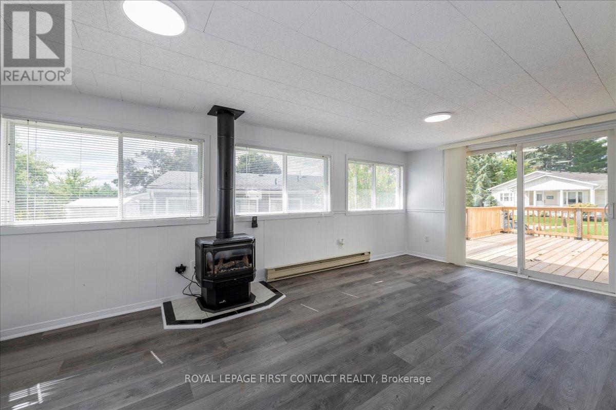 This home is sure to please. Located in the vibrant adult community of Sandycove Acres South. This bright and spacious 2 bedroom, 1+1 bath popular Argus model has a large family room with a gas fireplace and walk out to a spacious deck large enough for lounge chairs to enjoy the outdoors. The flooring has been updated with quality vinyl plank throughout the entire home with no transitions and the walls are painted in a bright neutral white. The galley style kitchen has been totally updated with new cupboards, quartz countertops, undermount sink with faucet and tiled backsplash, new stainless-steel appliances including a built in microwave over the stove. The bathrooms have also been totally updated with new quartz counter vanities, sinks, taps, mirrors, lighting and the main bathroom has a new spa like walk-in shower with soft close glass doors. This extensively improved home is move in ready with newer gas furnace, central air conditioner and windows (2013), shingles (2010) and back deck with steps (2024). The laundry area next to the kitchen has white side by side washer and dryer with storage above and a large pantry closet. Private side by side 2 car parking with level access to the front door and convenient access to the side door. Sandycove Acres is close to Lake Simcoe, Innisfil Beach Park, Alcona, Stroud, Barrie and HWY 400. There are many groups and activities to participate in along with 2 heated outdoor pools, 3 community halls, wood shop, games room, fitness centre, and outdoor shuffleboard and pickle ball courts. New lease fees are $717.24/mo lease and $116.08 /mo taxes. Come visit your home to stay and book your showing today. (id:4555)
