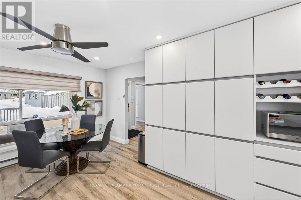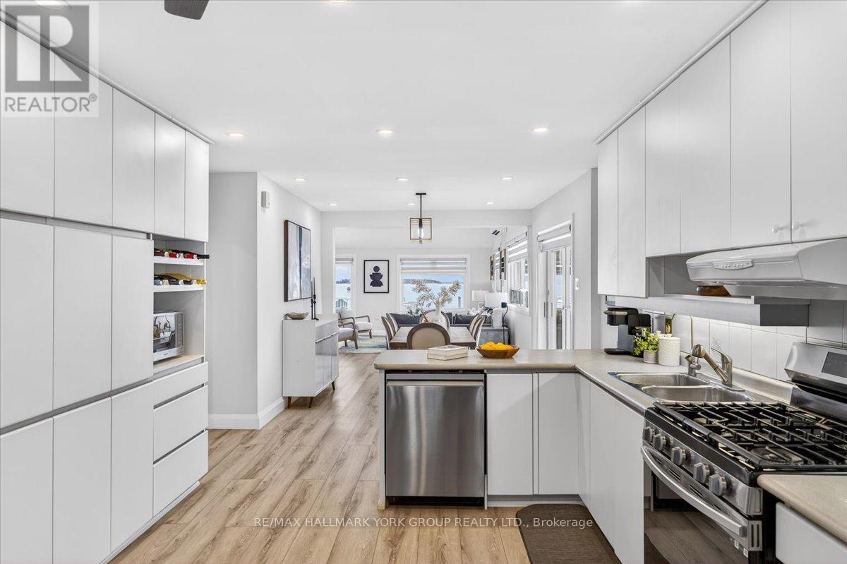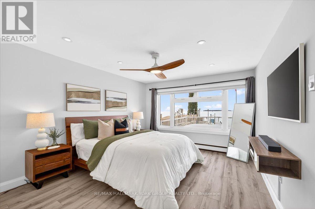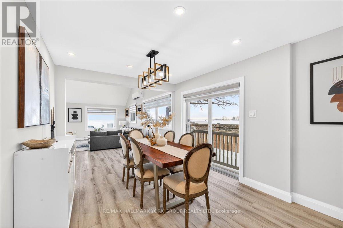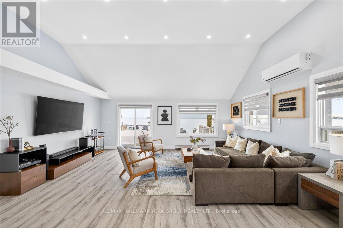 Wake up every morning to breathtaking sunrises and sweeping panoramic views over Lake Simcoe. Set along one of Innisfil's most sought-after stretches of sandy shoreline, this beautifully renovated 4-season waterfront bungalow offers 53.59 feet of rare, natural waterfront and the ultimate turnkey lake lifestyle. Blending timeless charm with modern efficiency, this home features over 2,100 sq ft of open-concept living with vaulted ceilings and expansive windows that frame the lake from multiple angles. Thoughtfully upgraded throughout with new vinyl floors, pot lights, spray foam insulation for enhanced efficiency, concrete subfloors, and a heat pump system in the living room. Baseboard electric heating with smart thermostats ensures comfort and control in every season. The redesigned kitchen combines style and function with WiFi-enabled smart appliances, including a gas stove. Additional upgrades include a gas tankless water heater, water softener, reverse osmosis system, security cameras, and remote-controlled blinds in the front bedroom - truly move-in ready inside and out. Step outside and embrace waterfront living at its finest. A spacious remodeled deck with aluminum and glass railings overlooks the water, while the backyard firepit creates the perfect setting for summer evenings under the stars. At the shoreline, enjoy a 30-ft dock, a 15x10 lakeside seating area, plus a boat lift and 3 jet ski lifts, designed for effortless days on the lake. Out front, a detached garage with a Tesla charging station, upgraded interlock walkway, and ample parking add convenience and curb appeal. Whether you're boating, entertaining, or simply enjoying the peaceful rhythm of the water, this move-in ready lakefront retreat delivers comfort, style, and year-round recreation on one of Lake Simcoe's most desirable sandy shorelines. (id:4555)
