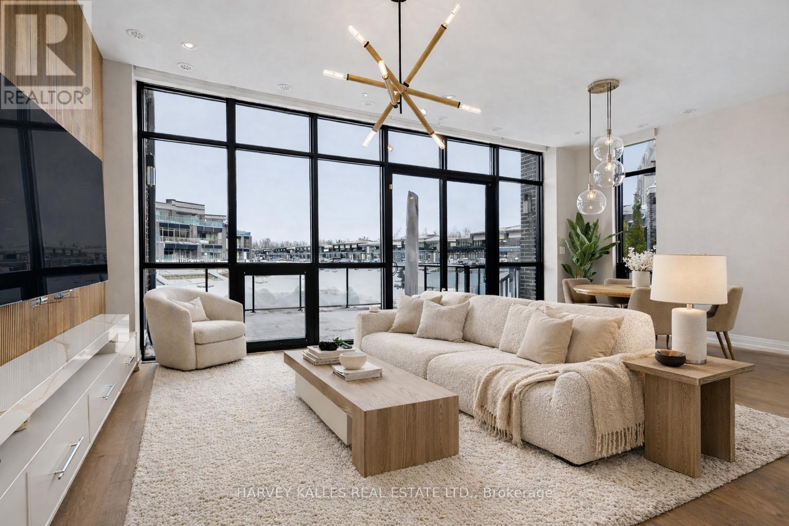 STUNNING MARINA VIEWS! Luxury waterfront townhome in the exclusive marina community of Friday Harbour Resort, featuring multiple outdoor sitting areas, private dock and boat slip, and breathtaking views. Just a short drive from Toronto, enjoy resort-style living within this 600-acre master-planned community offering a Beach Club/Lake Club, pools, tennis courts, fitness centre, nature trails, championship golf course, and vibrant marina boardwalk with shops, restaurants and cafés.Extensively renovated with custom finishes throughout, including hardwood floors, upgraded lighting, and a designer kitchen with extended granite island, granite backsplash, built-in appliances, custom fluted cabinetry, and under-cabinet lighting. The family room features a striking white oak fluted feature wall with floor-to-ceiling built-ins and LED lighting.The redesigned primary suite offers custom closets, floating desk, and a spa-inspired ensuite with floating vanity, linear drain shower and custom tile. Additional upgrades include renovated powder and laundry rooms, custom cabinetry throughout, interlocking patio off the primary bedroom, and a fully upgraded garage by Garage Living.No expense spared - shows 10+. Exceptional waterfront living with luxury resort amenities at your doorstep! (id:4555)