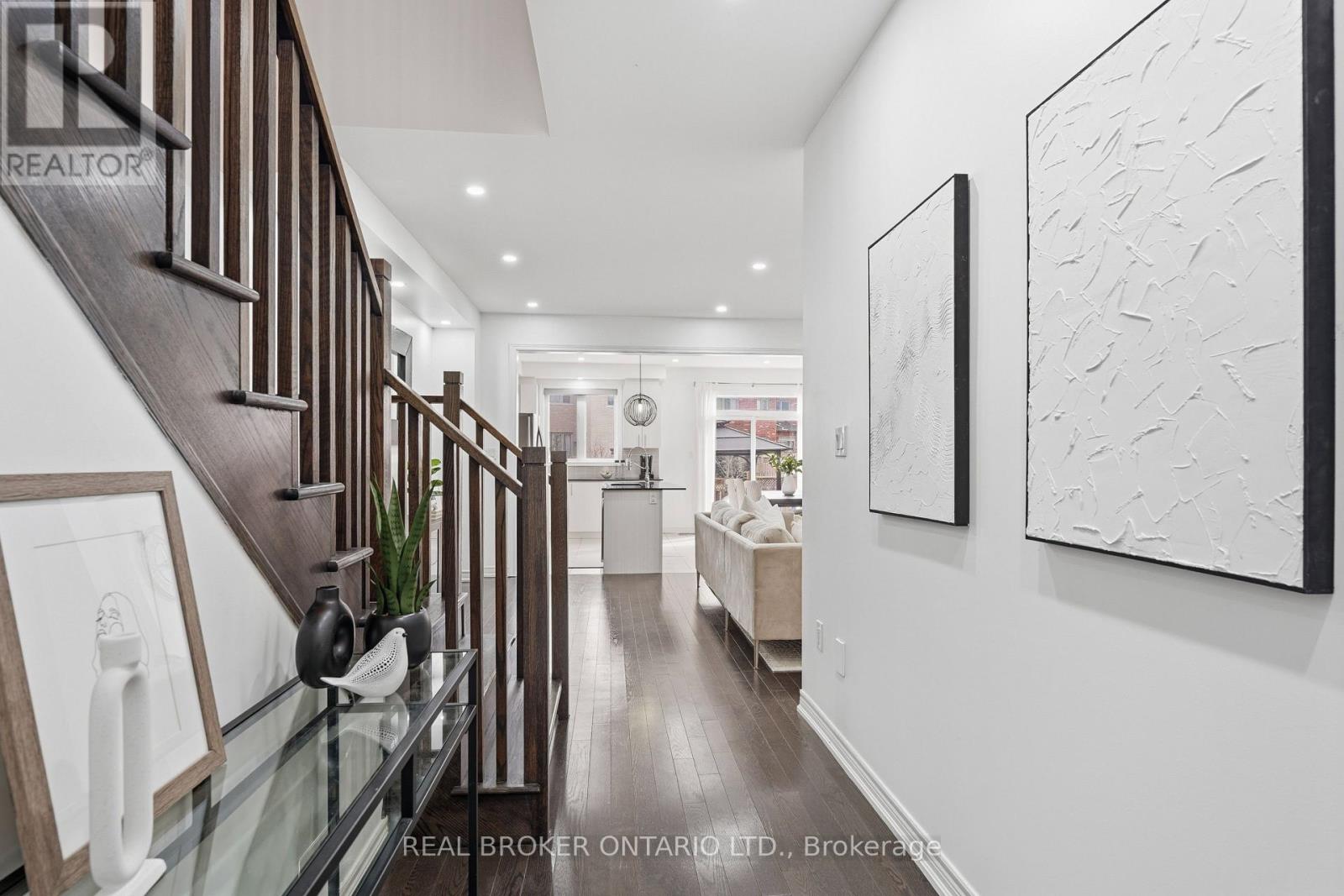 Rare offering in Alcona. This 4 bedroom semi detached home, built in 2017, delivers the space buyers are searching for without the detached price point. The open concept main floor features engineered hardwood, pot lights, and a fireplace that anchors the living space. The kitchen is finished with ivory cabinetry, quartz countertops, stainless steel appliances, and a centre island with breakfast seating. Walk out from the eat-in area to a fully fenced yard with gazebo and interlock. Upstairs offers four well sized bedrooms, including a primary with walk-in closet and a 5piece ensuite with double sinks, separate shower, and soaker tub. The finished basement adds a recreation room, 3 piece bathroom, and additional storage. Located minutes to Lake Simcoe, beaches, parks, and schools. This is where lifestyle meets affordability. (id:4555)