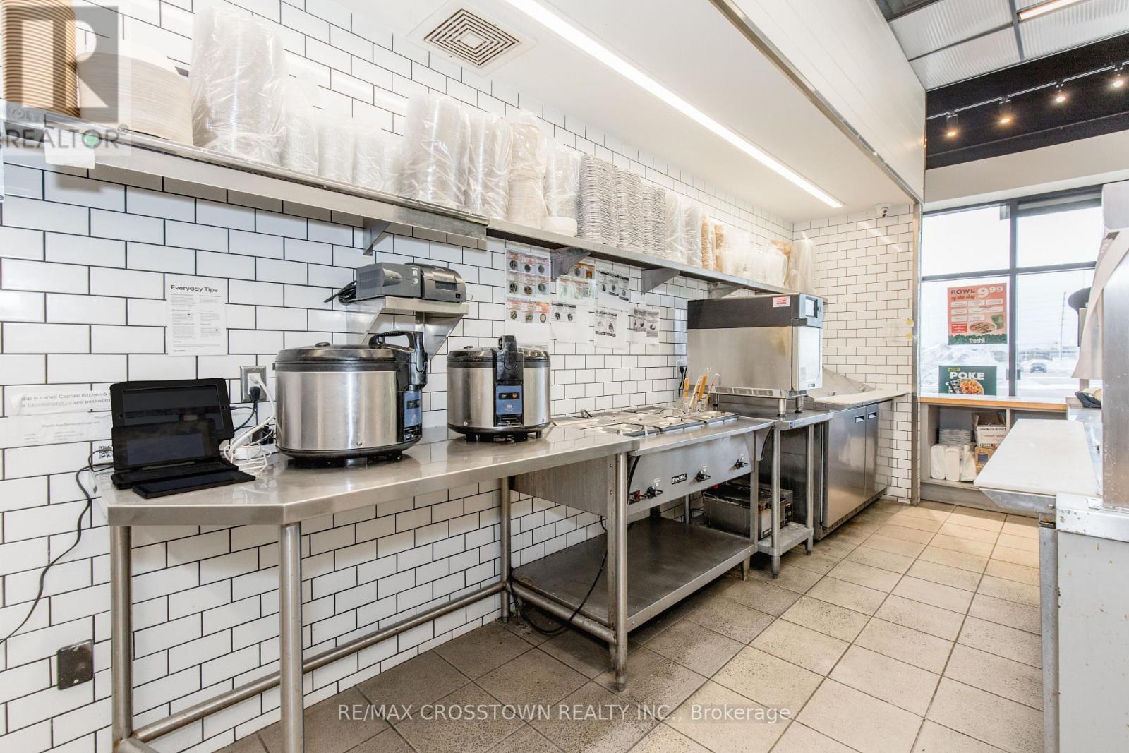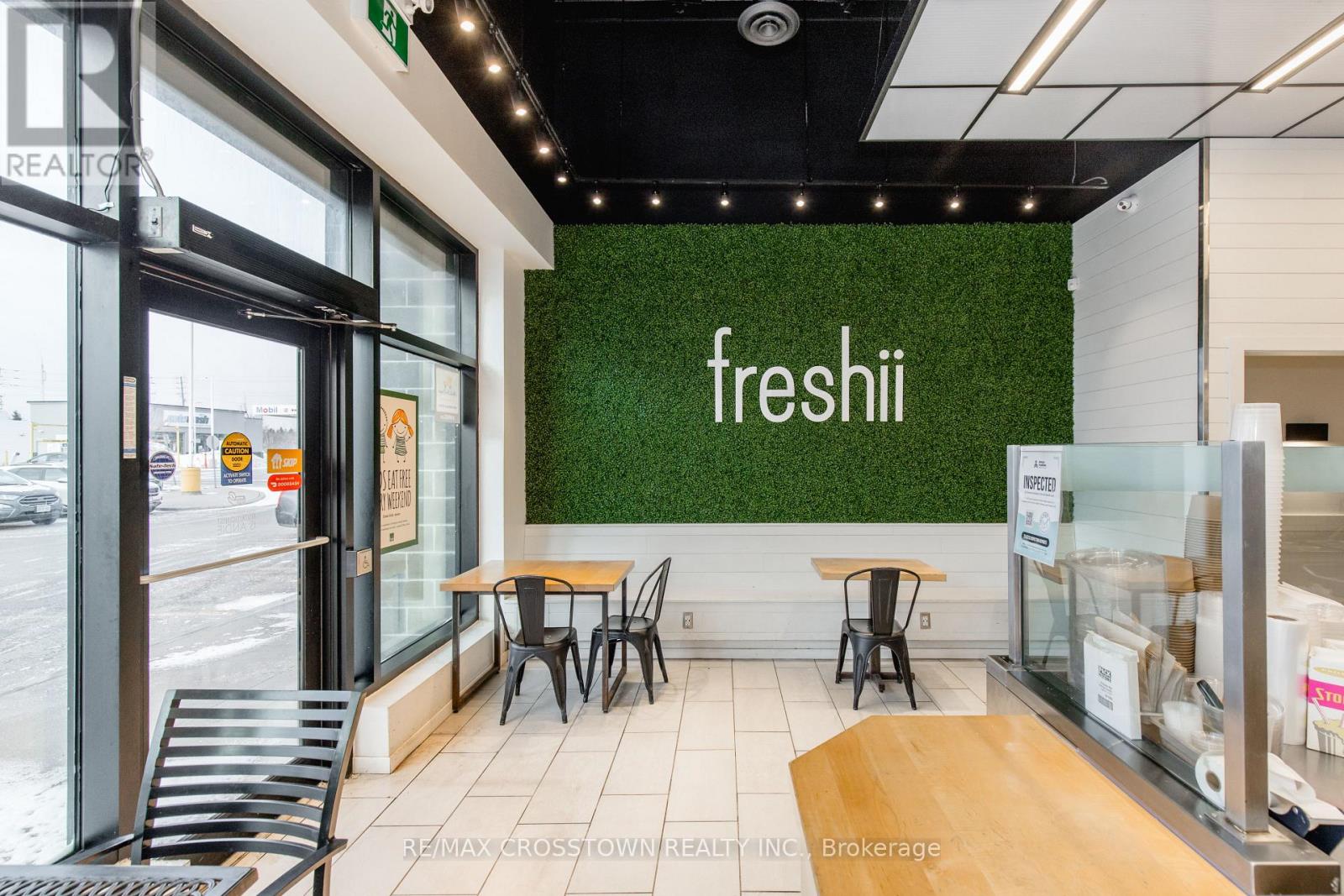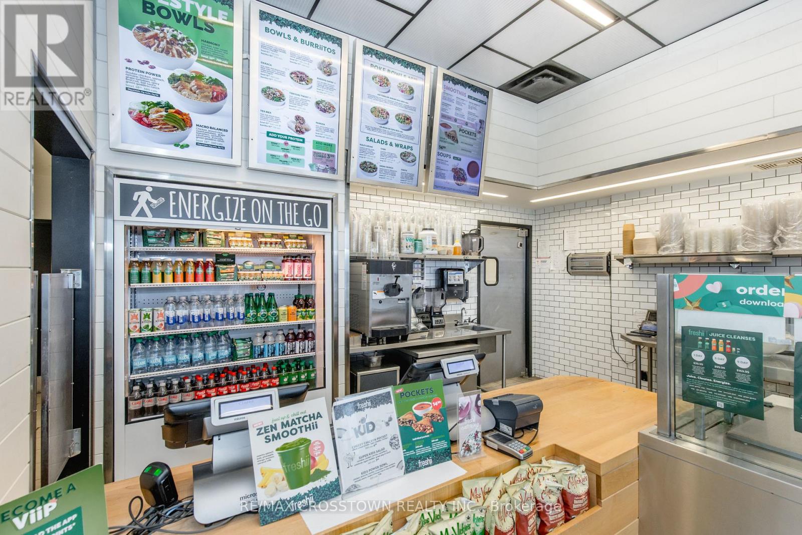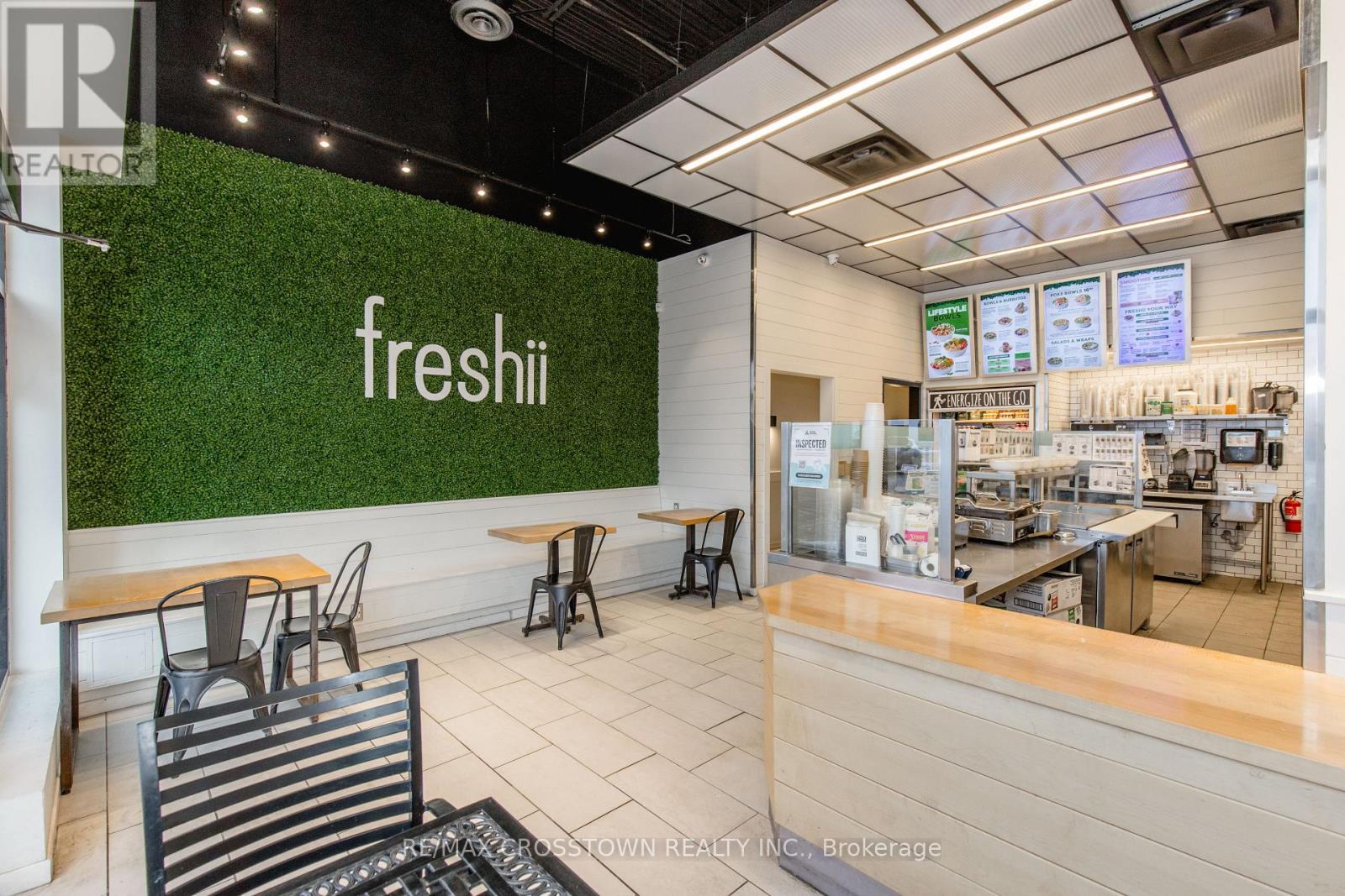 Freshii franchise located in a busy and growing plaza in Innisfil. This successful location has strong sales and consistent profits, providing a solid business opportunity. The plaza enjoys excellent visibility and steady traffic throughout the day, surrounded by complementary retail and food businesses that drive continuous customer flow. The restaurant features a modern 1,037 sq ft layout that is perfectly designed for a quick service restaurant(QSR). With seating for 12 guests, it offers an efficient and easy-to-manage setup ideal for both experienced operators and first-time buyers. The space is bright, welcoming, and aligned with Freshii's clean and modern brand image. The franchise offers full training and support from head office pending franchisor approval, with royalties of 6%. Please do not go direct or speak to staff or ownership. (id:4555)