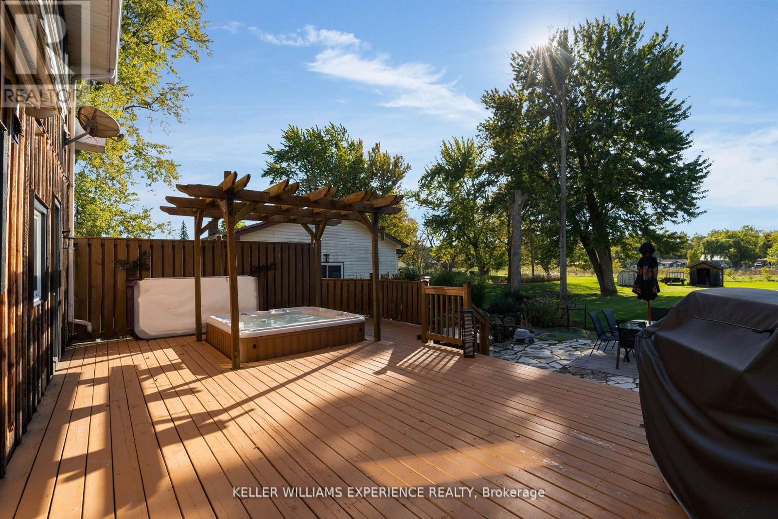 Nestled on a generous lot with peaceful nature behind and the lake just across the road, this property offers the perfect balance of family living and lakeside retreat. Just steps from the waterfront park, you can enjoy morning walks by the water, afternoons at the park, and evenings taking in the fresh lake breeze. Inside, the open-concept layout creates a warm and welcoming space where family and friends can gather with ease. A versatile separate area provides flexibility for a workshop, garage, or hangout, making the home as practical as it is inviting. Outdoors, a large deck and stone patio with a hot tub set the stage for relaxation, entertaining, and enjoying the beautiful natural surroundings. With its serene setting, proximity to the lake, and spaces designed for both everyday living and year-round enjoyment, this home is truly special. (id:4555)