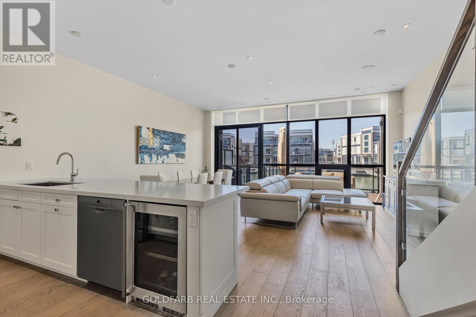 Experience one of the most peaceful positions in the marina community, offering a rare open water channel view toward the Harbour Master with easy access out to Lake Simcoe, all within a quiet, destination-only setting .This upgraded Marina Town spans nearly 1,600 sq ft, designed to capture light, views, and effortless waterfront living. With northwest exposure, enjoy long afternoons in the sun and sunset views over Friday Harbour-a setting that truly defines resort living. The main living space is anchored by floor-to-ceiling windows, creating a seamless connection between indoor living and the marina backdrop. The open-concept kitchen, dining, and living areas are both functional and refined, featuring high-end appliances, an integrated bar fridge, double-stacked cabinetry, upgraded hardware, and clean, modern finishes throughout-well-suited for both everyday living and entertaining. Integrated digital blinds provide convenience and control across all windows. Step out to a spacious, private deck-fully furnished and enclosed-perfect for entertaining or unwinding along the water's edge. For boating enthusiasts, the property includes a private, individual dock (not shared) with a dedicated boat slip complete with power, water, and lighting pedestal-a rare and highly sought-after feature within the community. Additional upgrades include engineered hardwood flooring, upgraded stair treads, 8-foot door frames, and wall-mounted controls for blinds in every room. The garage is equally well-appointed with epoxy flooring, paneled walls, and built-in storage. A rare opportunity to lease a waterfront property that delivers both privacy and lifestyle in one of Friday Harbour's most desirable marina settings. Enjoy full access to all Resort amenities, including the Lake Club (pool, hot tub, gym, recreation room) with access card $350/person. (id:4555)