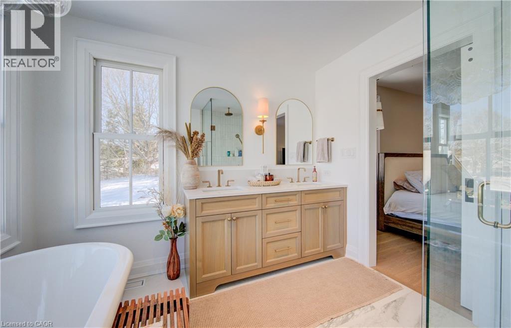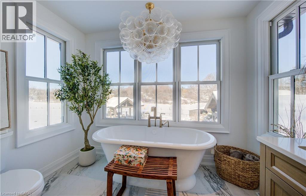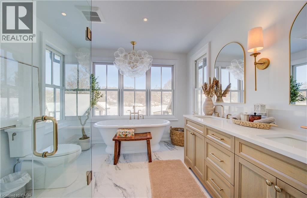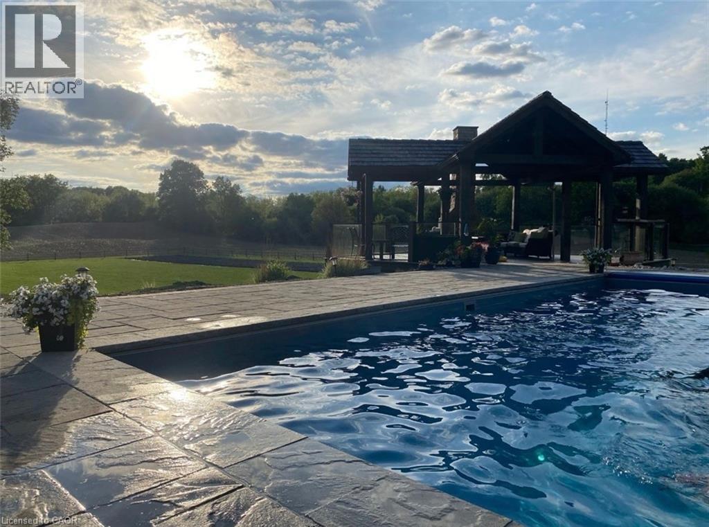 THIS is the one you've been waiting for! Country living, a mere stone's throw from the city! This is 895 Jerseyville Road West, Ancaster -- an exquisitely renovated home on a sprawling, picturesque 3.8 acre lot. Take it all in as you slow roll up the private laneway to a home that's undergone extensive recent improvements and will make you want to stay. The kitchen just might be the chef's kiss of the house with a massive island, offering loads of counter space to enjoy with family and friends alike. Enjoy high-end Thermador appliances, including a built-in double oven and integrated fridge and dishwasher. There's no need to fill pots in the farmhouse sink as the countertop range features a pot filler attached to the tasteful backsplash. Even more kitchen/prep space awaits in the butler's pantry, where you'll find a wet bar, freezer, bar fridge and a built-in microwave. Just off the kitchen are the dining room, sun room and a flex space that can be used as an office or toy/games/workout room. On the opposite end of the kitchen, you'll find the living room with a propane fireplace. The main level is rounded out by the laundry room, a powder room and a large foyer featuring an ample entryway storage system and coat closet. The second level is not to be outdone with 4 bedrooms and amazing sunset views from the balcony. The primary bedroom features a gorgeous 5-piece ensuite and a walk-in closet. A second bedroom features a 3-piece ensuite and walk-in closet, while 2 other bedrooms and a 4-piece bath complete the floor. Outside, extensive work has been done to create a private oasis. You'll enjoy an inground pool, flanked by 2 timber frame gazebos featuring an impressive stone fireplace. This home boasts a metal roof, Maibec wood siding and a geothermal system for heating and cooling. If you're tired of living on top of your neighbours, this is the property for you! Book your private showing today and see for yourself all this home has to offer. (id:4555)