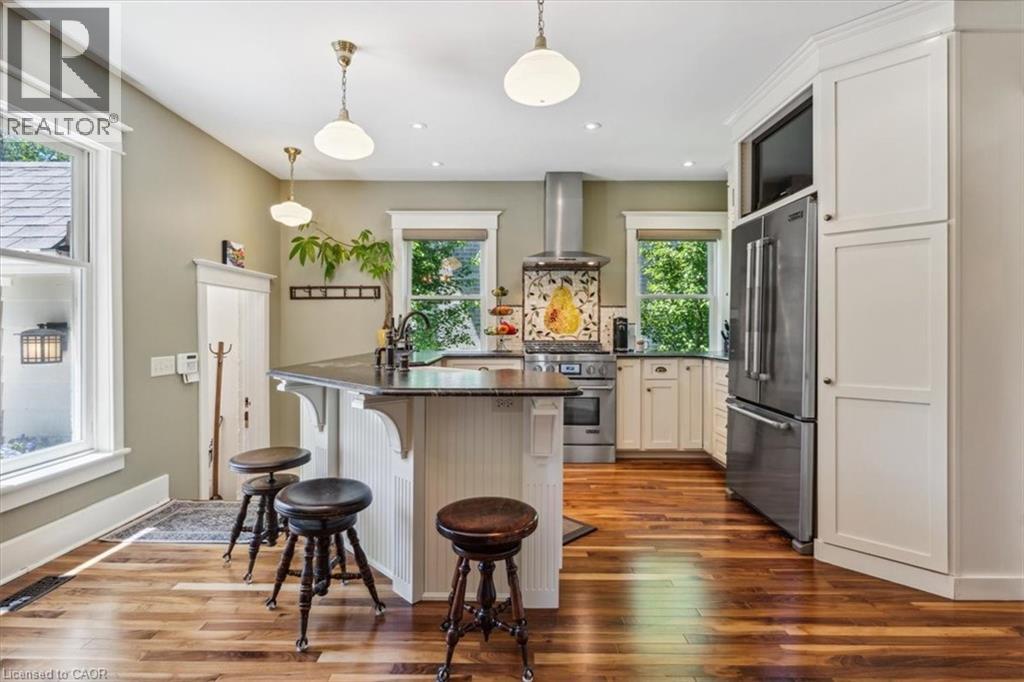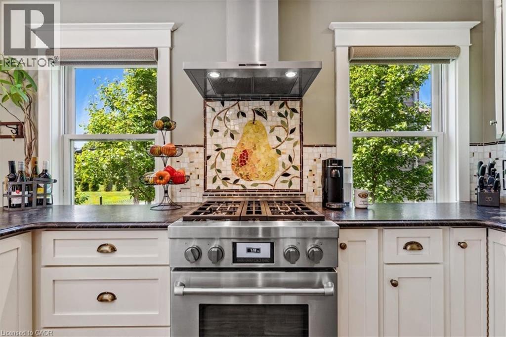 For the first time in over four decades, a cherished century home, opens its heart to a new family. From the moment you approach, a gas lantern guides your way to the iconic front porch. Step inside and feel captivated by the impressive high ceilings that flow into rich hardwood floors. As you wander, discover the warmth of two wood-burning fireplaces, one graced by a stunning antique wood insert. Every corner whispers tales of early 1900s charm, from the carefully chosen antique lighting to the beautiful original windows and wood trim. This isn't just a house; it's a testament to enduring love and meticulous care, where every detail holds a story. The heart of this home beats in its beautifully updated kitchen. Granite countertops frame a unique artisan backsplash, a delightful tribute to the region's agricultural bounty. Just off the kitchen a charming back entrance, an office and laundry room await. The main floor unfolds into an array of versatile spaces: an elegant dining room, an inviting living room, a family room, and a three-piece bathroom. Ascend to the second floor, where three light-filled bedrooms, each with engineered hardwood flooring, offer peaceful retreats. The landing on this level provides additional flexible space, ready to adapt to your desires. Step outside, and prepare to be amazed by the showpiece backyard, recently transformed by the experts at Niagara Outdoors. This sprawling 66x165-ft lot offers ample room for entertaining within its fully fenced yard. The truly impressive two-car garage, adorned with charming stained-glass windows, is more than just a place for vehicles; imagine transforming it into the ultimate backyard bar or simply reveling in its stunning aesthetic. Every detail here has been thoughtfully considered and lovingly executed, and the warmth and care shared within these walls are palpable. Don't miss your chance to own this remarkable piece of Jordan's history! (id:4555)