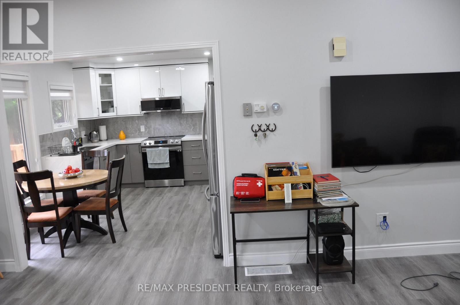 Experience year-round access with this custom-built 2 bedroom (MAIN FLOOR ONLY) waterfront 'Royal Home', recently renovated to perfection. Nestled on a spacious half-acre lot boasting 80 feet of frontage along serene Canal Lake, part of the Trent Severn Waterways. The main level features a spacious living room with a wood stove, cathedral ceiling, and access to a deck overlooking the water. The master bedroom offers a built-in closet, stunning water views, and French doors leading to a second bedroom. The main bathroom includes a separate shower. Finished basement available for at higher rent (IF INCLUDED IN THE LEASE) provides direct walkout access to the water, enhancing the home's waterfront lifestyle. Additional features include an oversized single-car garage with an EV plug and loft storage, a drilled well, propane forced-air heating, and new A/C for comfort throughout the seasons. Located on a quiet cul-de-sac with minimal traffic, the property also boasts over 700 feet of newly built pressure-treated decking, providing ample space for outdoor relaxation and entertaining. A comprehensive water filtration system with UV protection ensures water quality. New appliances & window coverings at the time of renovations. This meticulously crafted waterfront retreat offers both tranquility and modern convenience, ideal for those seeking a premium living experience on the water. Tenant to pay 65% of all utilities for upper portion rental and 100% if whole house rented. (id:4555)