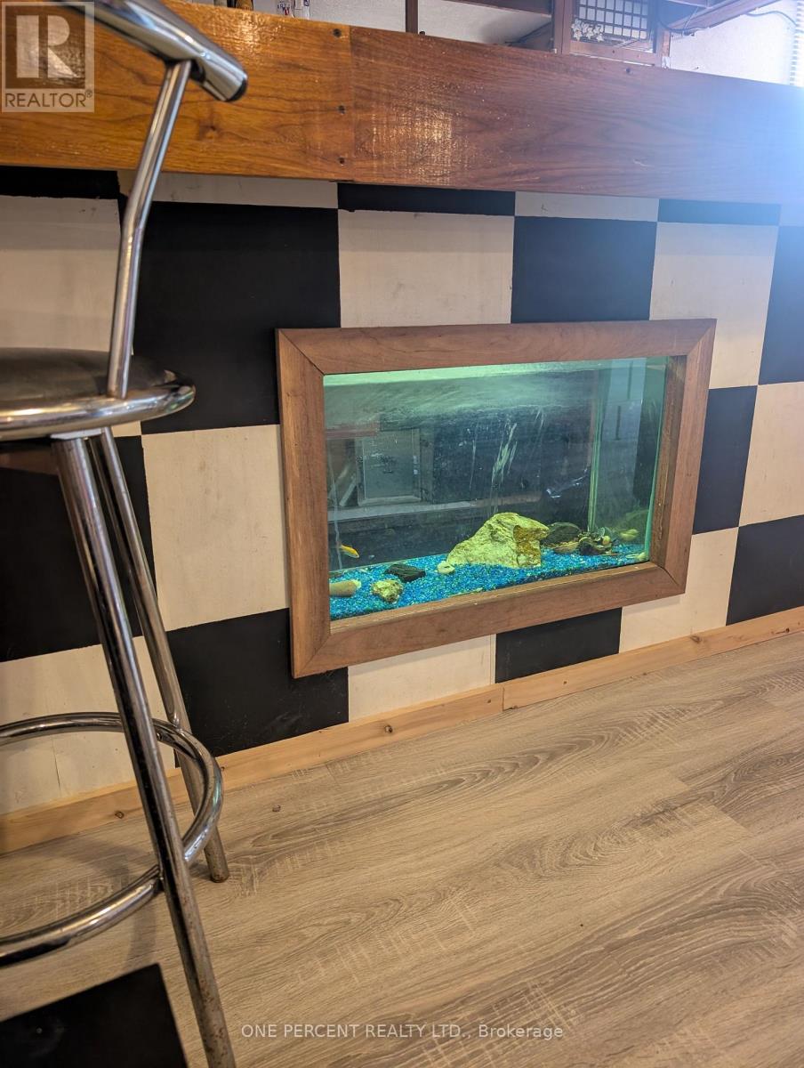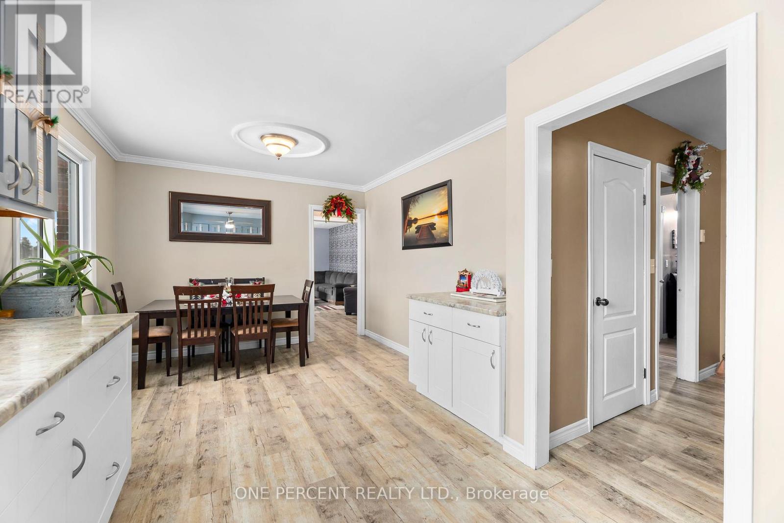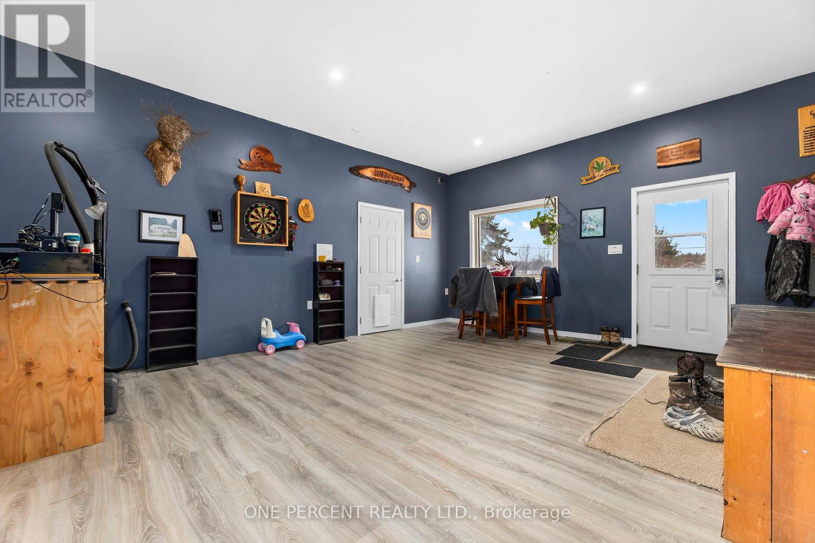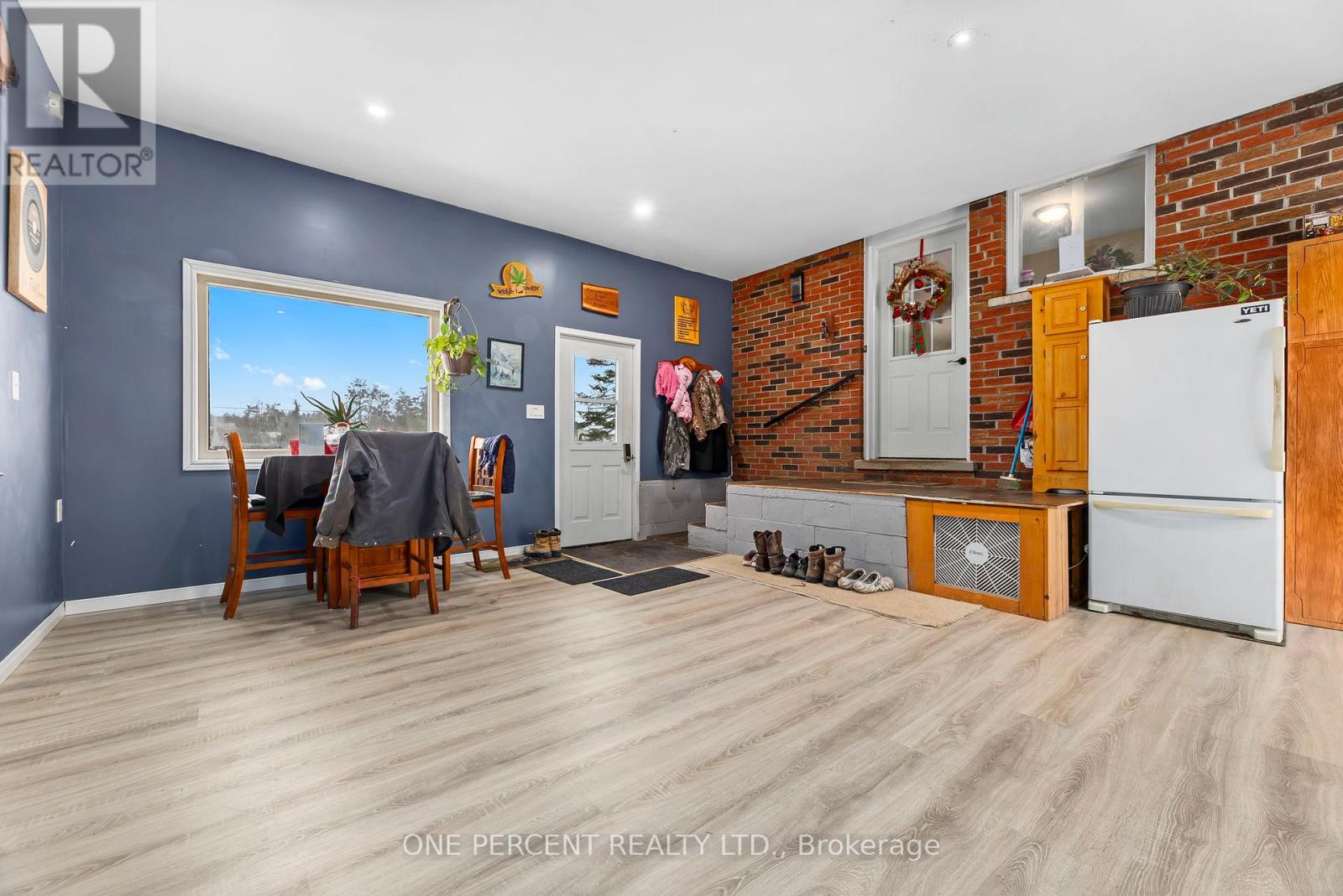 Set on just over 2 acres and minutes from Balsam Lake, this 3-bedroom, 1-bath bungalow offers space, thoughtful updates, and authentic country charm. The modern eat-in kitchen features crown moldings and stylish finishes, while laminate flooring throughout provides warmth and low-maintenance living. The inviting living room suits everyday life, and the finished lower level delivers a spacious rec room that functions as a true man cave, complete with a fish-tank bar setup and a fully stocked wood stove for winter, creating a warm and comfortable space for relaxing or entertaining year-round. Practical features include a dedicated laundry area, utility room, attached single-car garage, and two sheds, one powered, ideal for storage or workshop use. Recent updates include windows, doors, and a 200-amp breaker panel. Enjoy privacy on a tree-lined lot just minutes from a boat launch, making this property well suited for outdoor enthusiasts, gardeners, or those looking to grow their own crops. With highway exposure and potential for a secondary entrance from the adjoining roadway, subject to COKL approval, this property offers both convenience and opportunity. Country living with room to breathe-come make it yours. (id:4555)