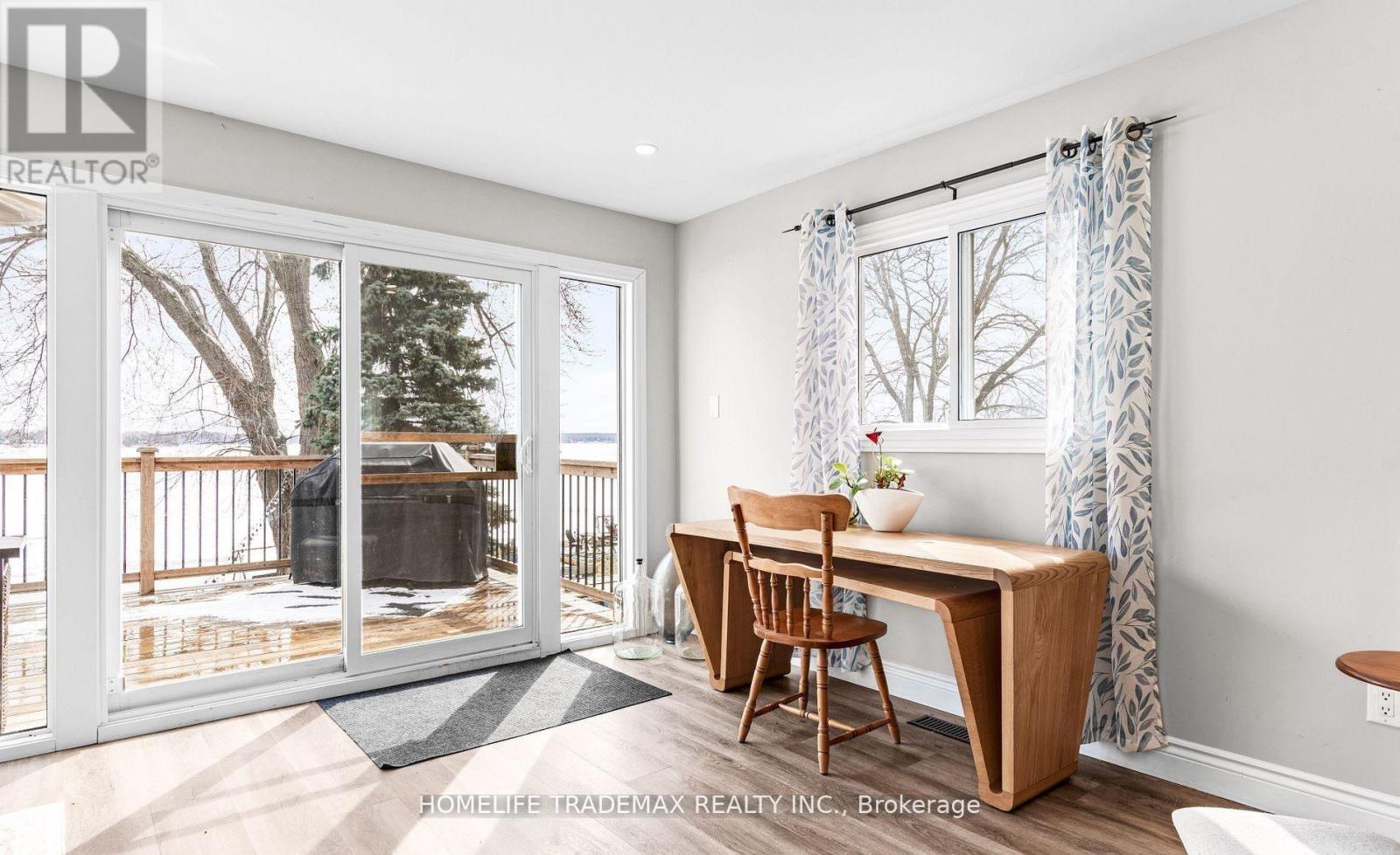 Direct Waterfront - Priced to Sell! Beautifully renovated 3-bedroom, 2-bath home on Lake Scugog, just 10 minutes north of Port Perry. Enjoy unobstructed eastern views, stunning sunrises, and natural light throughout with all levels above grade. Features include a bright open-concept main floor, gourmet kitchen with large center island, luxury vinyl flooring, pot lights, and a spacious primary suite. Upgrades include new deck, windows, and doors. The finished lower level offers a walkout to a covered outdoor area, plus laundry, storage, a detached garage, and a workshop with hydro. Close to schools, parks, shopping, dining, and commuter routes. Experience modern comfort and true lakefront living in one perfect package. (id:4555)