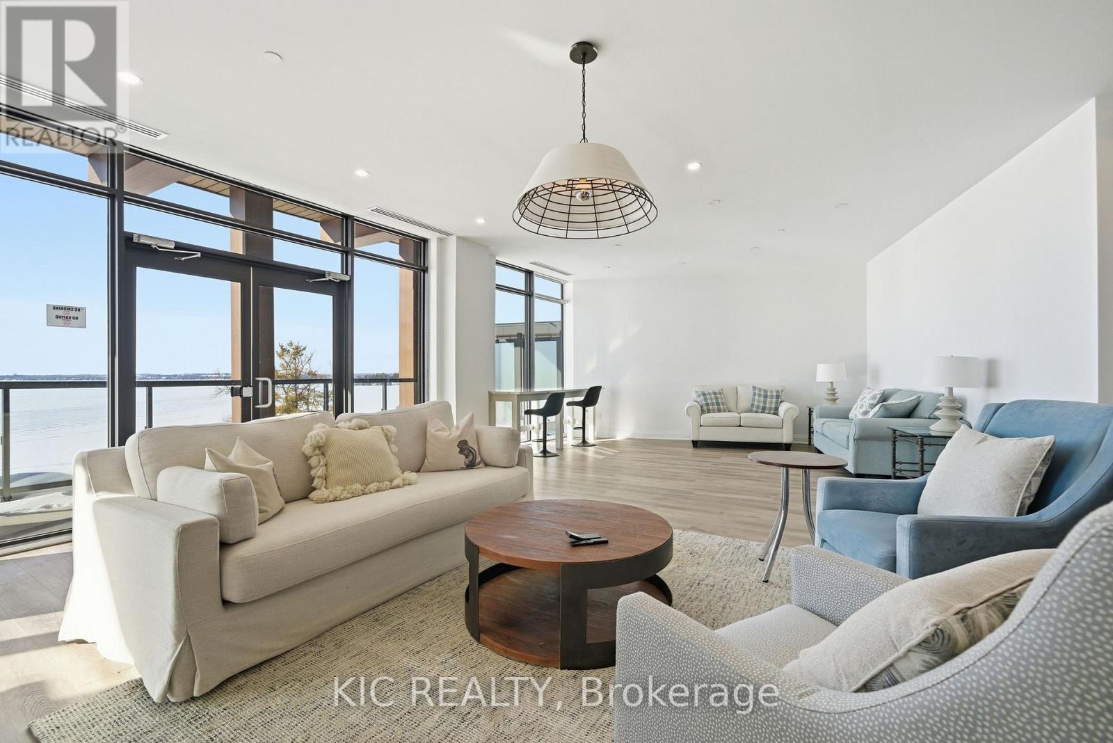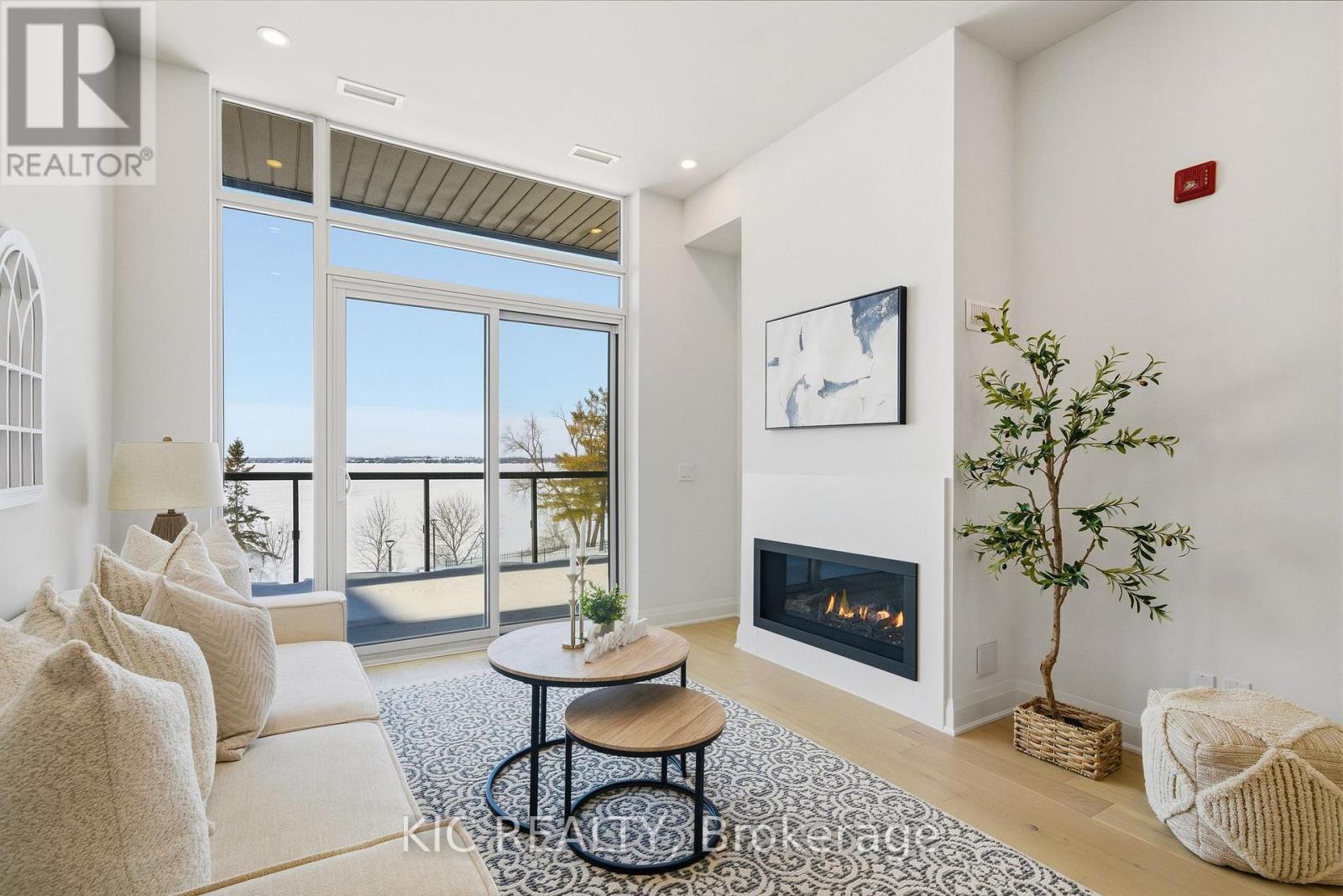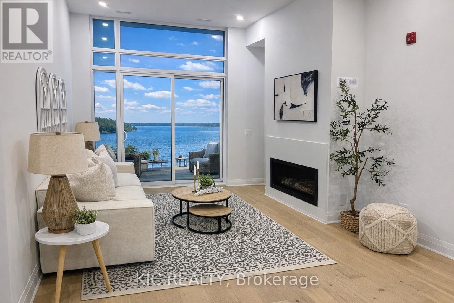 Stunning maintenance-free, resort lifestyle living at The Moorings on Cameron Lake. Beautifully appointed suite with 2 Beds, 2 Baths and over 9 ft. ceilings. Floor-to-ceiling windows create light-filled spaces with unobstructed west-facing lake views and glorious sunsets. A luxurious Kitchen with Quartz Counters/Backsplash, under-cabinet lighting, stainless steel KitchenAid appliances, Gas Cooktop and Wall Oven is a chef's dream. Open concept Dining and Living Room with upgraded Gas Fireplace, opens to an incredible 32 ft. wide water-view Balcony, complete with gas BBQ hook up and plenty of space for outdoor seating and dining. Side-by-side Whirlpool washer and dryer, TWO Underground Parking Spots with adjacent sizeable Storage Locker. The spacious Primary Bedroom, with direct lake view, features Walk-in Closet, Double Closet, luxurious 4 piece Ensuite, double vanity and walk-in shower. Water view Guest Bedroom with walk-in closet. Love having guests? There are two convenient second floor Guest Suites and the building amenities are designed for your active lifestyle - Second floor lake view Fitness Centre features cardio equipment, weights, yoga room, cedar sauna and change rooms. Third floor Owners Lounge features sweeping lake views, gas fireplace, gorgeous lounge, ample dining seating, theatre room and full kitchen for hosting your private dinners and gatherings. Convenient dog wash station. Resort-style outdoor heated Pool and Spa, Tennis/Pickle Ball court, beautiful lake facing courtyard overlooks coveted waterfront amenities that will provide a Swim Platform and Private Marina Docking (10 x 20 ft slips additional fee). Access the Trent Severn Waterway for endless boating, fishing and the Victoria Trail for fun outdoor activities. Exceptional walkability to parks, restaurants, shops and farmers market in charming Fenelon Falls only 90 Minutes from the GTA. Come experience this maintenance-free lakeside lifestyle of convenience and luxury for yourself! (id:4555)