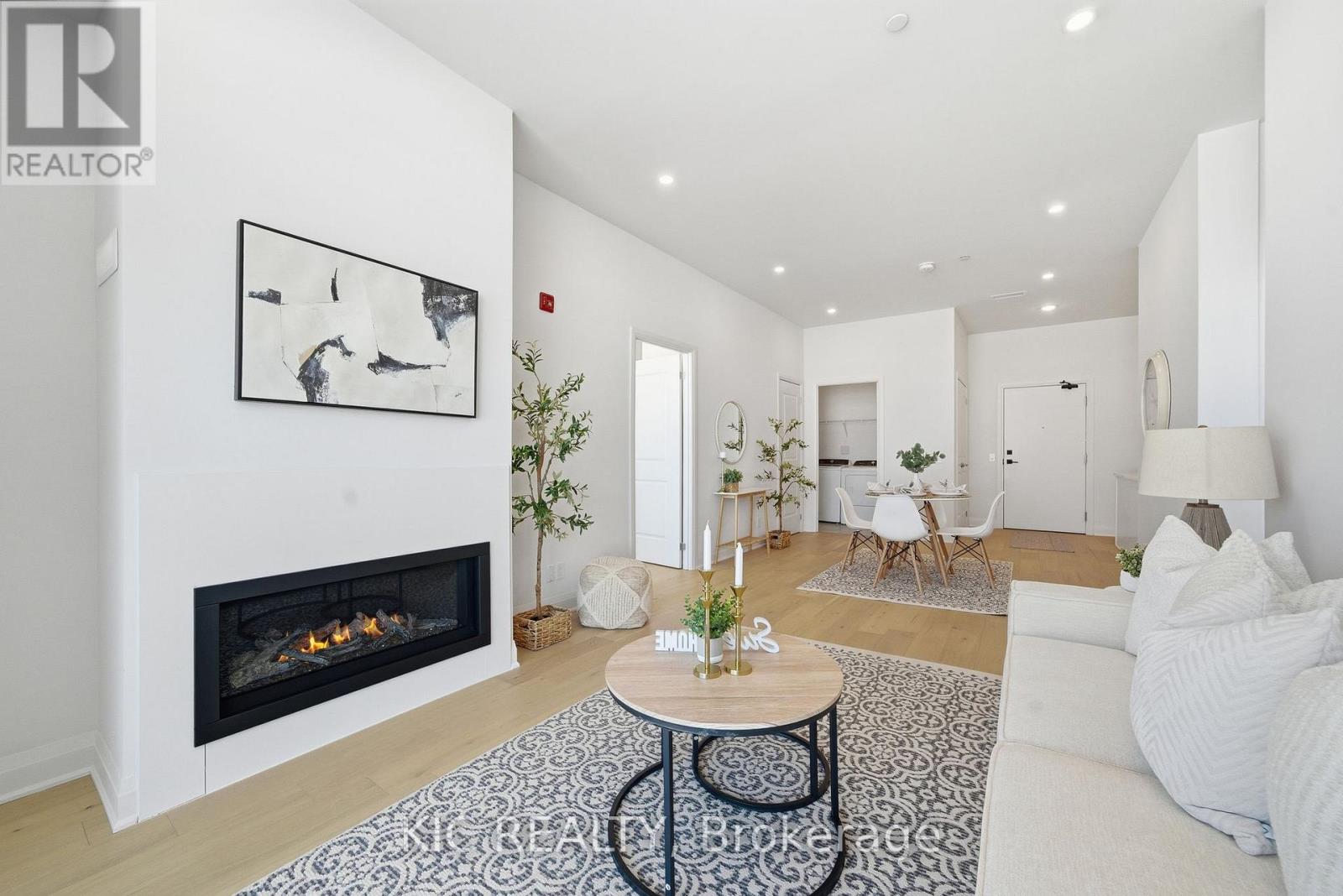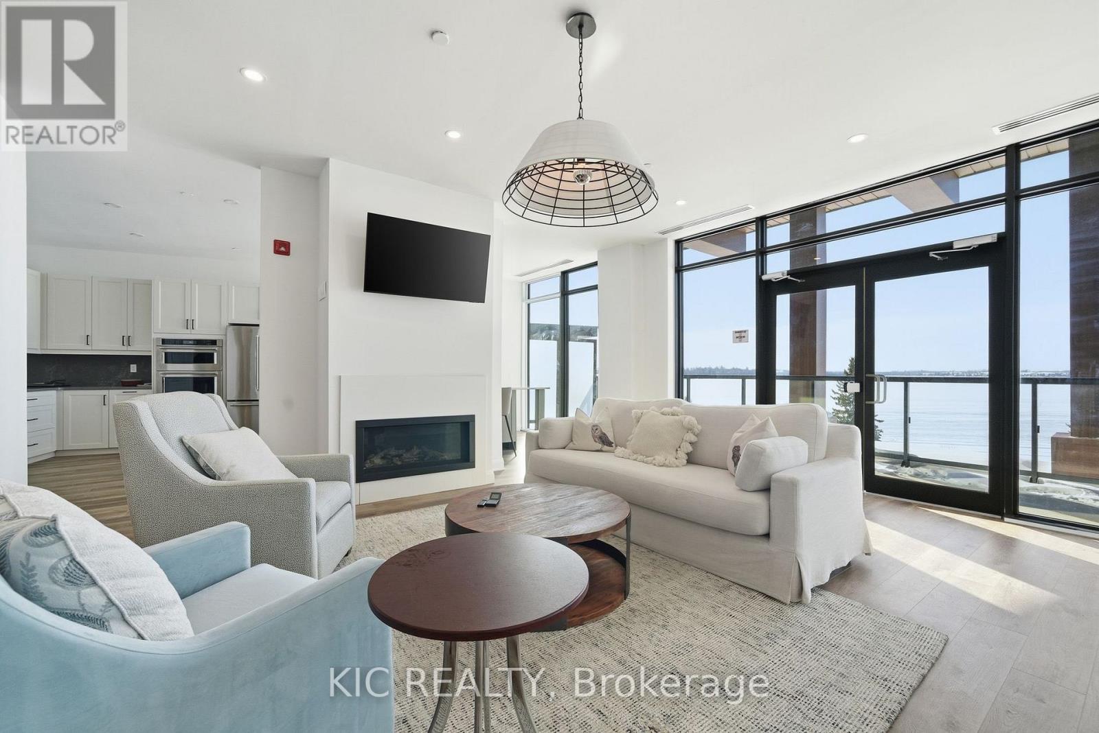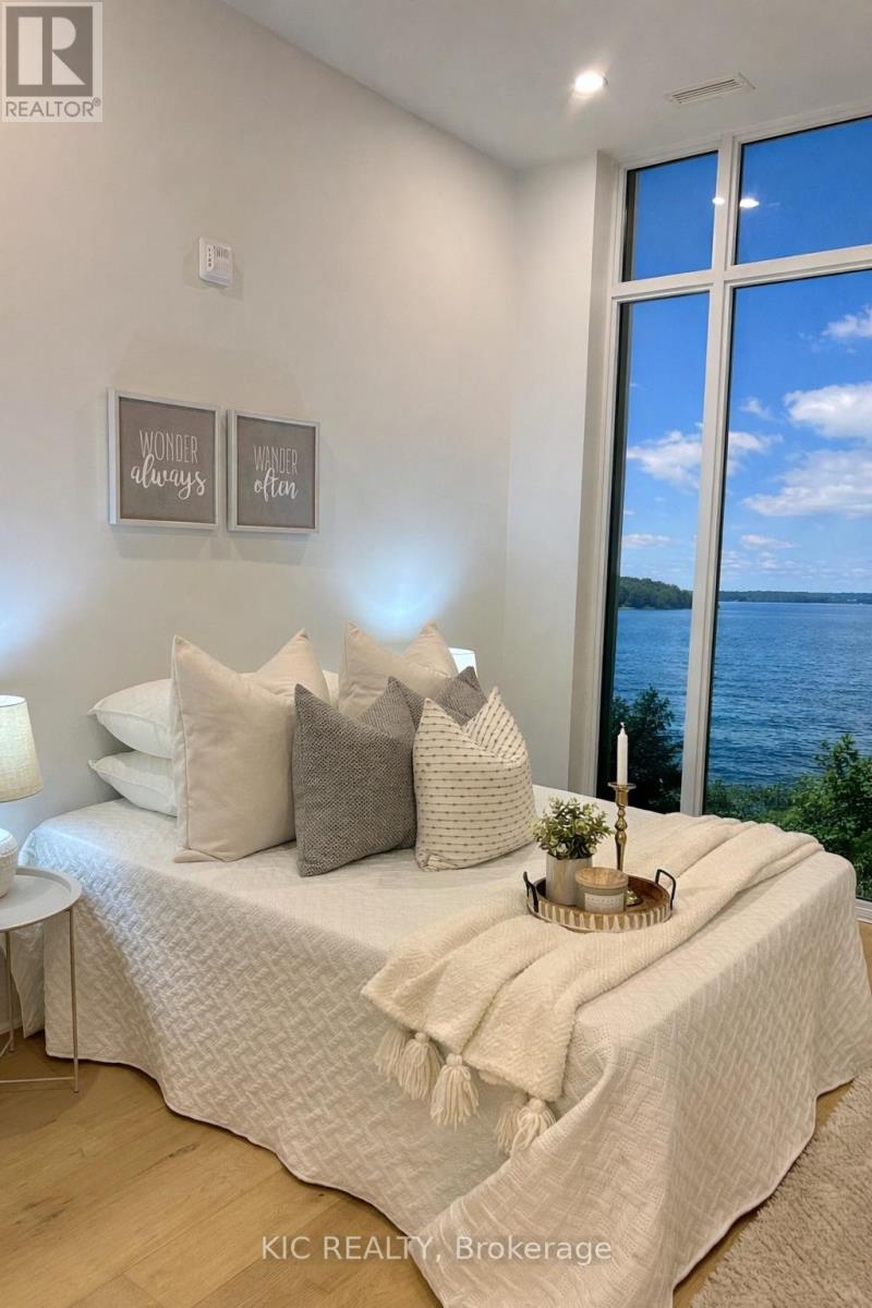 Stunning maintenance-free, resort lifestyle living at The Moorings on Cameron Lake. Beautifully appointed suite with 2 Beds, 2 Baths and over 9 ft. ceilings. Floor-to-ceiling windows create light-filled spaces with unobstructed west-facing lake views and glorious sunsets. A luxurious Kitchen with Quartz Counters/Backsplash, under-cabinet lighting, stainless steel KitchenAid appliances, Gas Cooktop and Wall Oven is a chef's dream. Open concept Dining and Living Room with upgraded Gas Fireplace, opens to an incredible 32 ft. wide water-view Balcony, complete with gas BBQ hook up and plenty of space for outdoor seating and dining. Side-by-side Whirlpool washer and dryer, TWO Underground Parking Spots with adjacent sizeable Storage Locker. The spacious Primary Bedroom, with direct lake view, features Walk-in Closet, Double Closet, luxurious 4 piece Ensuite, double vanity and walk-in shower. Water view Guest Bedroom with walk-in closet. Love having guests? There are two convenient second floor Guest Suites and the building amenities are designed for your active lifestyle - Second floor lake view Fitness Centre features cardio equipment, weights, yoga room, cedar sauna and change rooms. Third floor Owners Lounge features sweeping lake views, gas fireplace, gorgeous lounge, ample dining seating, theatre room and full kitchen for hosting your private dinners and gatherings. Convenient dog wash station. Resort-style outdoor heated Pool and Spa, Tennis/Pickle Ball court, beautiful lake facing courtyard overlooks coveted waterfront amenities that will provide a Swim Platform and Private Marina Docking (10 x 20 ft slips additional fee). Access the Trent Severn Waterway for endless boating, fishing and the Victoria Trail for fun outdoor activities. Exceptional walkability to parks, restaurants, shops and farmers market in charming Fenelon Falls only 90 Minutes from the GTA. Come experience this maintenance-free lakeside lifestyle of convenience and luxury for yourself! (id:4555)