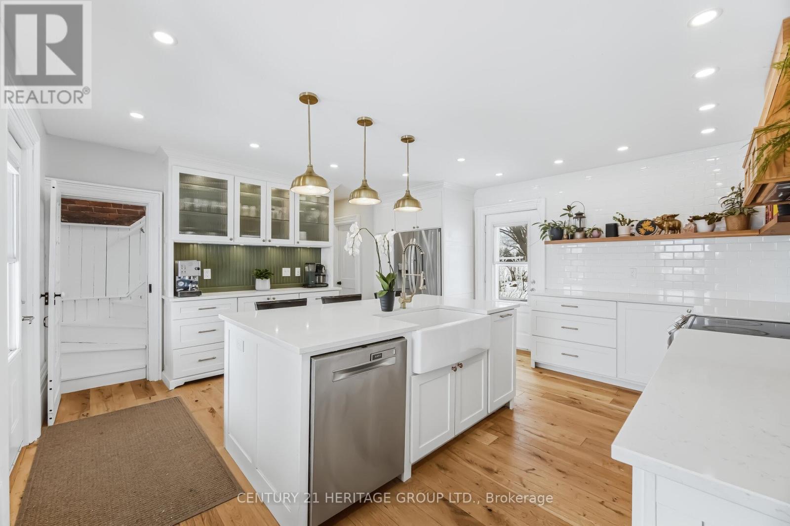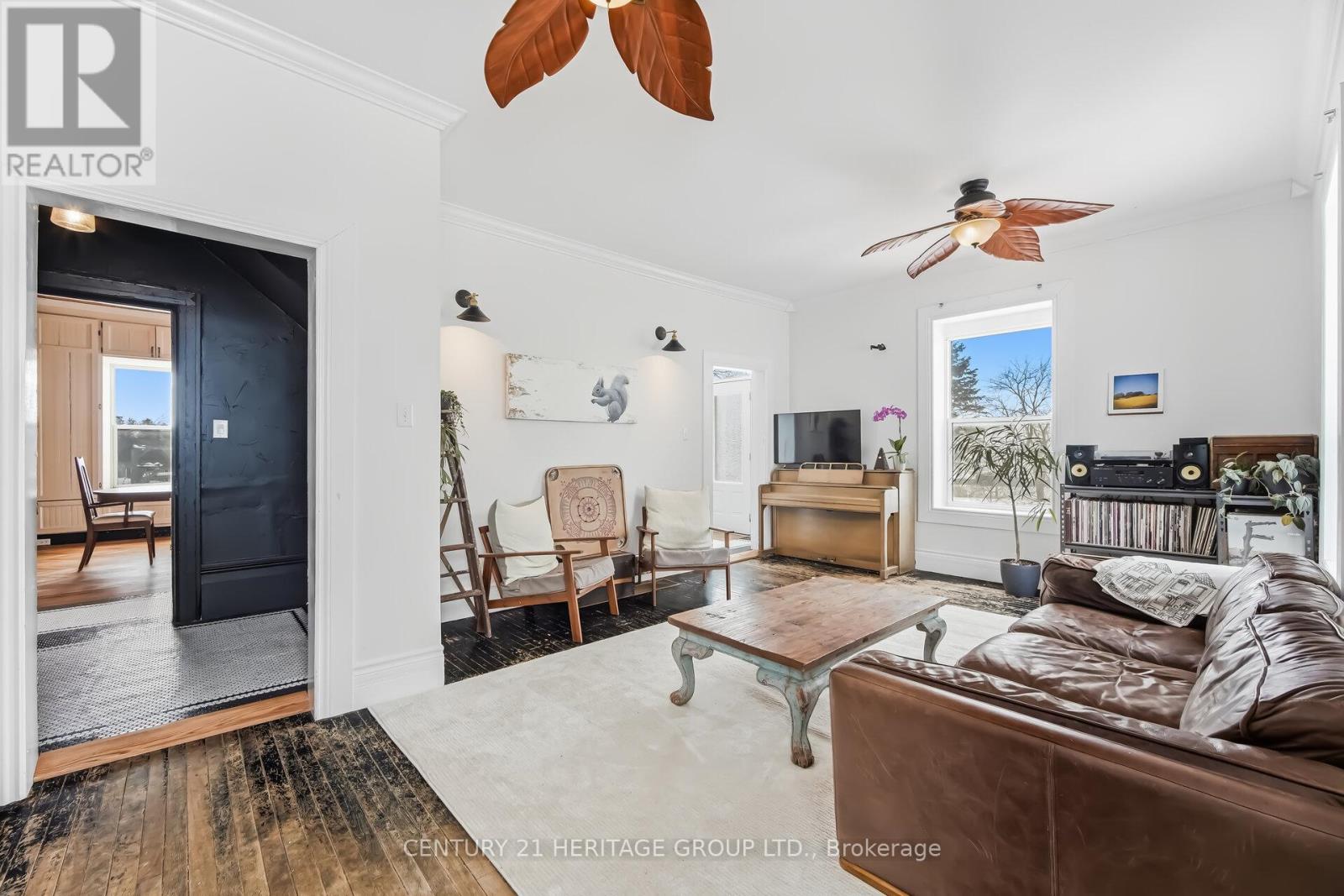 MOVE-IN READY!! Immaculate 1860s century home situated on a 3/4-acre lot within the boundaries of Oakwood. Thoughtfully renovated with a blend of contemporary finishes and meticulously restored original components to preserve its authentic character and charm! Premium chef's kitchen featuring Baltic Birch ply & solid hardwood cabinetry (no MDF or chipboard), S/S appliances, pot lights & quartz countertops. Classic Victorian detail such as solid White Oak flooring with custom Walnut inlays flow throughout the dining room & private office, complemented by porcelain mosaic tile in main hall & oversized bathroom (originally a 4th bedroom), recreated original trim, soaring ceilings, & deep-set windows that flood the home with natural light! 2nd floor features 3 bedrooms with integrated transom windows to maximize light flow, while the original wide-plank Pine flooring remains unspoiled & ready for your custom finish. Upper level landing opens into a versatile studio/hobby room with skylight & a convenient "shortcut" stairway back to the kitchen! 2-car garage currently being used as a workshop, upgraded with OSB paneling, new insulation, steel roof, solid Douglas Fir doors/windows, & a mini-split (2022). Extensive structural & mechanical updates such as failing lath & plaster replaced with drywall, new furnace (2025), propane heat conversion, A/C (2020), roof (2017), HWT(O), municipal water supply & 200-amp service. Fully fenced yard with dozens of fruit trees (Apple, Pear, Plum, Cherry) & berry bushes (Raspberry, Sea Buckthorn, Goji, Aronia). Complete with perennial & vegetable beds, spring bulbs planted throughout, fire pit, chicken coop & run, high tunnel + seed starting green houses, Lifetime 10' x 8' shed (2025) & 4-bay wood storage. Ideally located 10 min to Lindsay, 20 min to Port Perry, & walking distance to Oliver's Nest Golf Course & the amenities of the quaint village of Oakwood! (id:4555)
