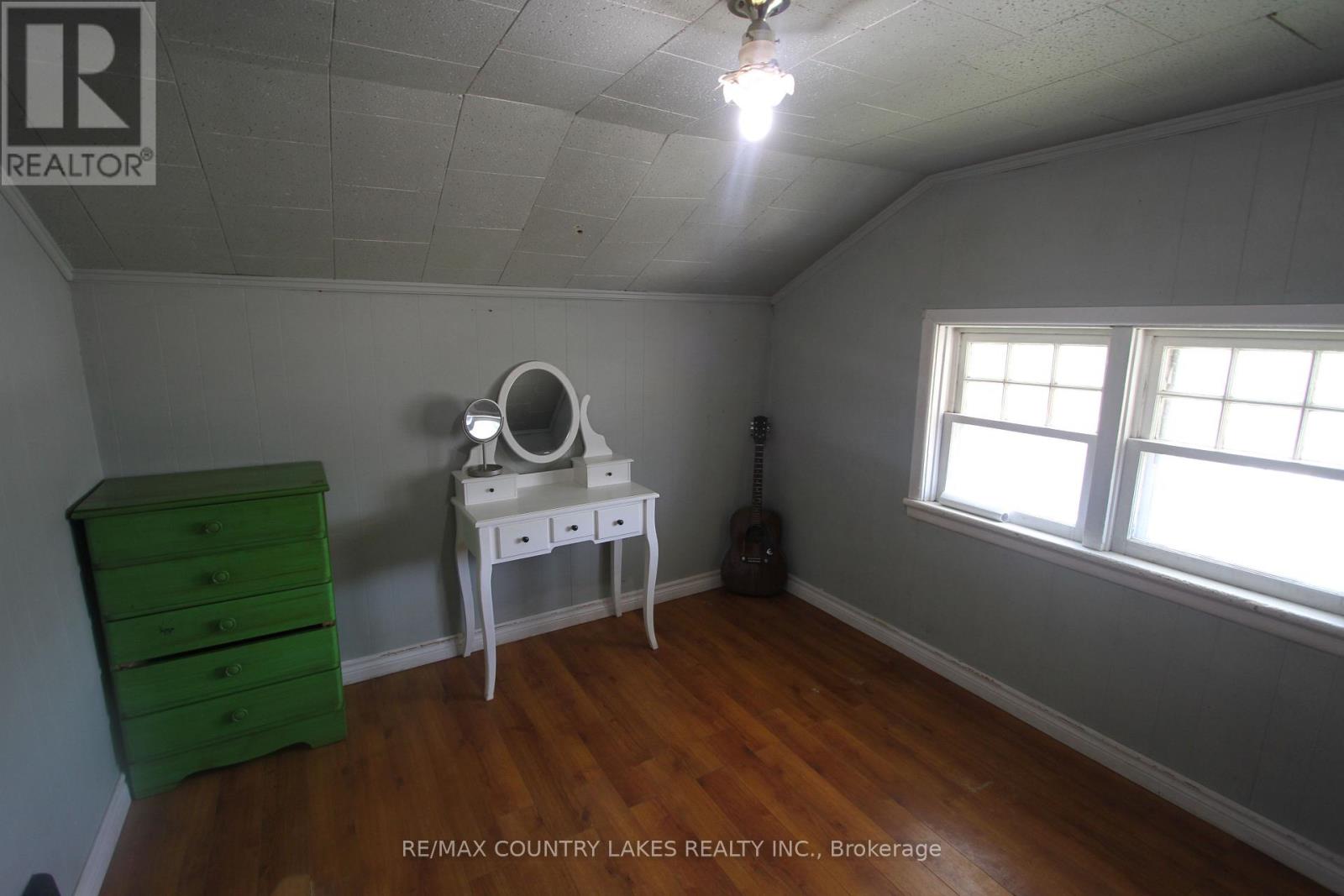 4-bedroom family home nestled on a quiet dead-end street, offering peaceful living with convenient access to nearby amenities and waterfront recreation. This home features 2 bedrooms on the main floor and 2 additional bedrooms upstairs, making it ideal for families of all sizes. The main level offers a spacious formal dining room, perfect for hosting, and a bright living room highlighted by a large front window and a airtight wood stove. You'll also find the convenience of main floor laundry and a 3-piece bathroom. Upstairs includes another 3-piece bath complete with a tub. Enjoy your morning coffee on the covered front porch, or unwind in the large enclosed rear porch with walkout to a deck overlooking the water. Recent updates include a new propane furnace and central air conditioning, providing year-round comfort. Outside, the property features a detached single-car garage and a small barn with 4 stalls, offering great potential for hobby farming or storage. The home is serviced by a drilled well and septic system. Ideally located just 5 minutes from Kirkfield and approximately 90 minutes from the GTA, this property also offers close proximity to Mitchell Lake and the Trent-Severn Waterway, perfect for boating and outdoor enthusiasts. (id:4555)