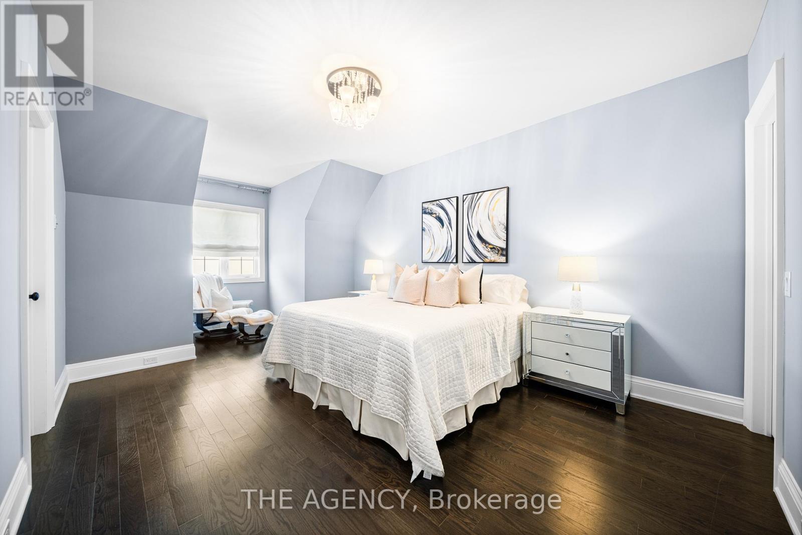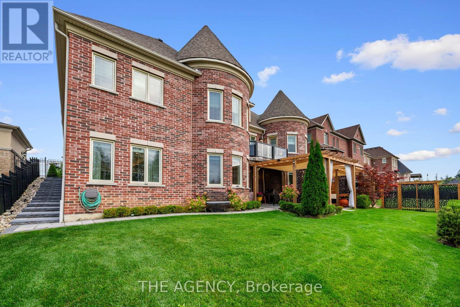 Located in the heart of King City, this beautiful bungaloft offers more than 6,900 square feet of finished living space in a community prized for its parks, trails, excellent schools, and quick access to the King City GO station. The home is introduced by a stone-and-stucco façade, a three-car garage, and landscaped grounds with a terrace and rear patio overlooking the ravine. Inside, soaring ceilings, hardwood floors, and detailed millwork set an elegant tone. The front foyer rises two storeys, leading to a series of principal rooms defined by coffered ceilings: a paneled office, a formal living and dining room, and a family room anchored by a gas fireplace. At the centre of the main level, the kitchen is fitted with dark-stained cabinetry, quartz counters, and a full suite of Wolf and Sub-Zero appliances. The adjoining breakfast area opens directly to the terrace. A main-floor primary suite with a spa-like ensuite and walk-in closet provides a private retreat, while a second bedroom with its own ensuite adds flexibility for family or guests. An elevator connects all three levels. The upper floor includes two additional bedrooms, a full bath, and a den well suited for children, extended family, or a separate study. The fully finished lower level is above grade, with oversized windows and French doors leading to the rear patio. This home includes total of 4 + 2 bed and 4 + 2 bath. Designed as a complete secondary living area, it includes a full kitchen with quartz counters and Samsung appliances, a dining area, a large recreation room with fireplaces, two bedrooms, and additional baths. This thoughtful layout makes the property especially accommodating for multi-generational living. Every detail of this residence reflects quality and enduring design, offering a rare opportunity in one of King City's most desirable settings. (id:4555)